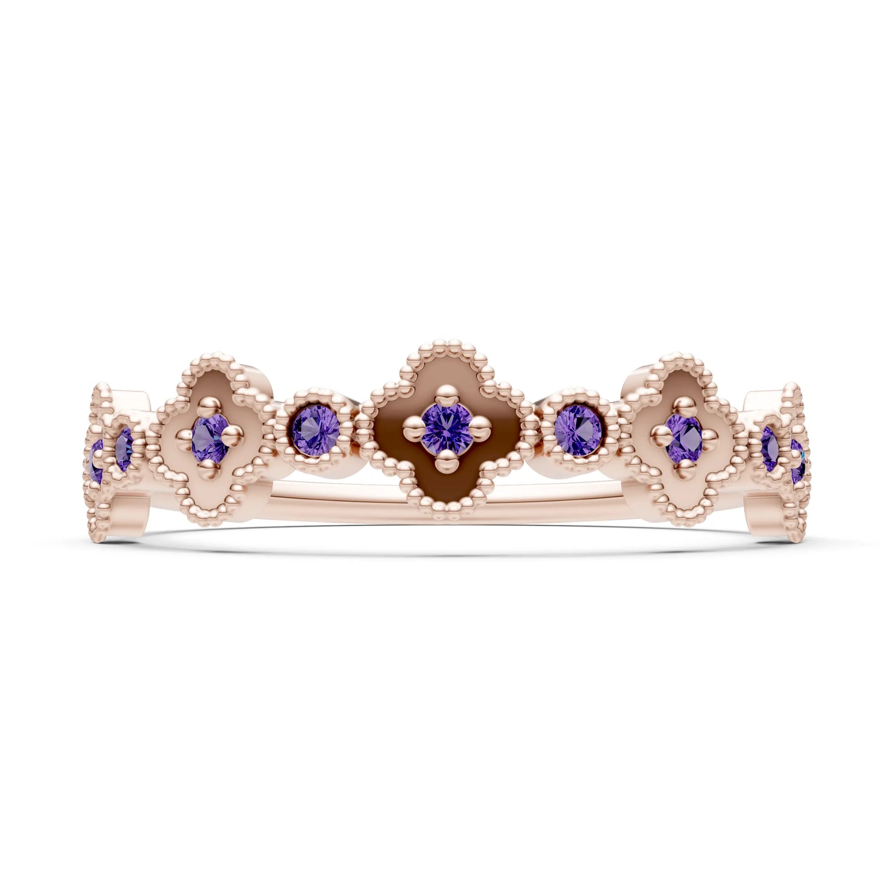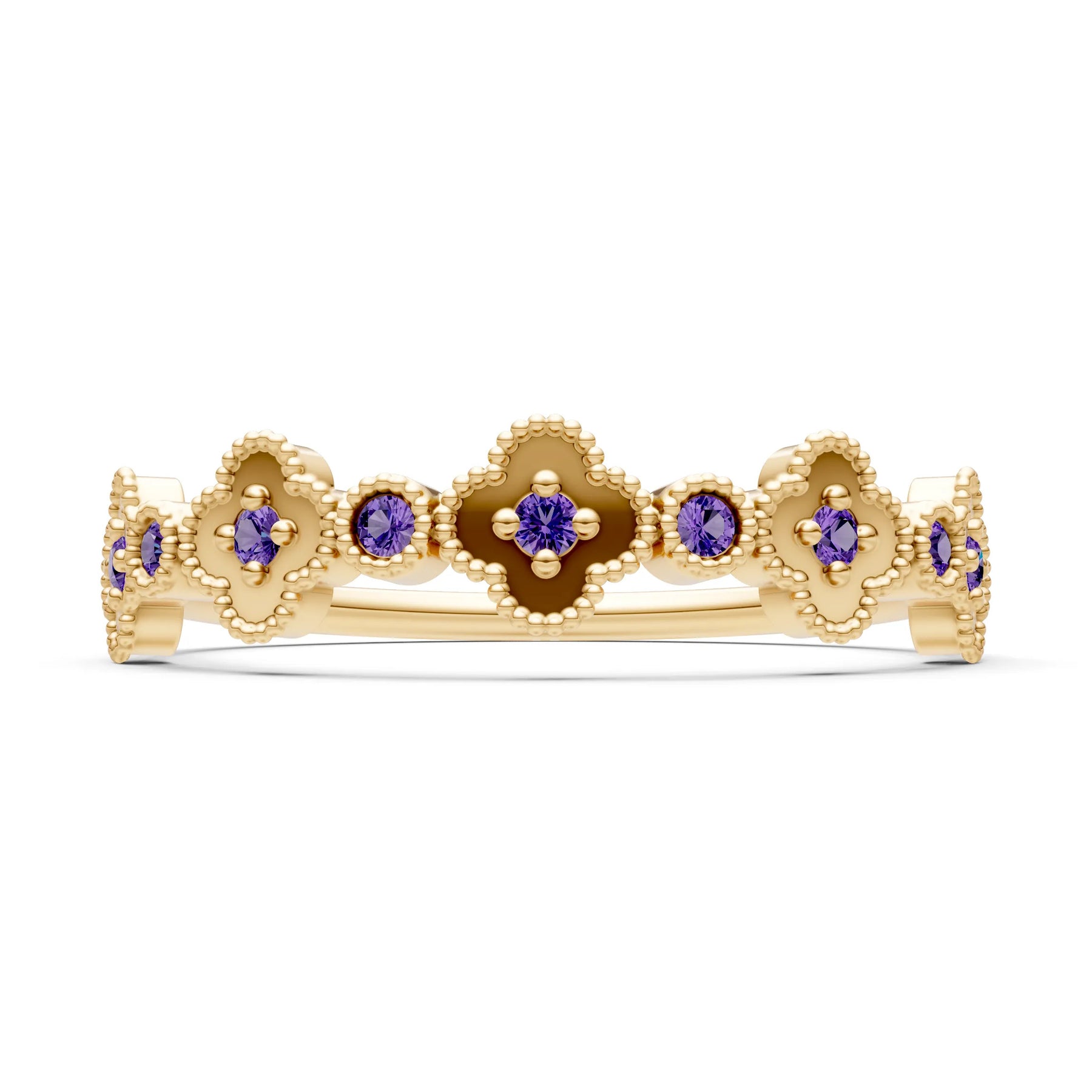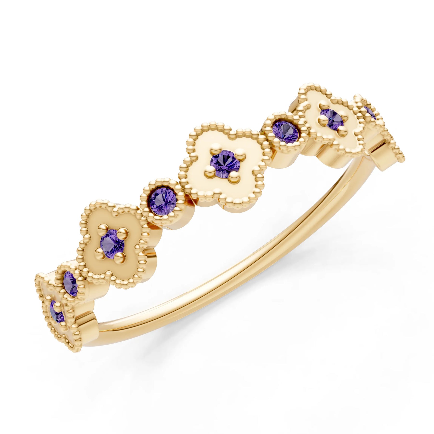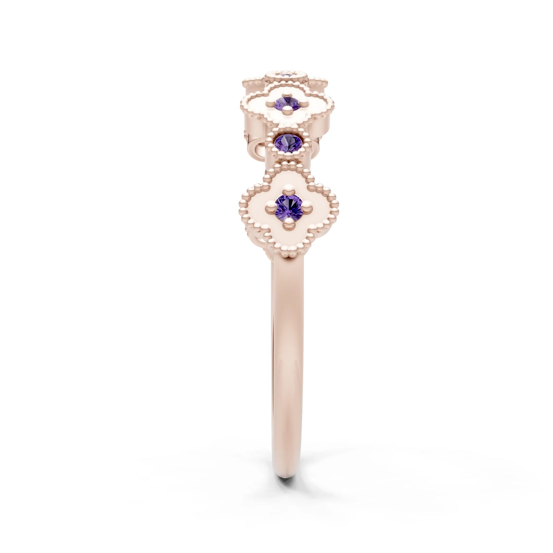 Amethyst Dainty Faux Clover Round Cut Ring