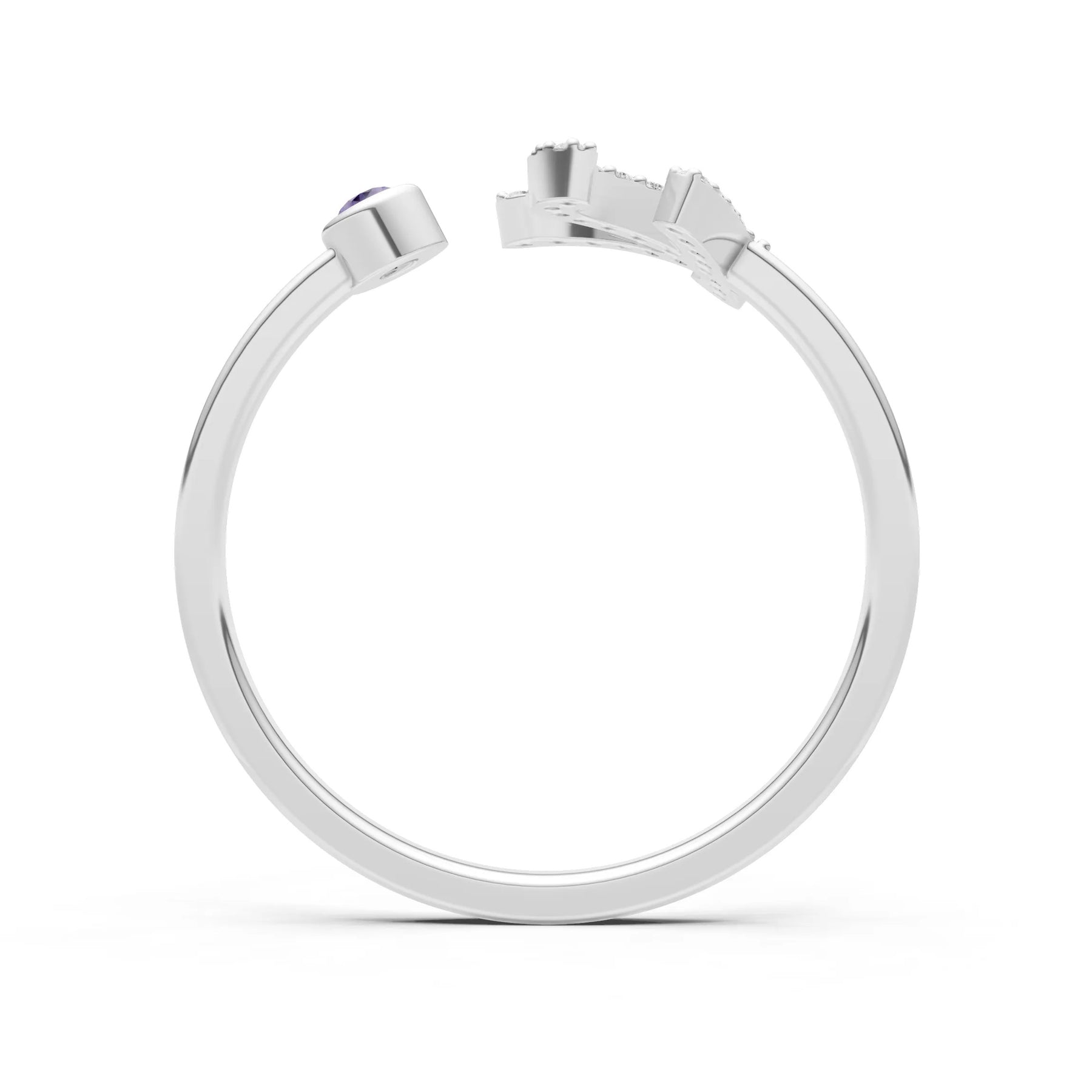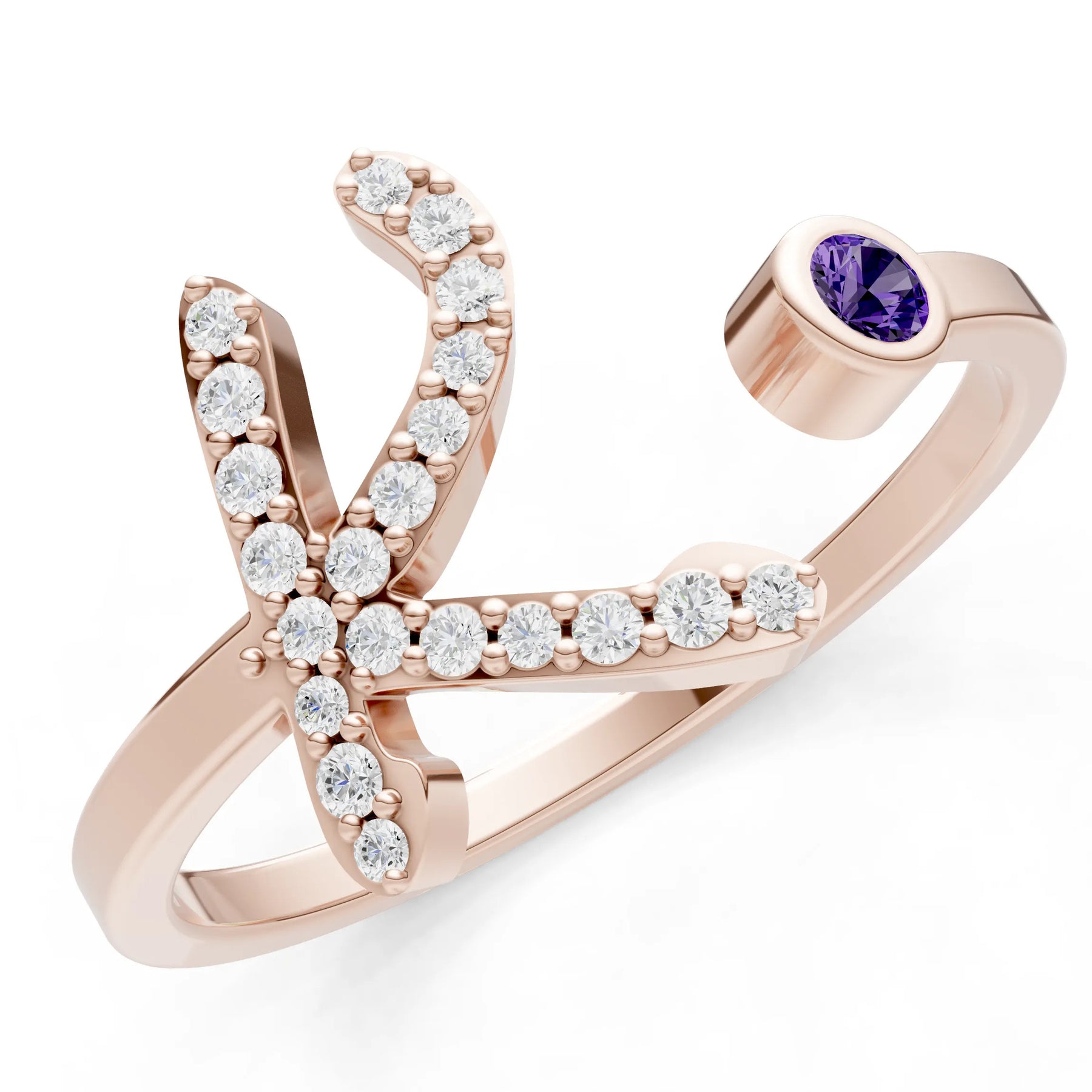 Amethyst Dainty Initial Letter Birthstone Open Ring – K