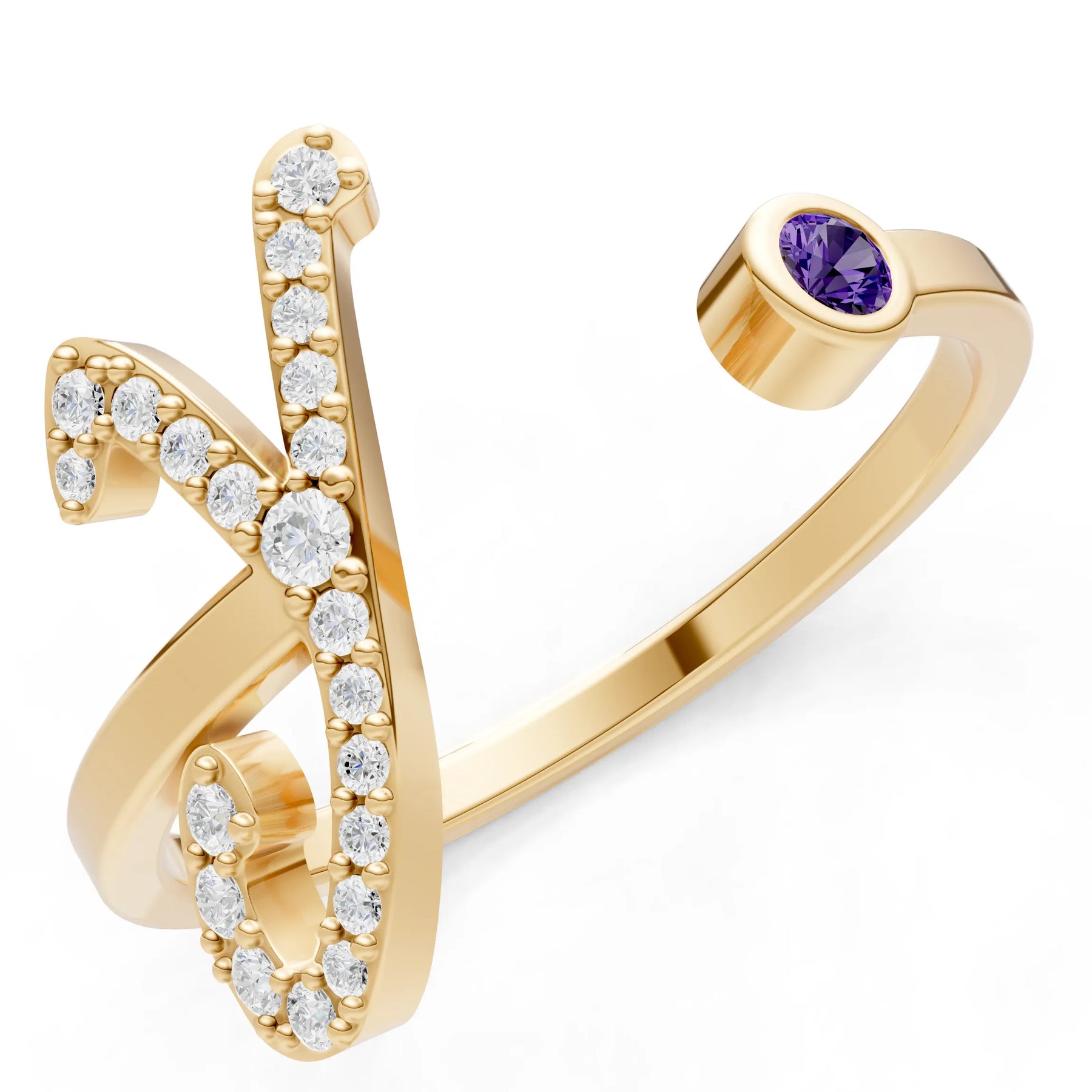 Amethyst Dainty Initial Letter Birthstone Open Ring – Y