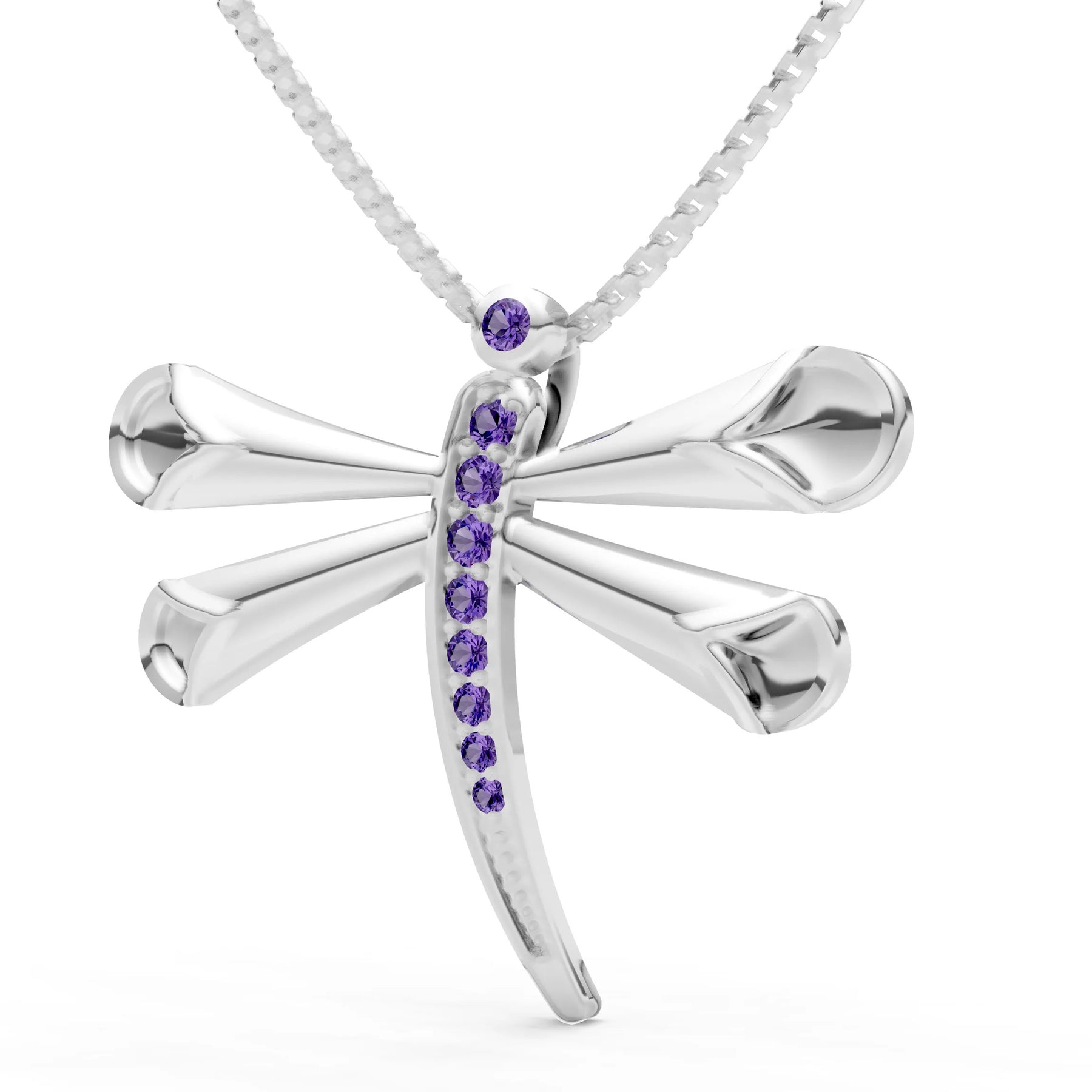 Introducing the exquisite Dragonfly Pendant, featuring a vibrant amethyst center stone set in your choice of gold—available in 10k, 14k, or 18k White, Yellow, or Rose Gold. With Peora’s renowned craftsmanship, this piece showcases a stunning round cut, enhancing its purple hue with radiant clarity. Peora’s commitment to responsible sourcing shines through in each meticulously designed piece, blending artistry with meaning. The Dragonfly Pendant is not just a piece of jewelry; it's a celebration of beauty, promising lasting elegance and emotional resonance. Each pendant comes beautifully presented in a luxurious gift box, making it ideal for gifting or safekeeping.