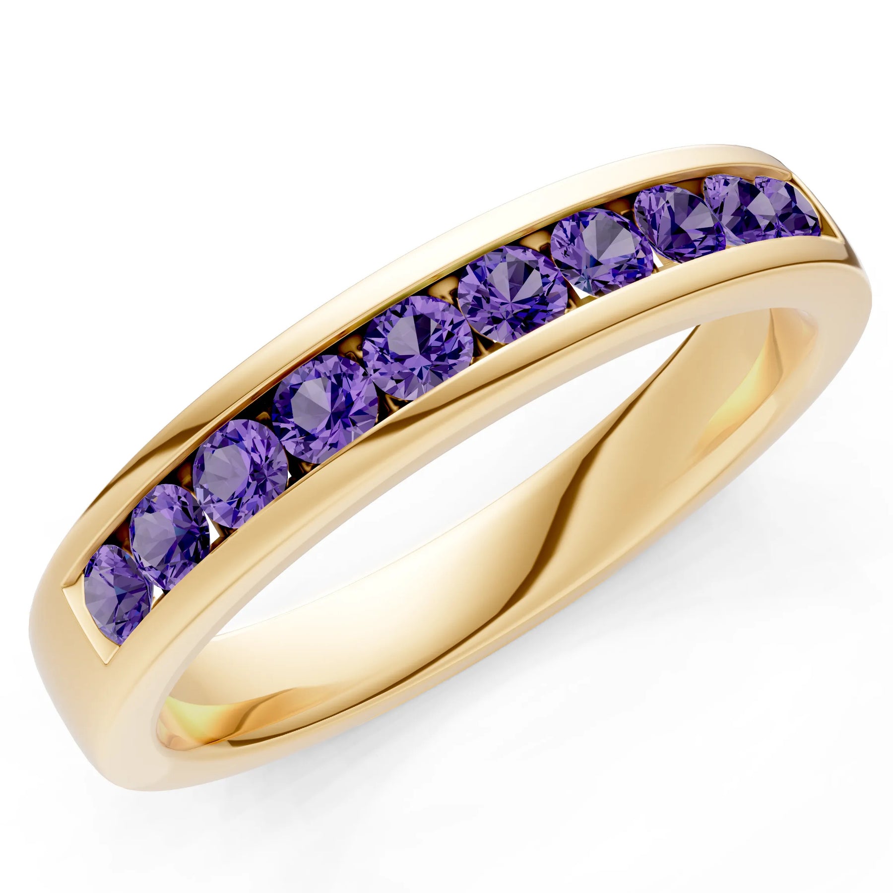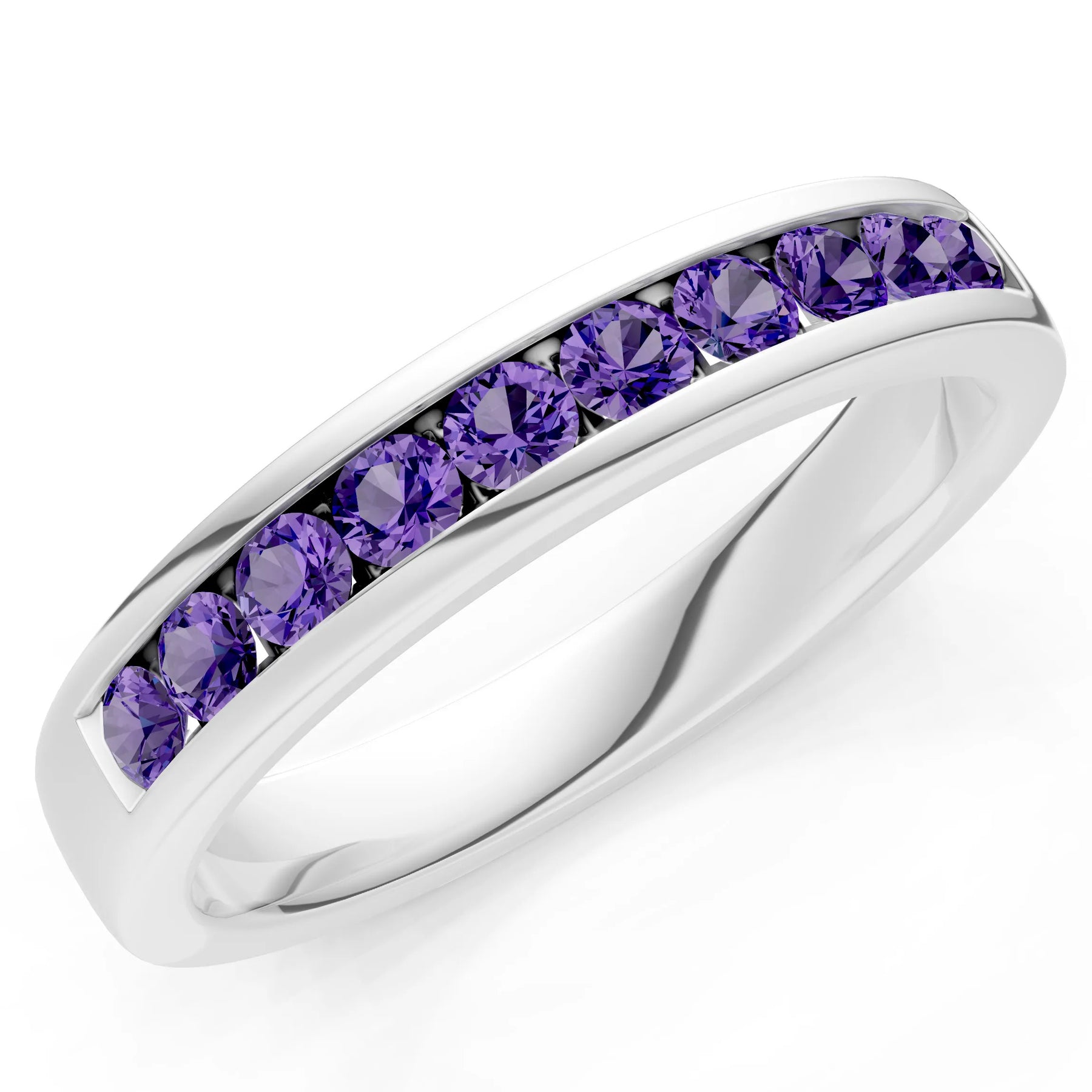 Amethyst Minimalist Channel Set Round Cut Half Eternity