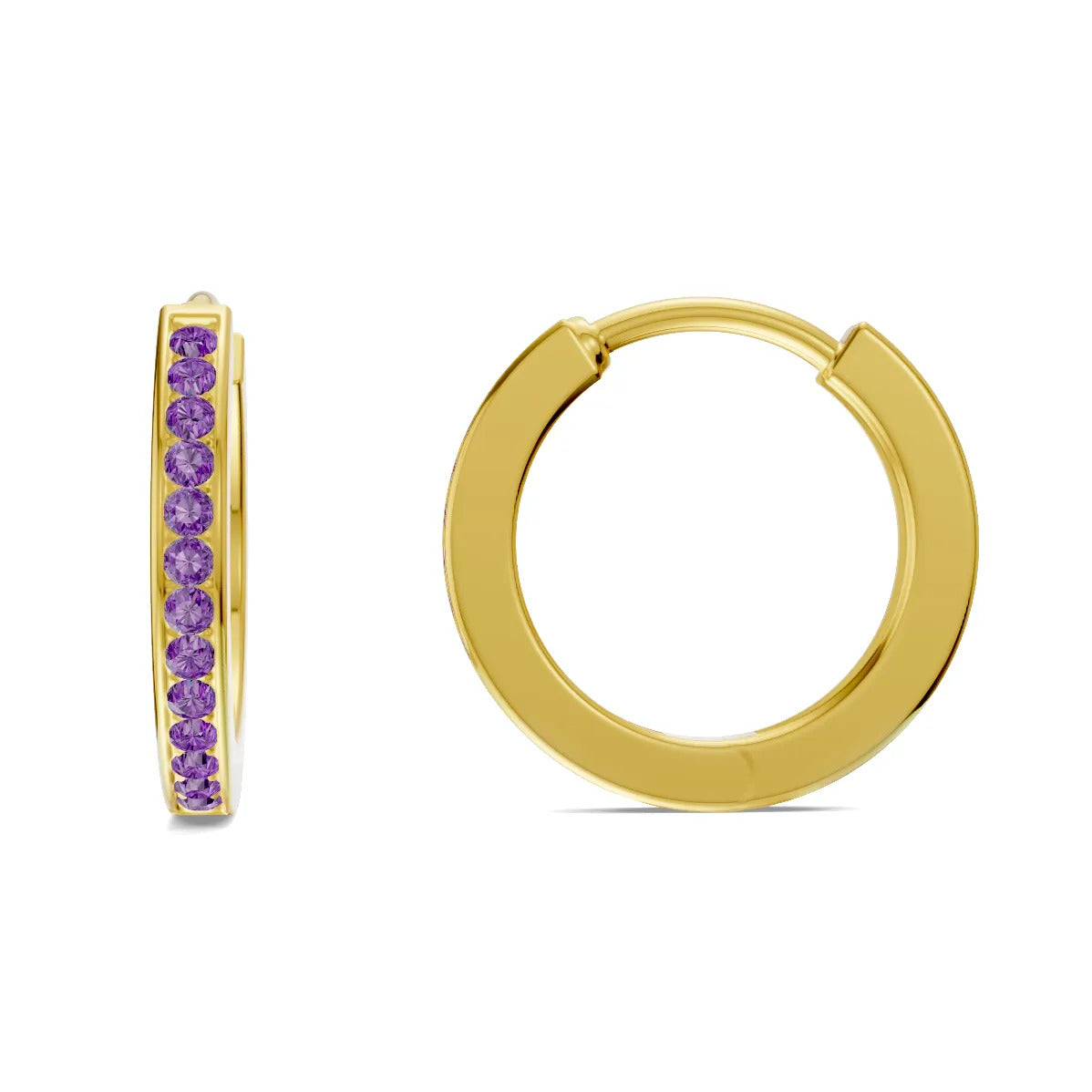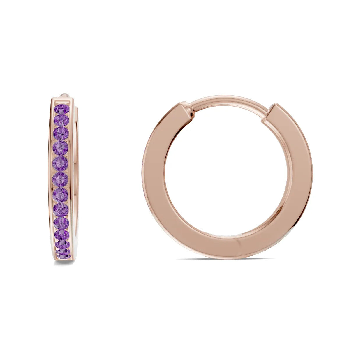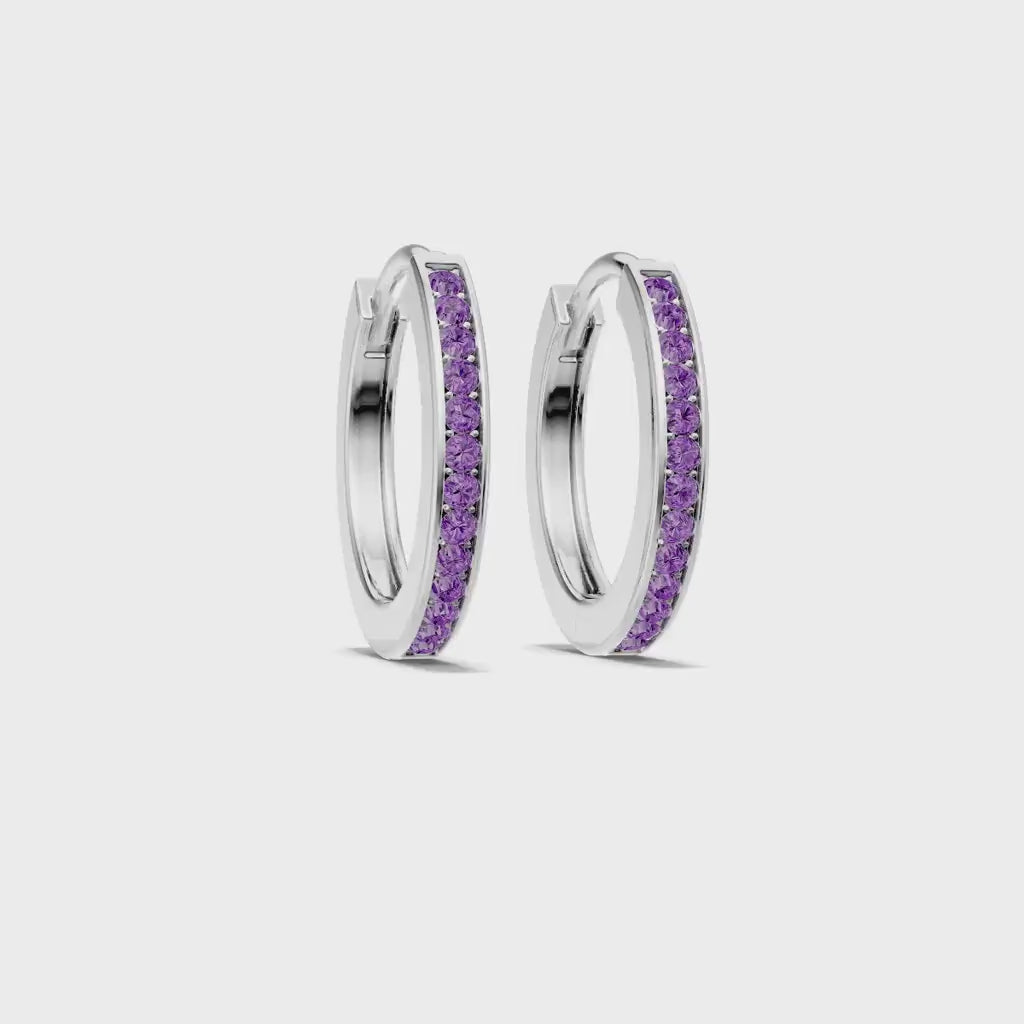 Amethyst Pave Hinged Huggie Hoop Earrings - Mini