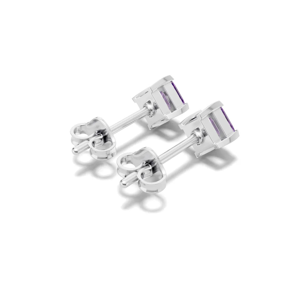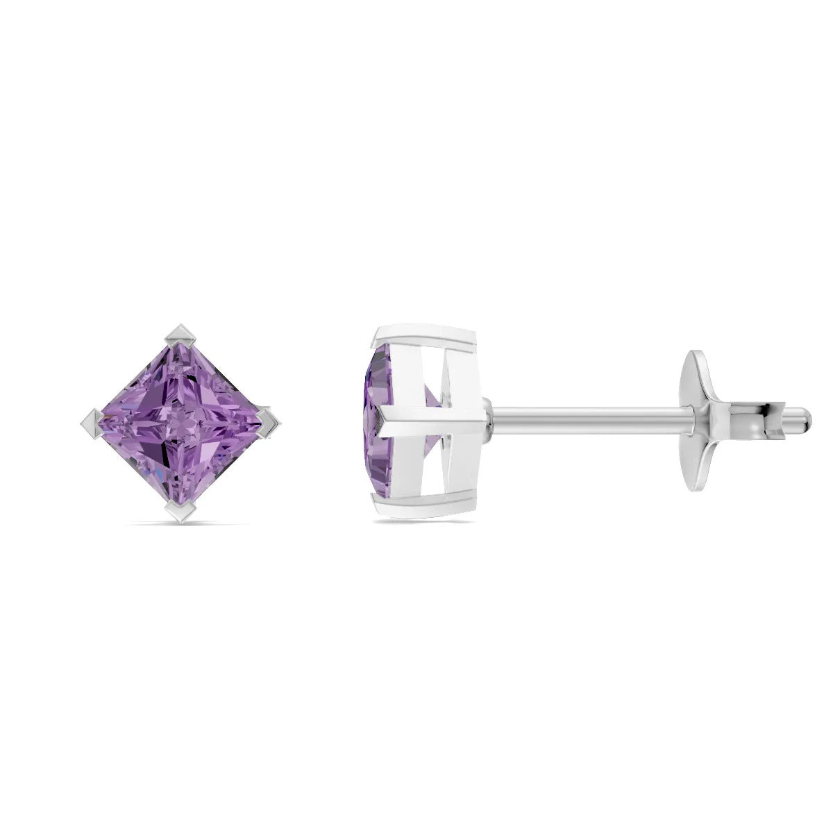 Amethyst Princess Studs - NSEW Prongs - 4mm