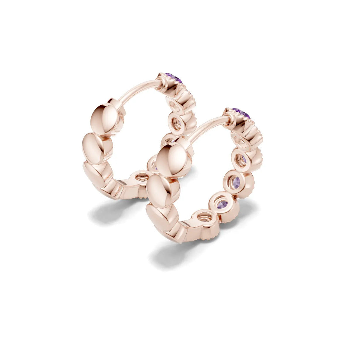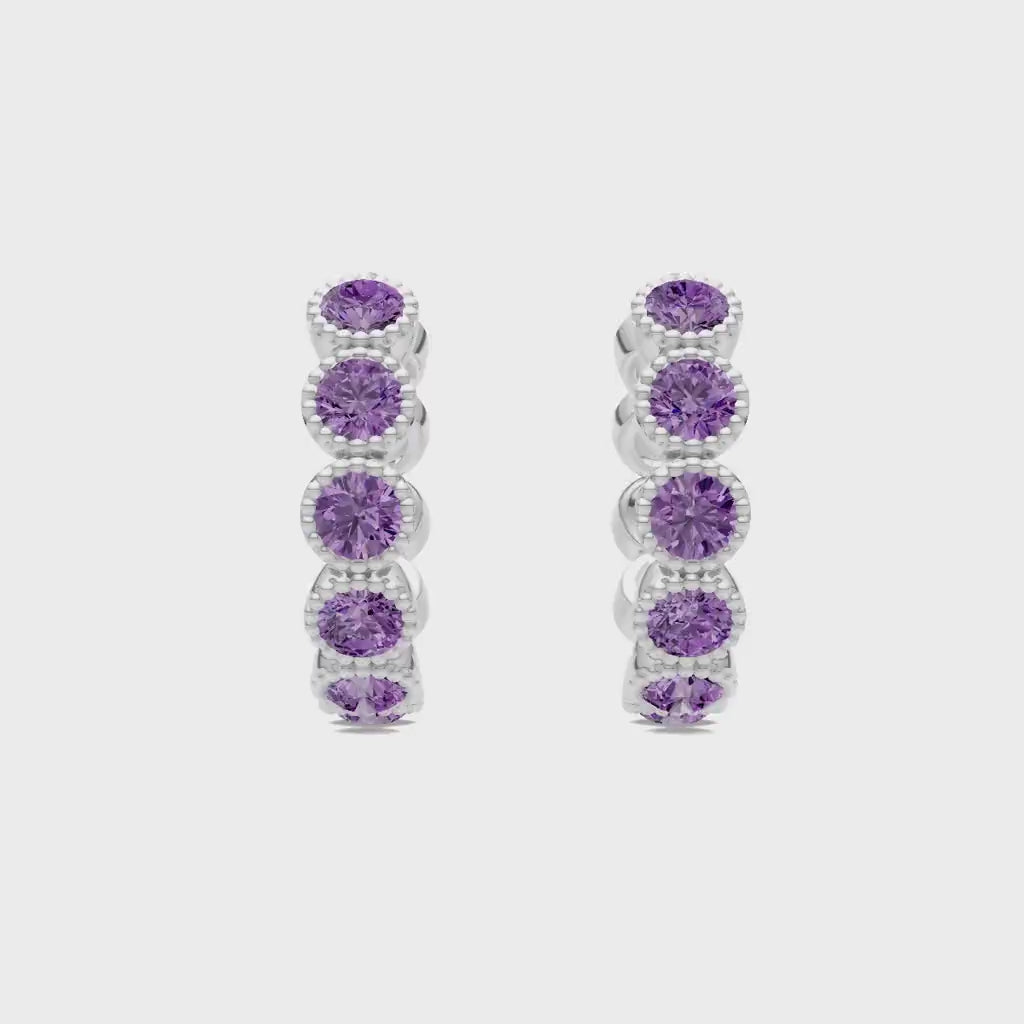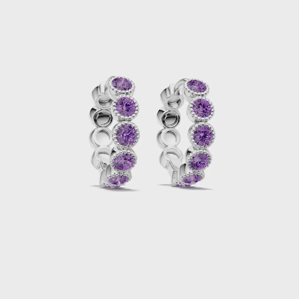 Amethyst Round Bezel Huggies Earrings with Milgrain