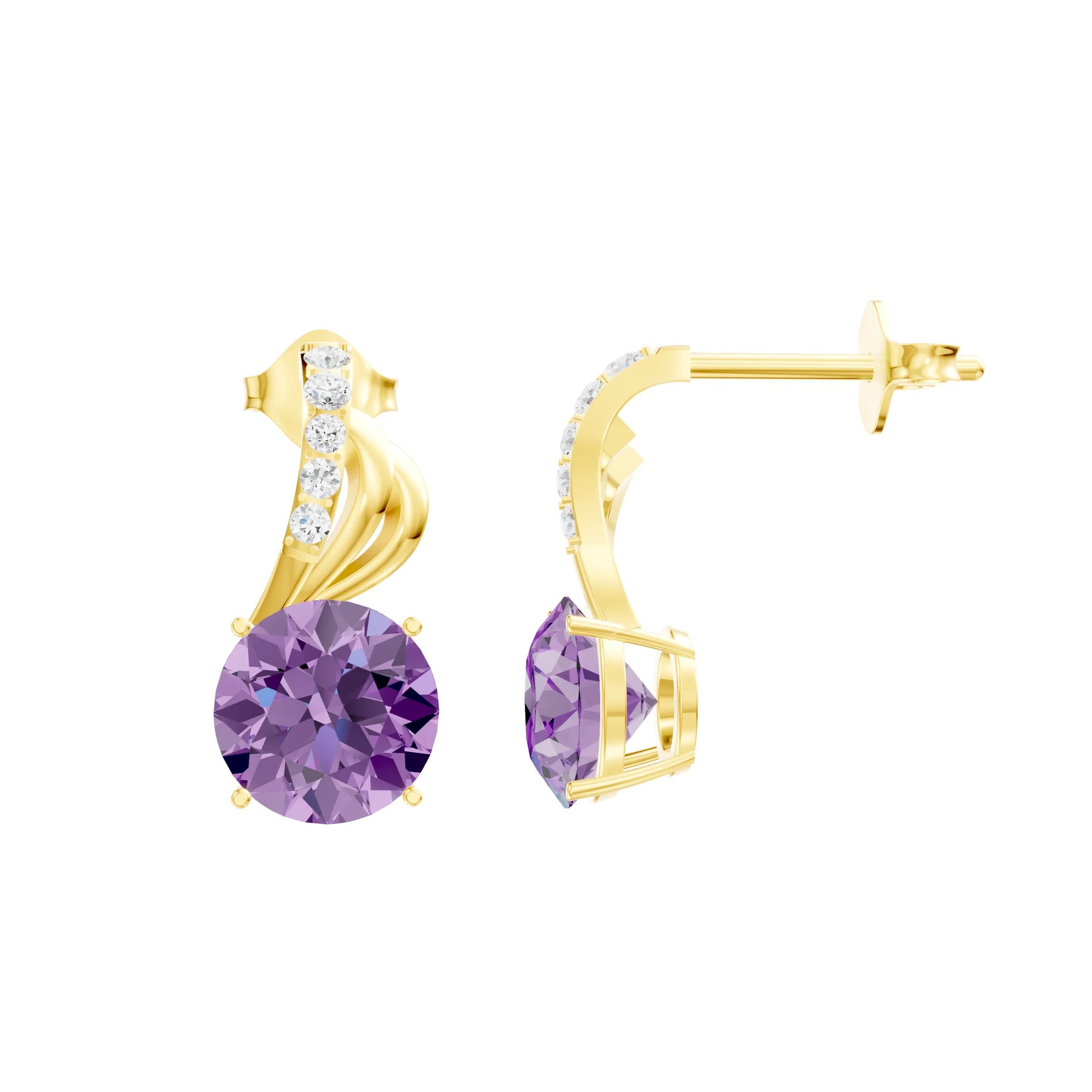 Amethyst Round Earrings - 6mm