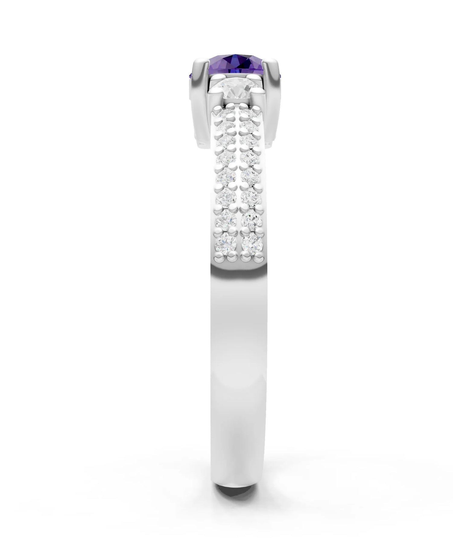 Discover the captivating beauty of our 14k White Gold Amethyst ring, featuring a stunning 5mm round Amethyst set in a refined solitaire design. Available in 10k, 14k, and 18k Gold, with options in White, Yellow, or Rose Gold, this piece showcases Peora's commitment to quality craftsmanship. Every Amethyst boasts a radiant purple hue, enhanced by its VS1 clarity, embodying a thoughtful design that harmonizes with Peora's mission of creating jewelry that resonates deeply. Crafted with care from responsibly sourced materials, each ring arrives in a luxurious gift box, perfect for gifting or safeguarding your cherished treasure.