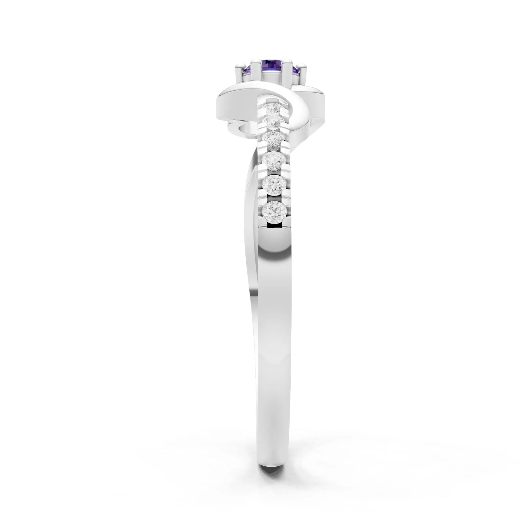 Introducing the Twist Pavé Accent Tiny Solitaire Ring, featuring a stunning amethyst that captures the eye with its vivid purple hue. Crafted with precision, this ring is available in your choice of 10k, 14k, or 18k gold, in White, Yellow, or Rose Gold, exemplifying Peora’s high standards for craftsmanship. Each piece reflects our commitment to beautiful design and responsible sourcing, allowing you to celebrate life’s moments with meaningful jewelry. Crafted to perfection, this ring is an exceptional example of how thoughtful artistry meets lasting beauty. Each piece arrives in a luxurious gift box, ideal for gifting or safekeeping.