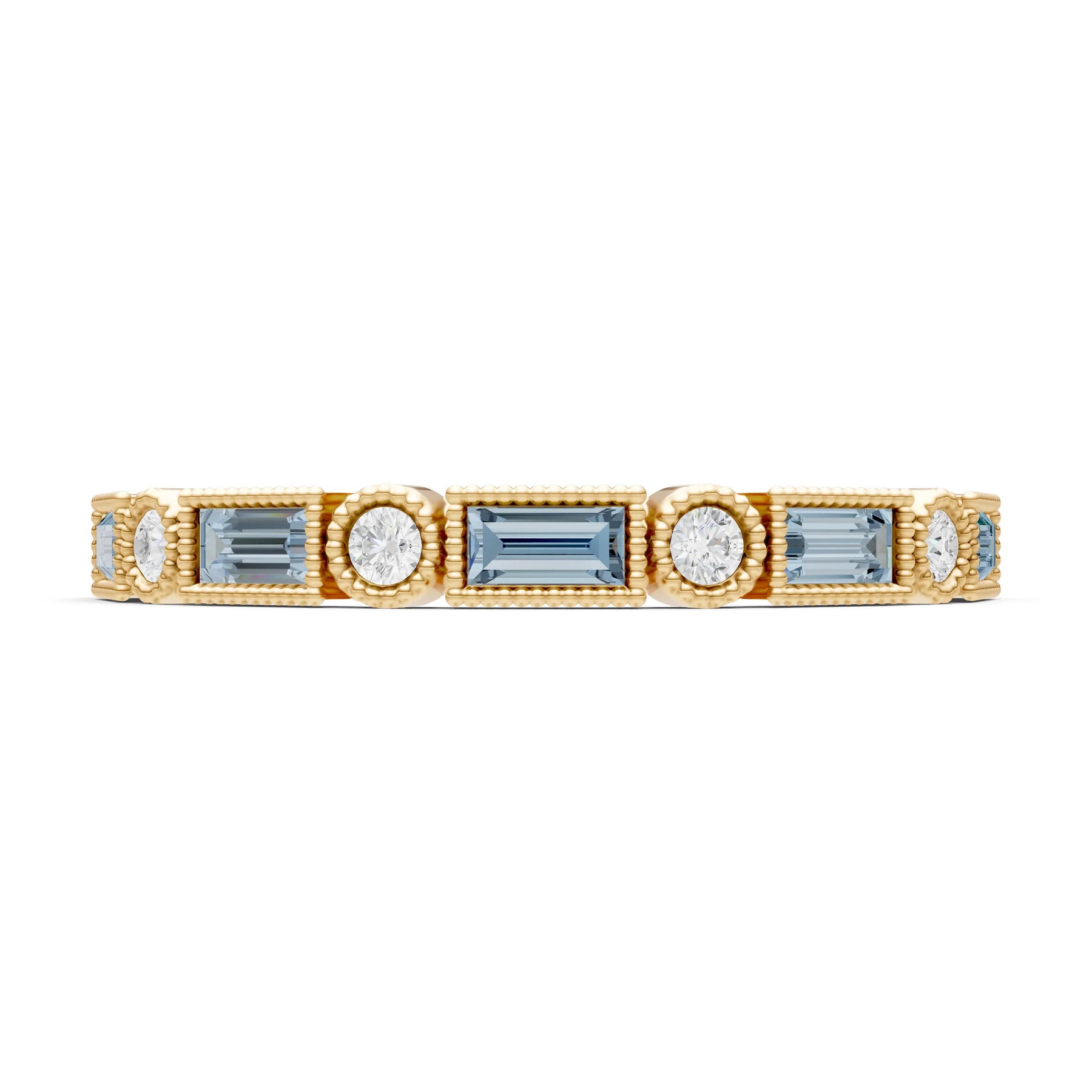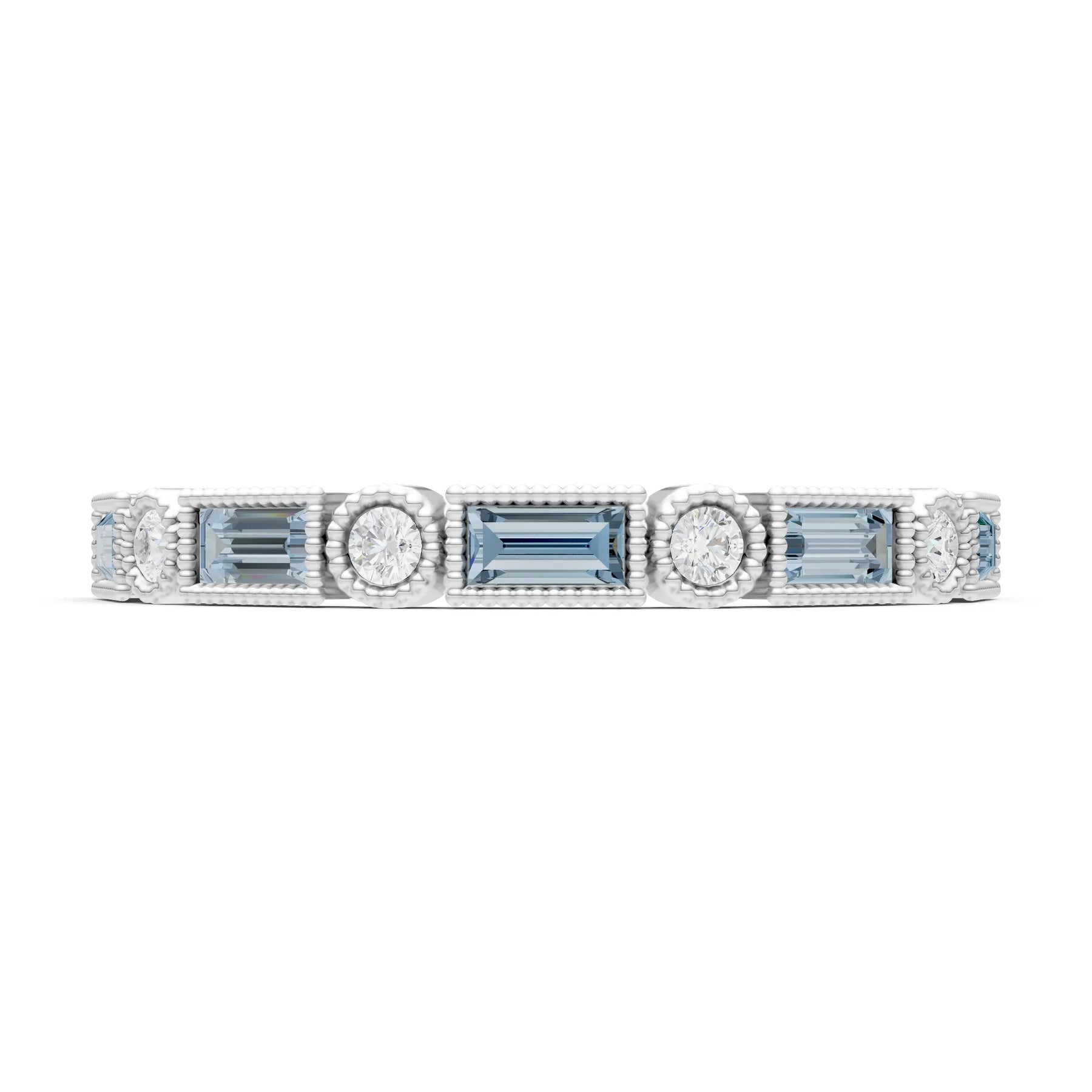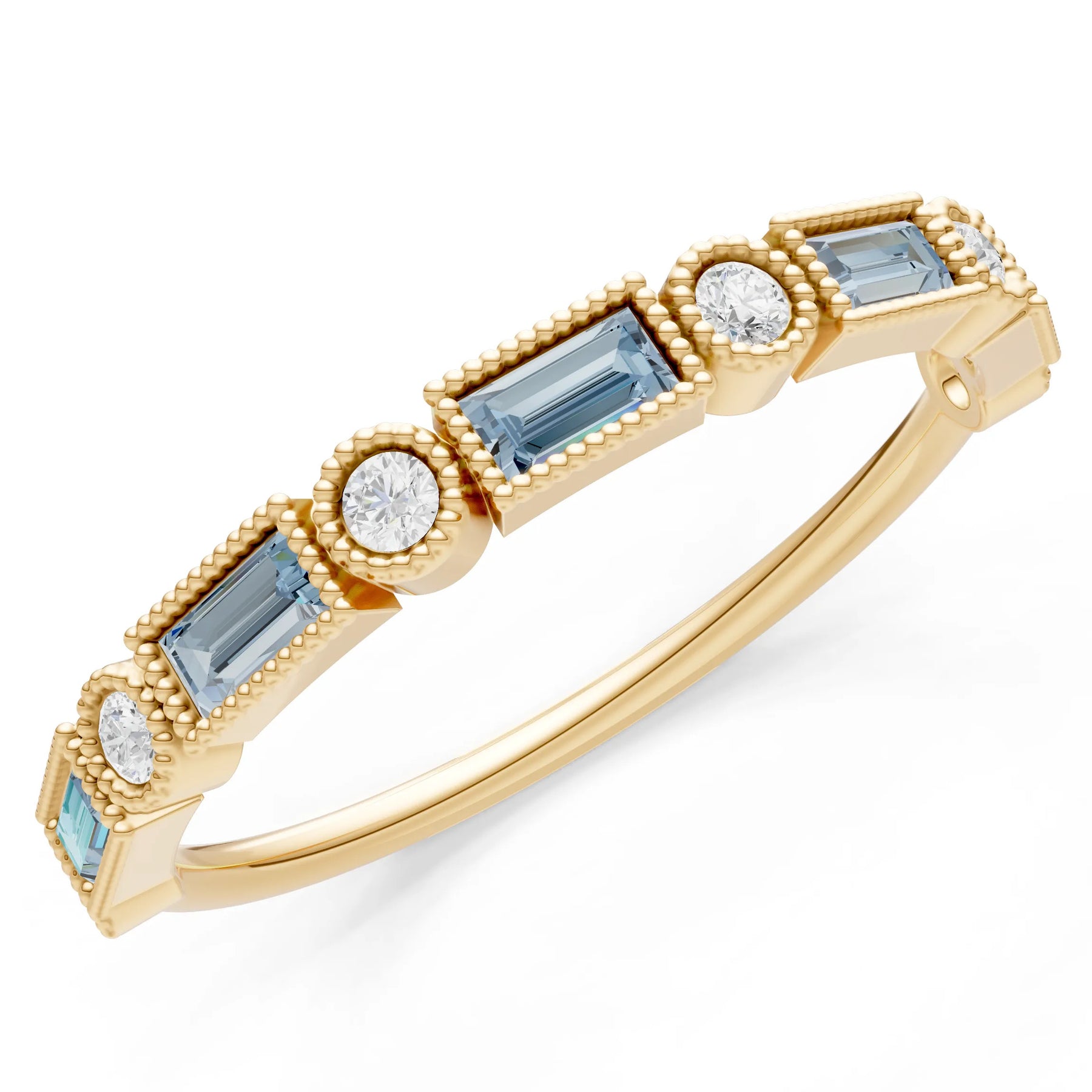 Aquamarine Dainty Alternating Gemstone Band - Baguette & Round