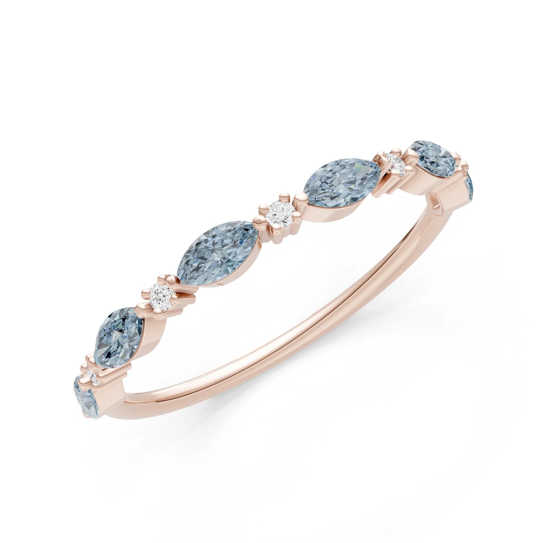 Aquamarine Dainty Alternating Prong Station Marquise & Round Half Band