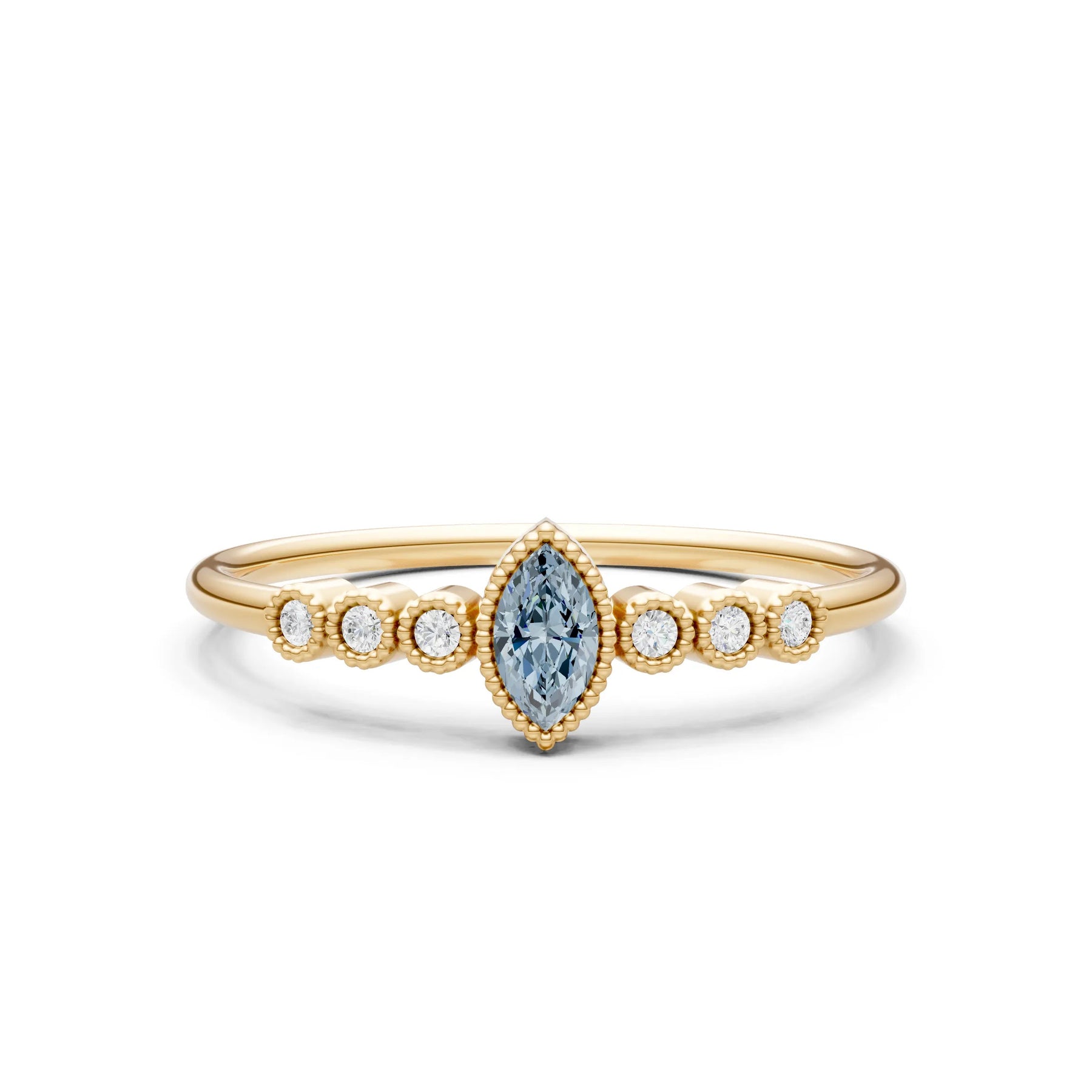 Aquamarine Dainty Marquise Center Cluster Ring