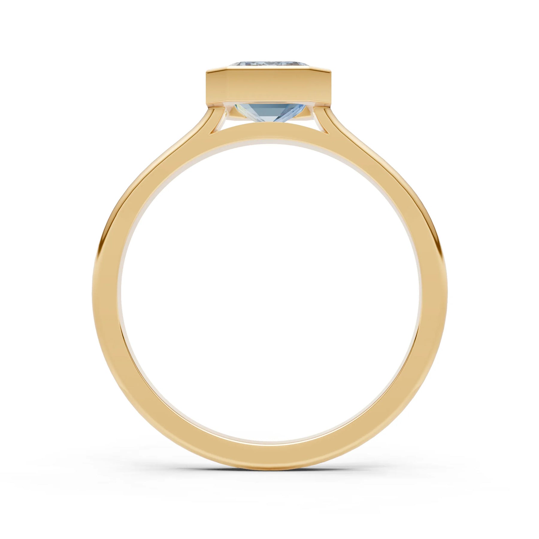 Aquamarine Emerald Cut Bezel Set Solitaire Ring