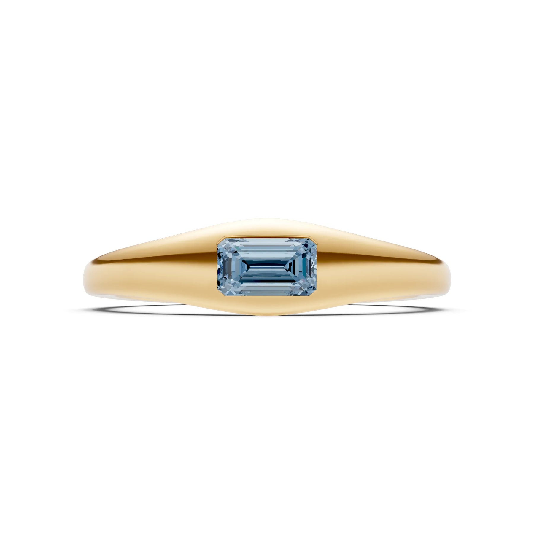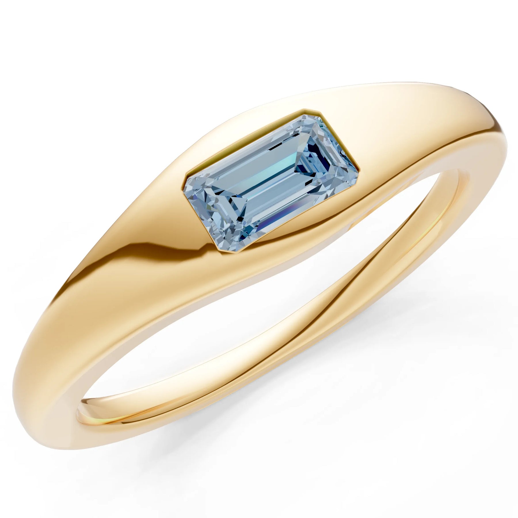 Aquamarine Flush-Set Emerald Cut Gemstone Mini Signet Ring