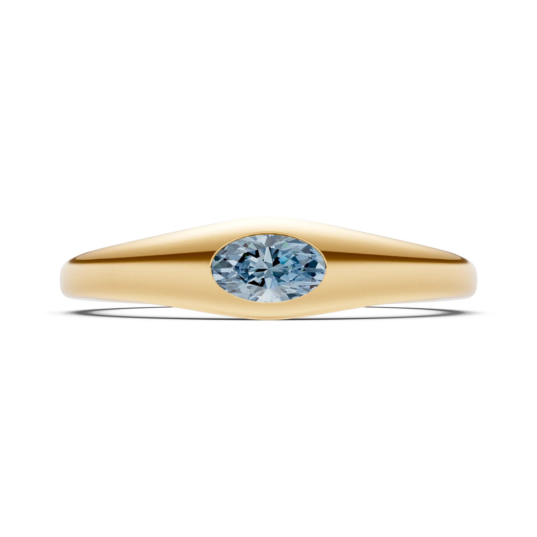 Aquamarine Flush-Set Oval Gemstone Mini Signet Ring