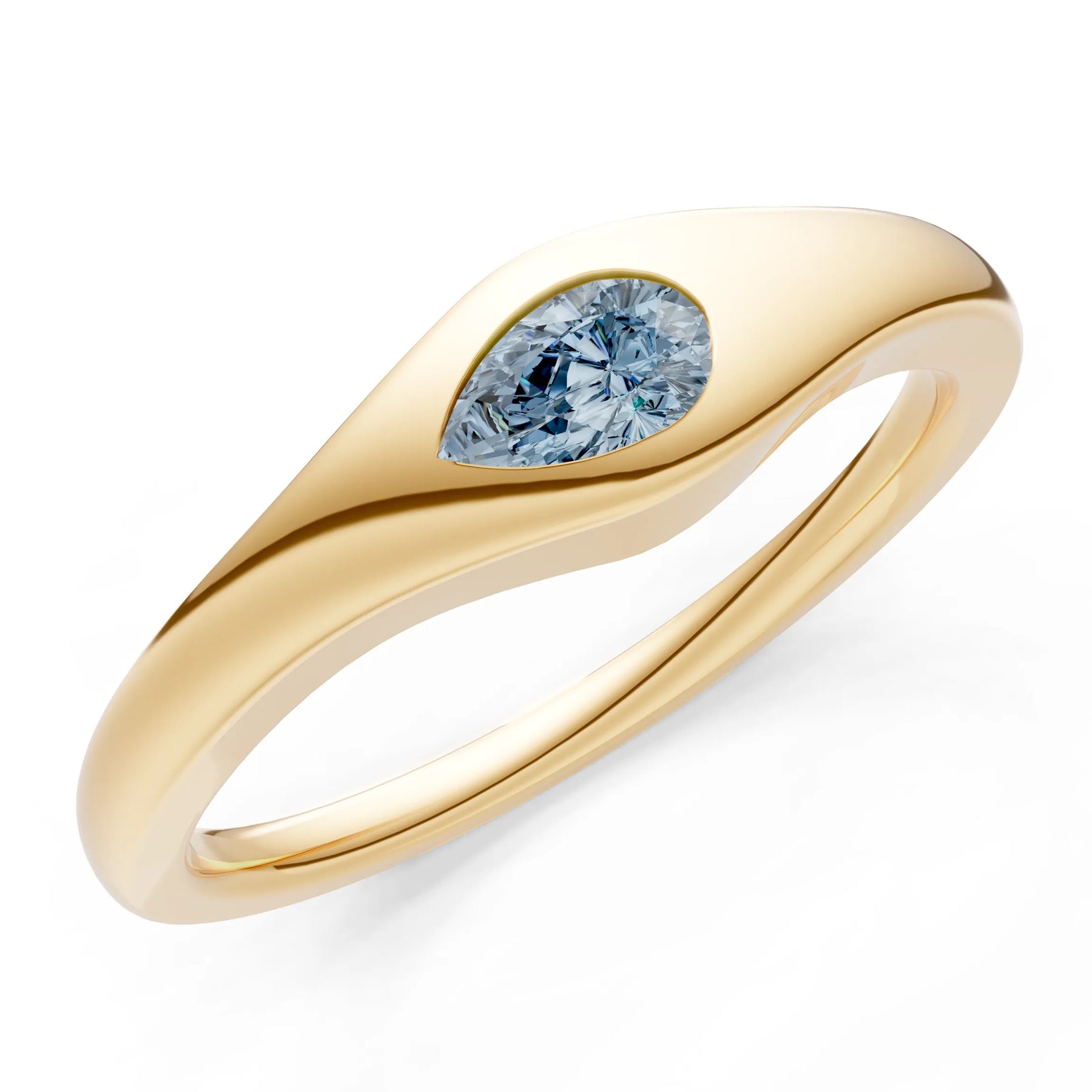 Aquamarine Flush-Set Pear Gemstone Mini Signet Ring