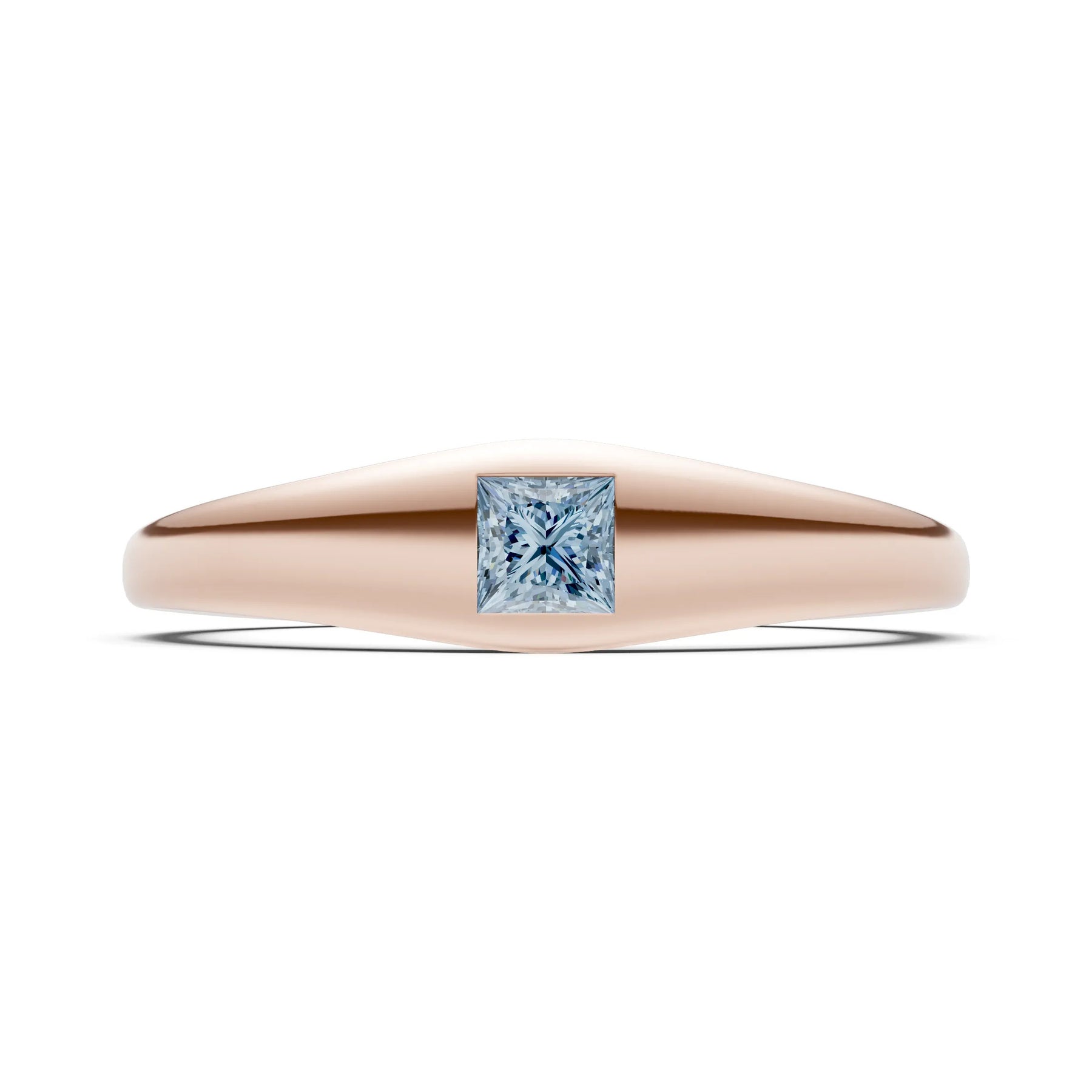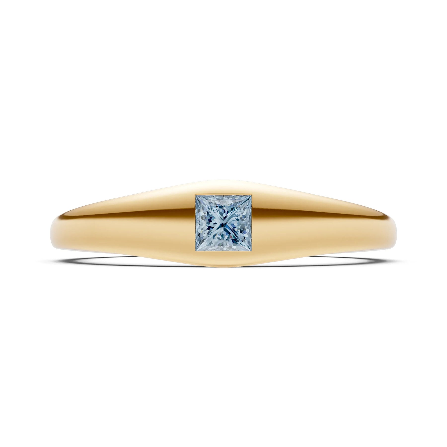 Aquamarine Flush-Set Princess Cut Gemstone Mini Signet Ring