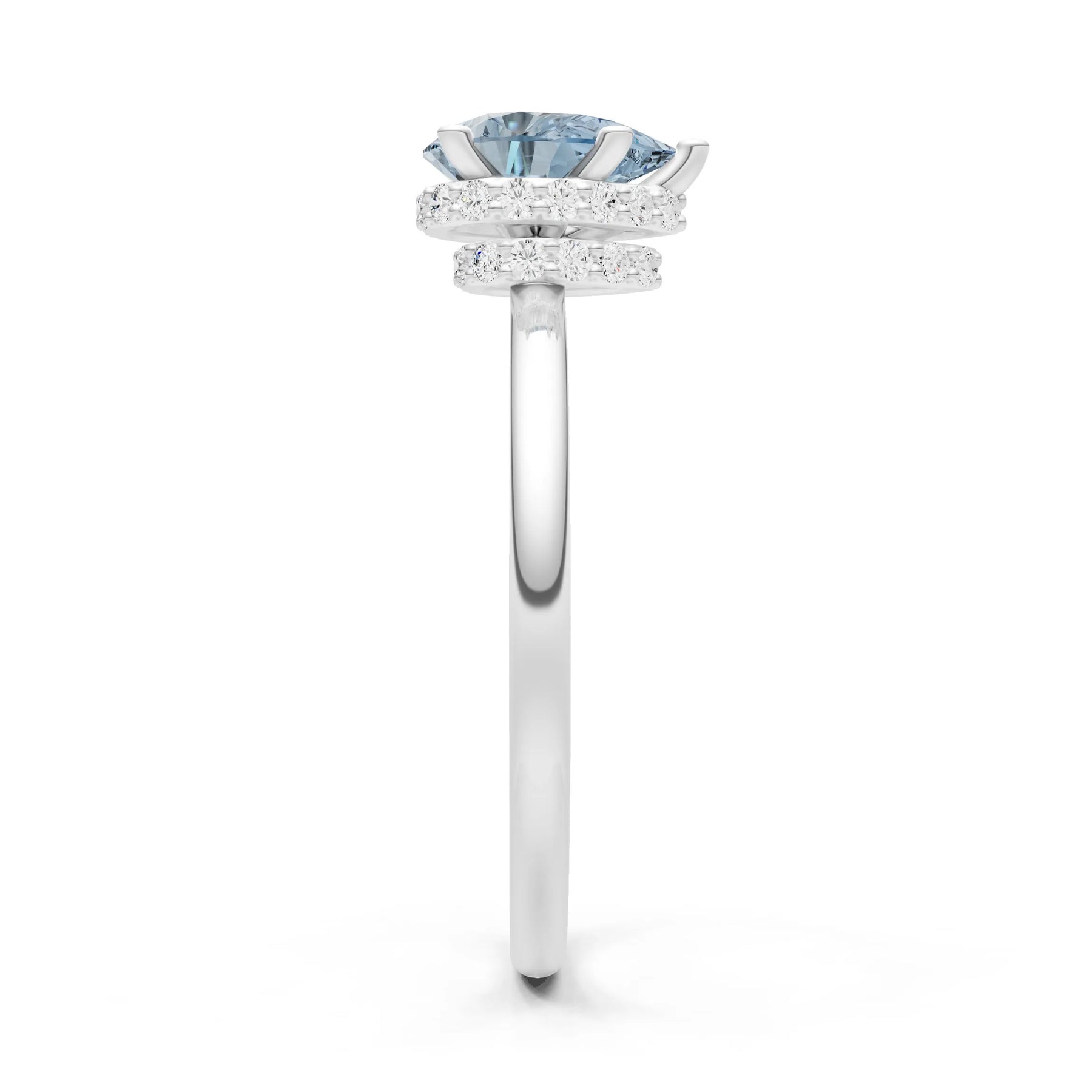 Aquamarine Pear Hidden Double Halo Engagement Ring