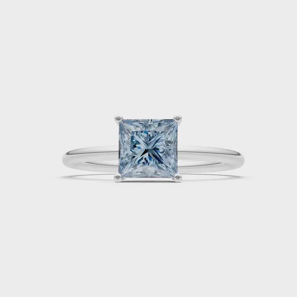 Aquamarine 4 Prong Princess Cut Basket Classic Solitaire Engagement Ring