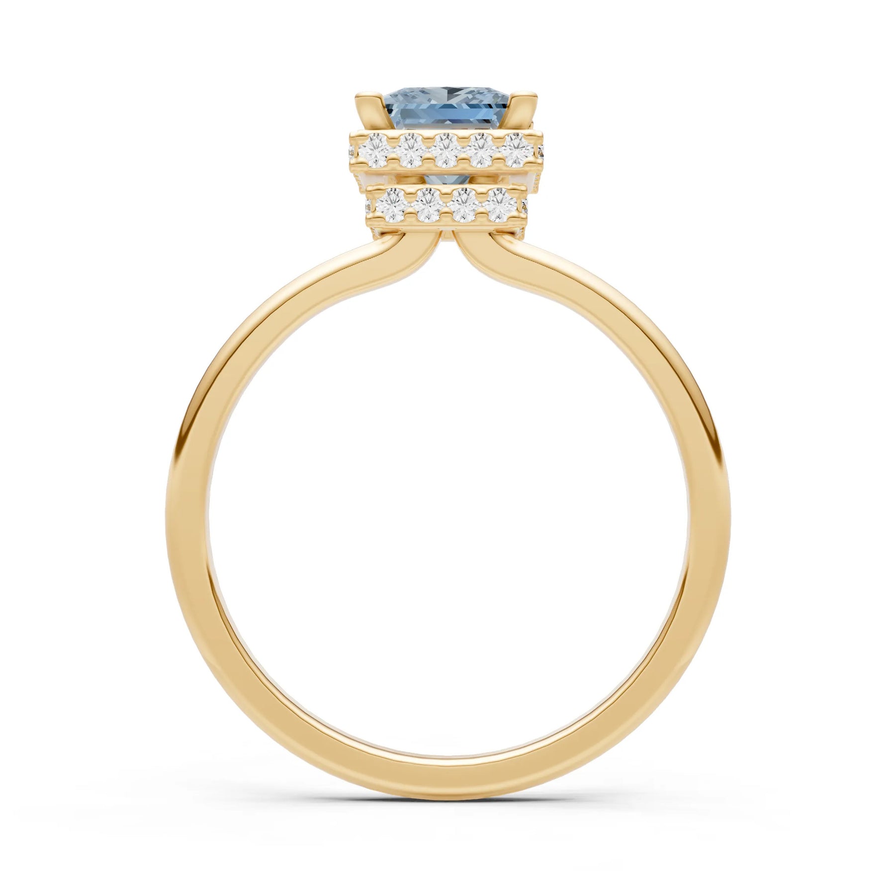Aquamarine Princess Cut Hidden Double Halo Engagement Ring