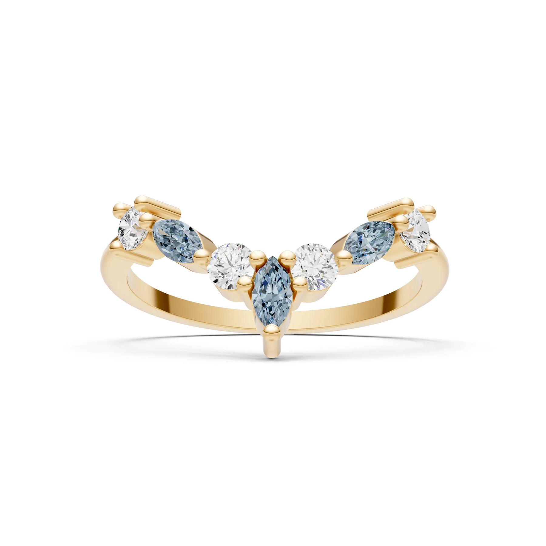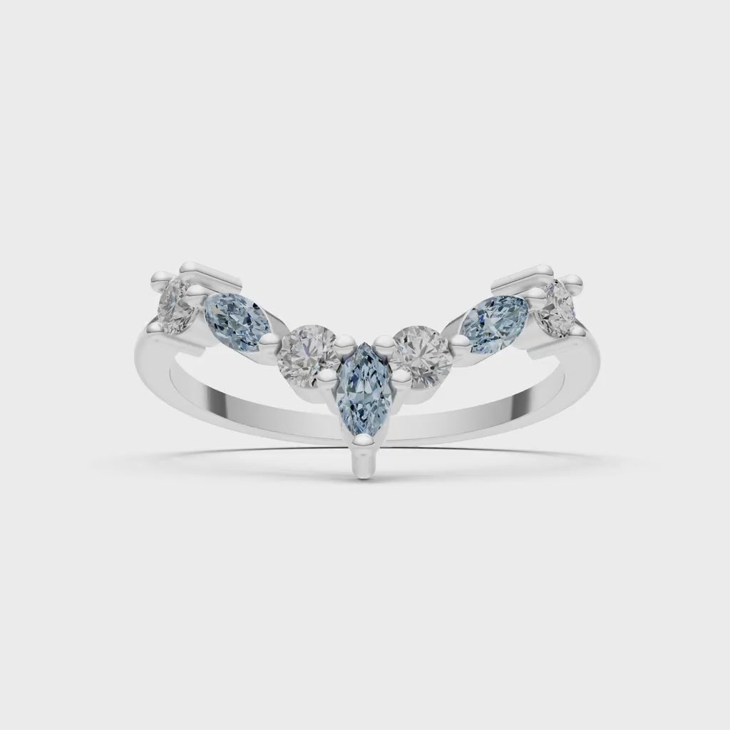Aquamarine Round and Marquise Chevron Wedding Ring