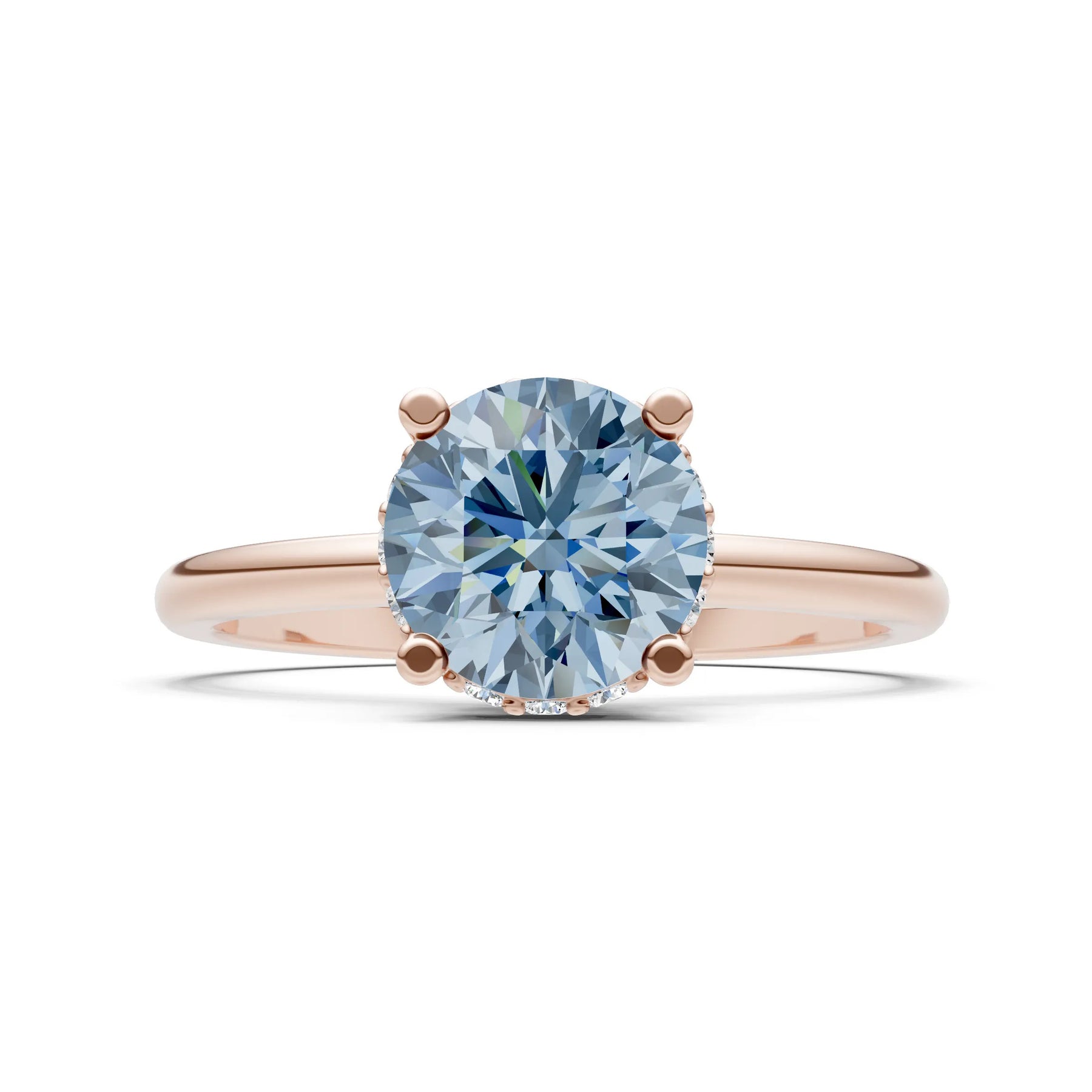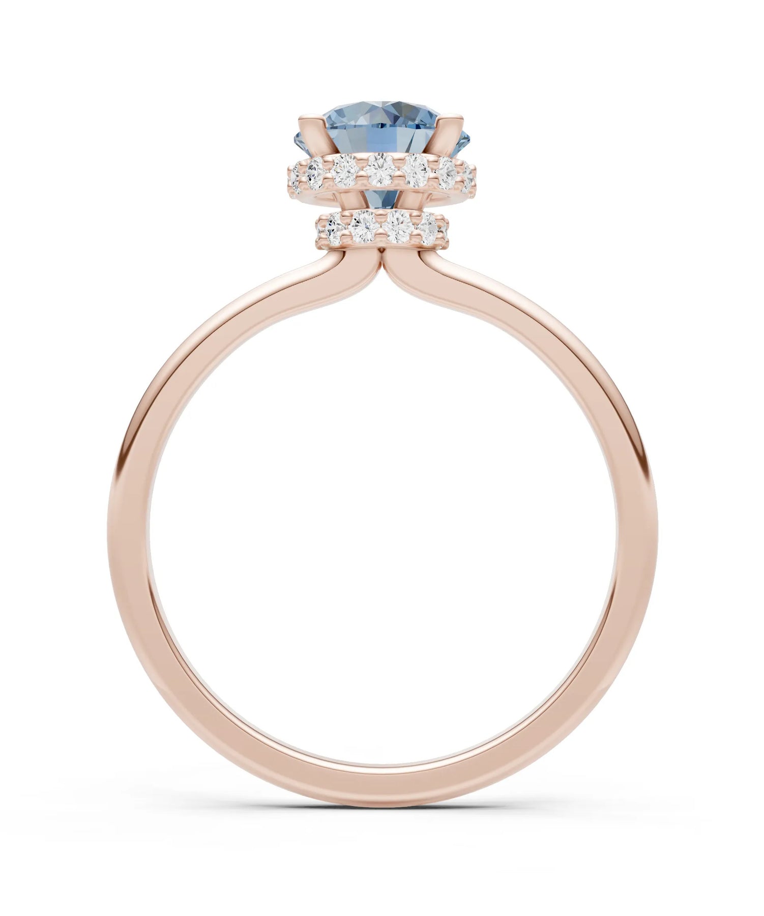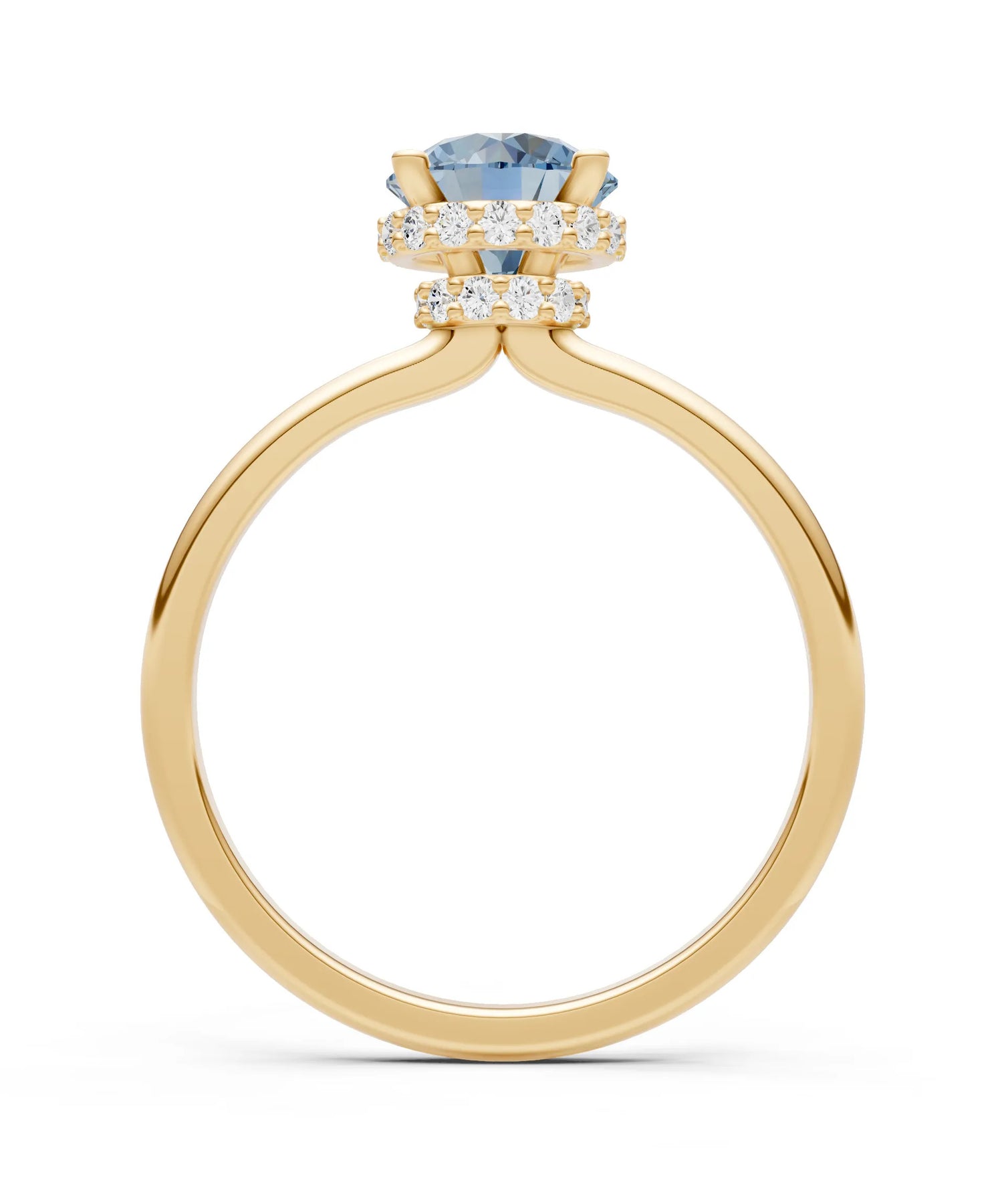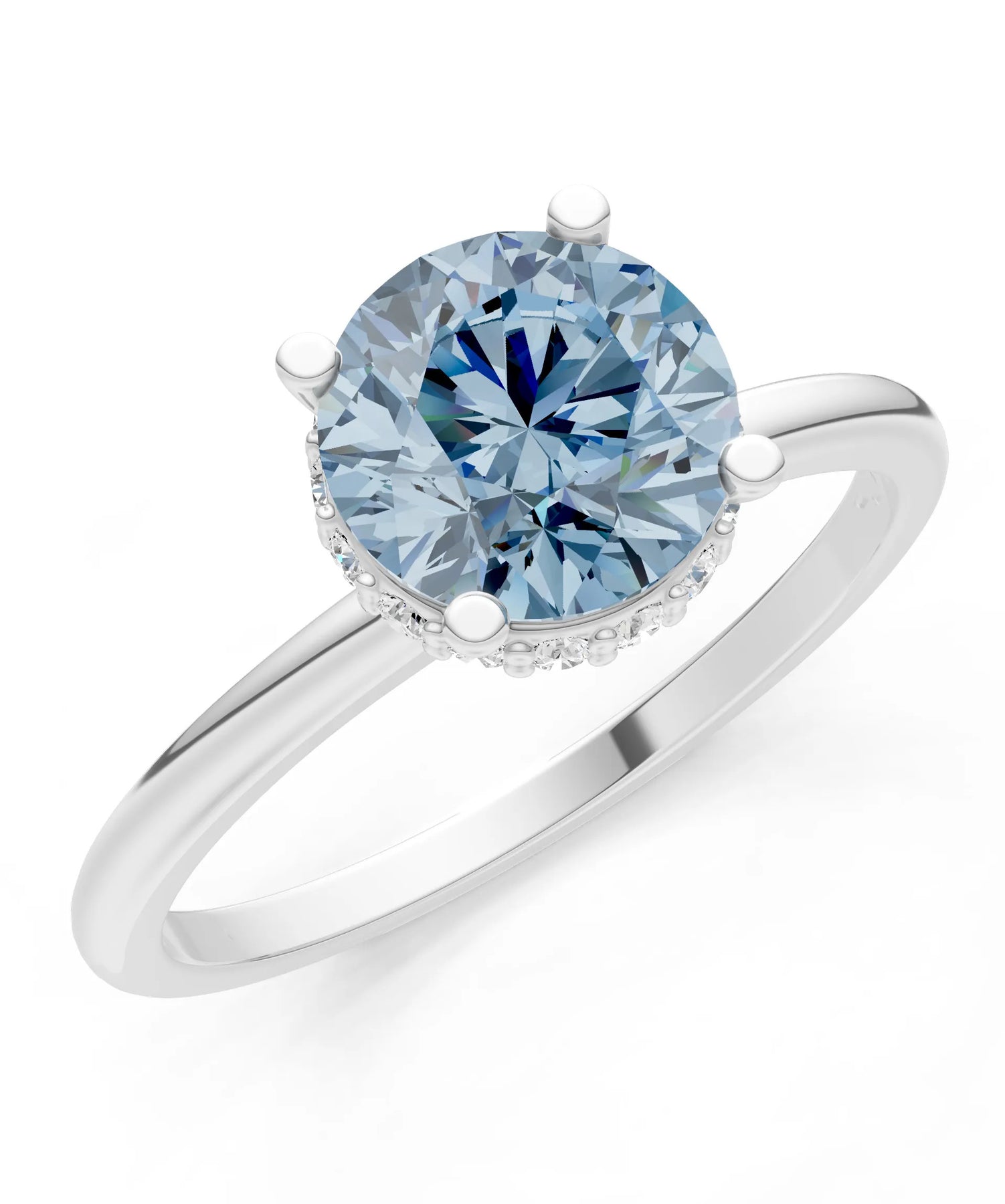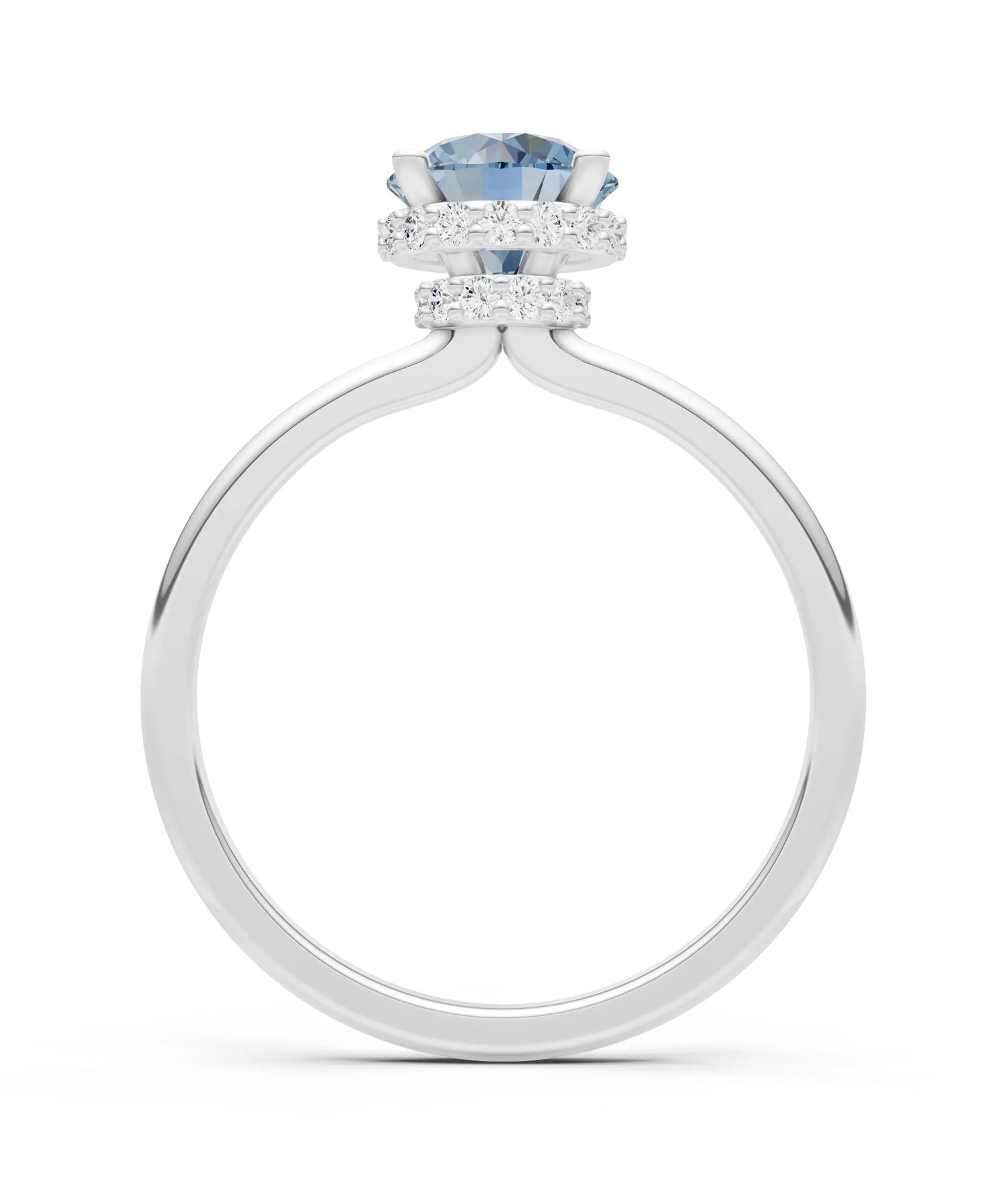 Aquamarine Round Shape Hidden Double Halo Engagement Ring