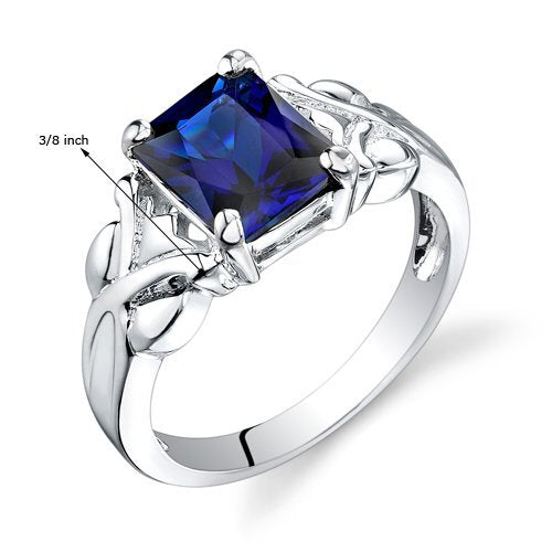 This standout ring features a radiant shape Peora created Sapphire gemstone in .925 sterling silver.