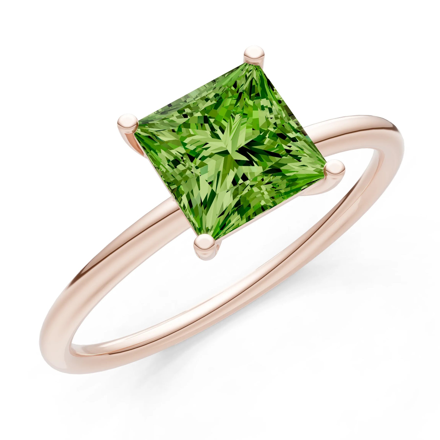 Peridot Princess Cut 6mm Normal Gold Quality 4 Prong Princess Cut Basket Classic Solitaire Engagement Ring
