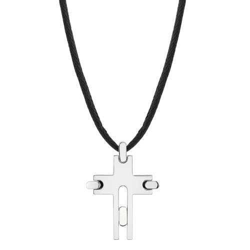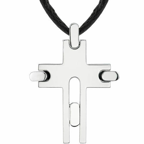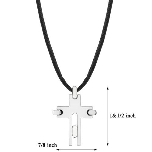 A modern interpretation of an ancient symbol created in 316L Surgical Steel features a Brushed Finish cross designed with movable parts. This distinctive piece will bring a simple yet elegant detail to your style. You have a great addition to your contemporary collection of modern jewelry. Surgical Steel emulates the richness of precious metals and ensures a Promise of Forever, defines Strength, will never rust, corrode or discolor nor lose its Timeless charm to tarnish. You can feel safe when you wear this Surgical Steel Pendant; it is completely Bio-compatible. This elegant pendant is fitted securely on a Black Wax cord that can be adjusted from 12 inches to 24 inches. Dimensions: Length: 11/2 inch x Width: 7/8 inch. This includes a Money Back Guarantee, Free Gift Box.
