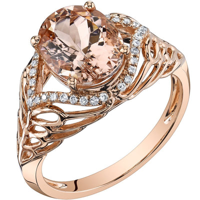 14K Rose Gold Morganite Diamond Ring 2.50 Carats Oval Shape