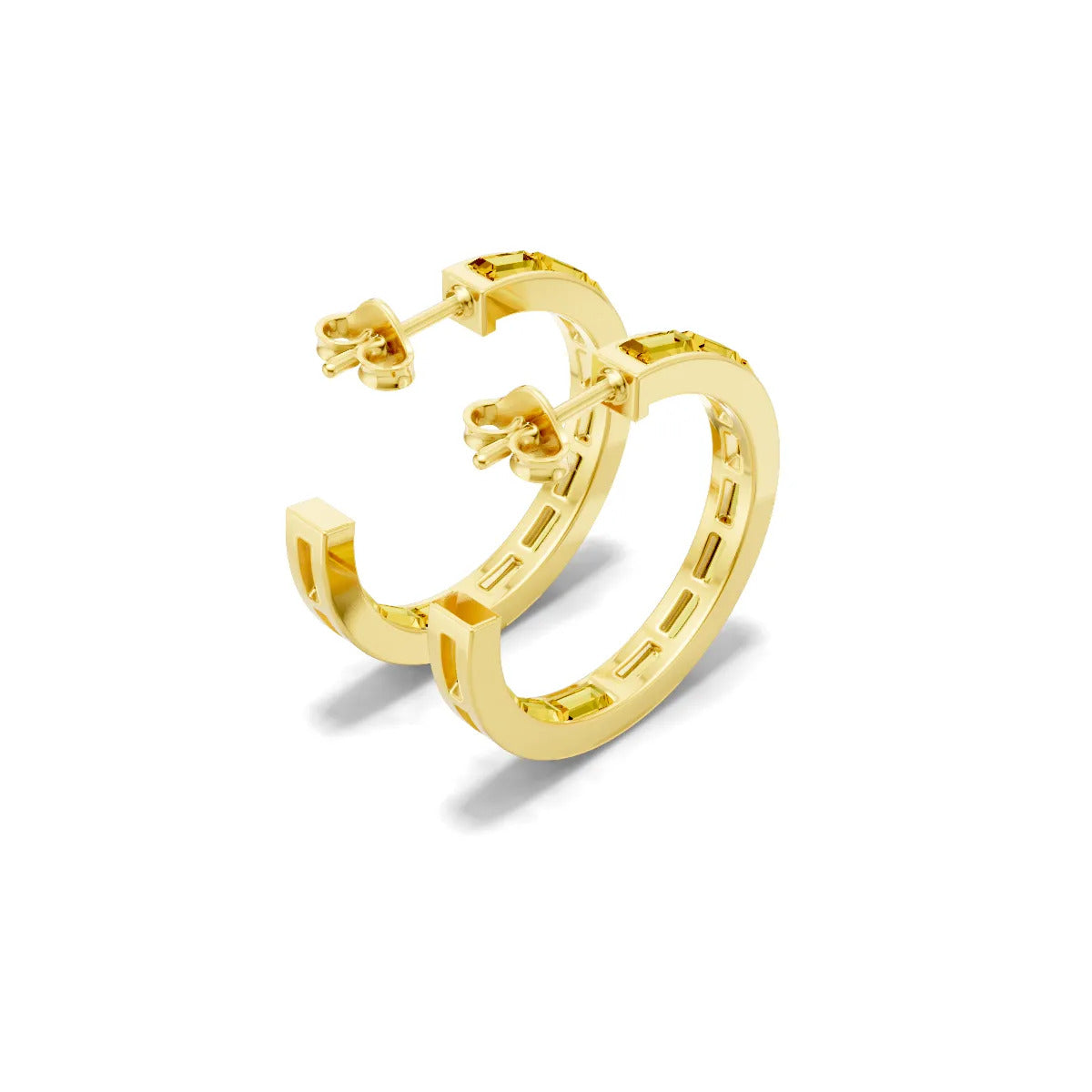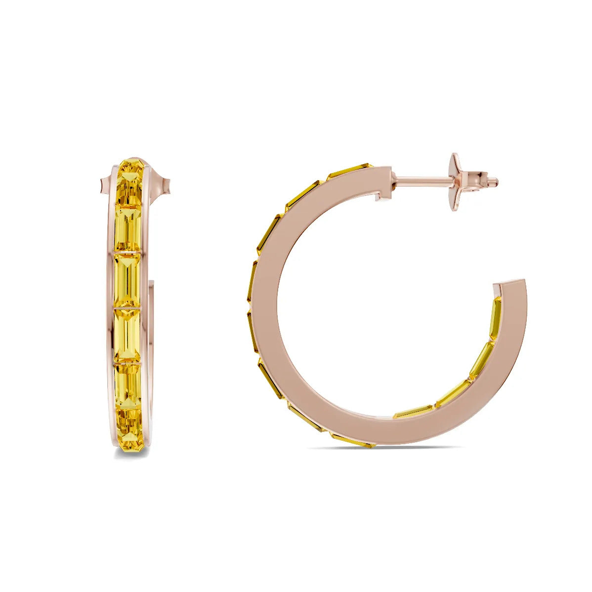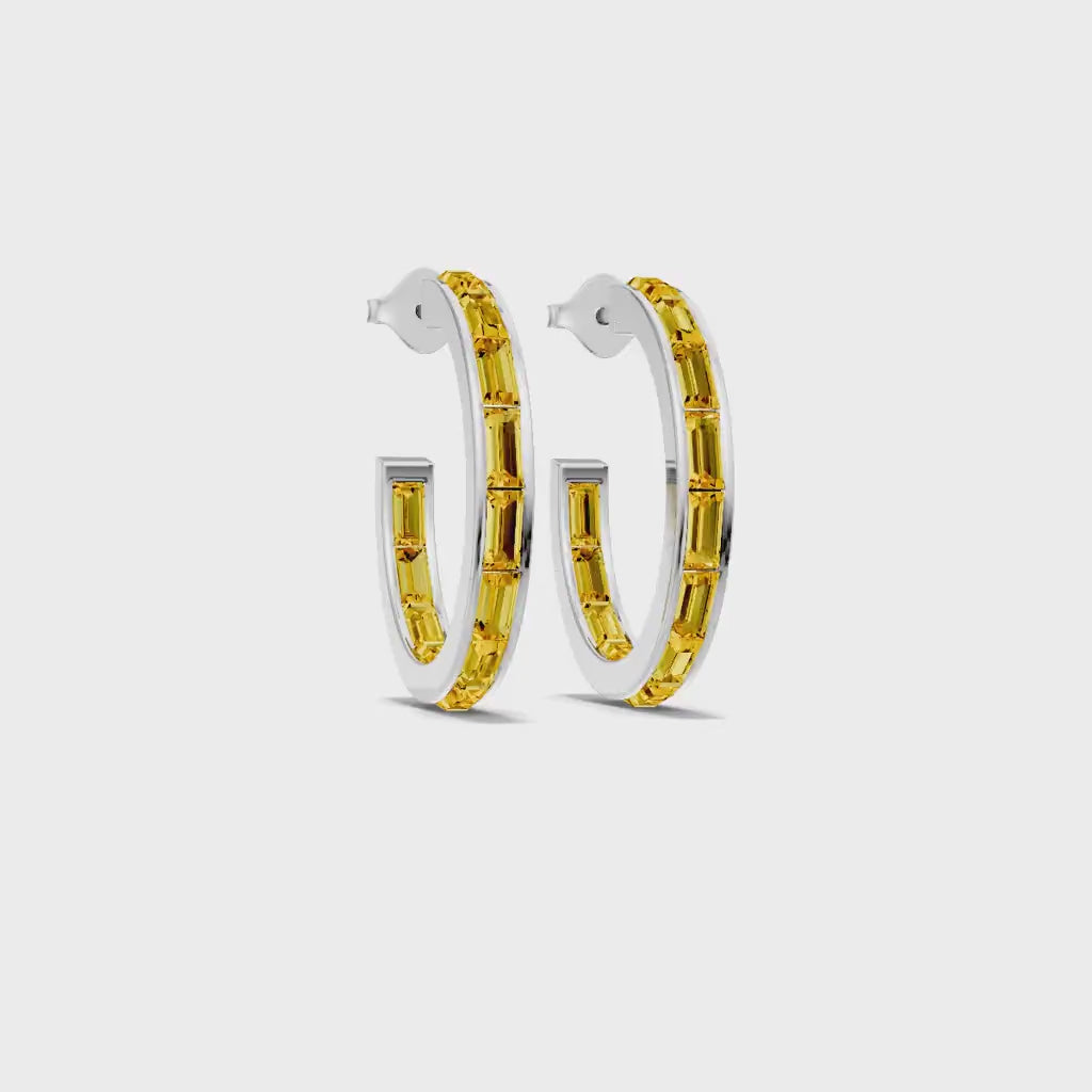 Citrine Baguette Hoops Earrings