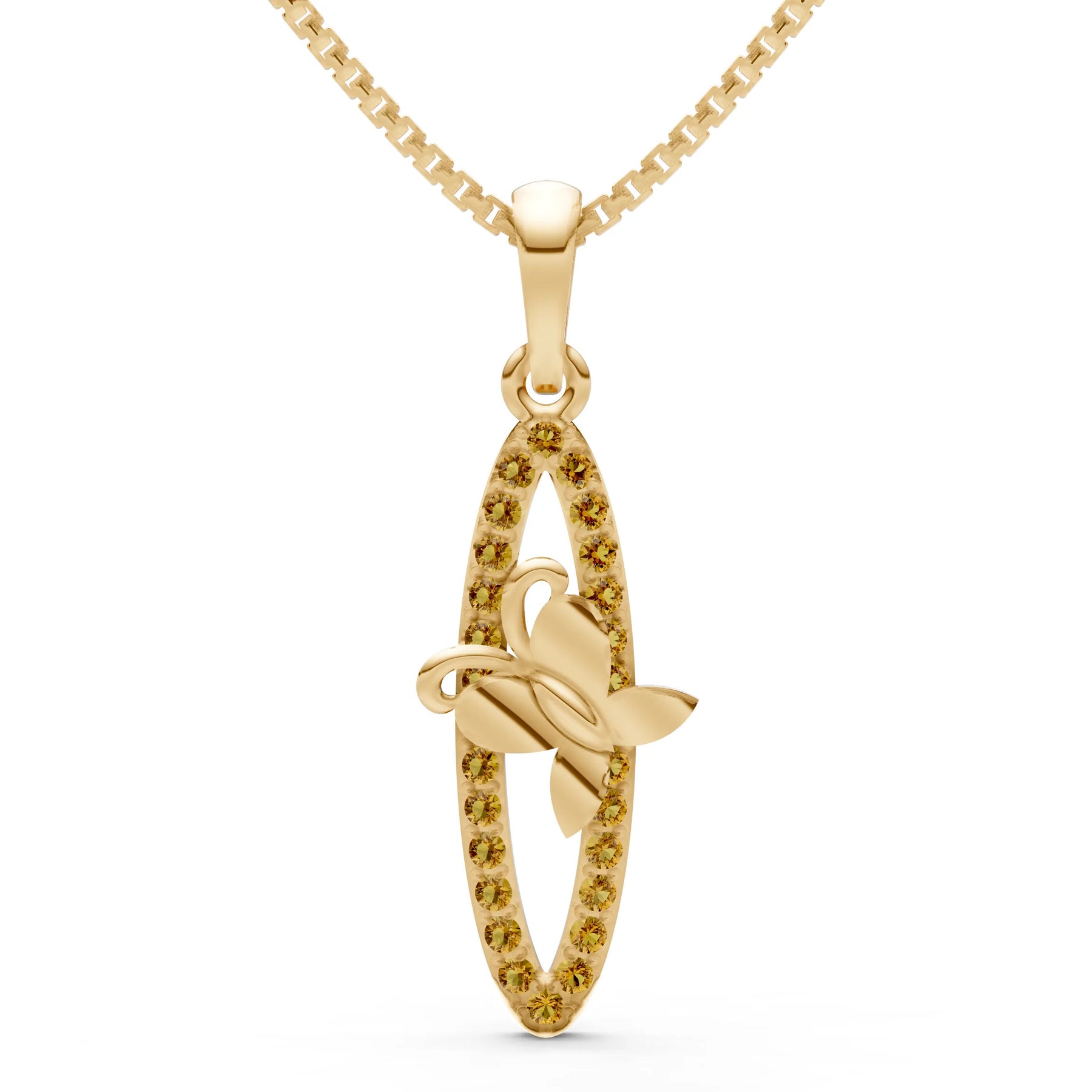 Meet the exquisite Butterfly Pendant, featuring a vibrant orange gemstone that beautifully captures the light, meticulously set in your choice of 10k, 14k, or 18k gold, available in White, Yellow, or Rose Gold. Crafted with Peora’s renowned expertise, this piece radiates charm and artistry. Every facet of this pendant showcases Peora's commitment to responsible sourcing and exquisite craftsmanship, transforming nature’s beauty into a wearable treasure. Each piece tells a story, reflecting a purpose rooted in lasting beauty, with an emphasis on quality and emotional connection. Your Butterfly Pendant will arrive in a luxurious gift box, making it a perfect present or a special addition to your collection.