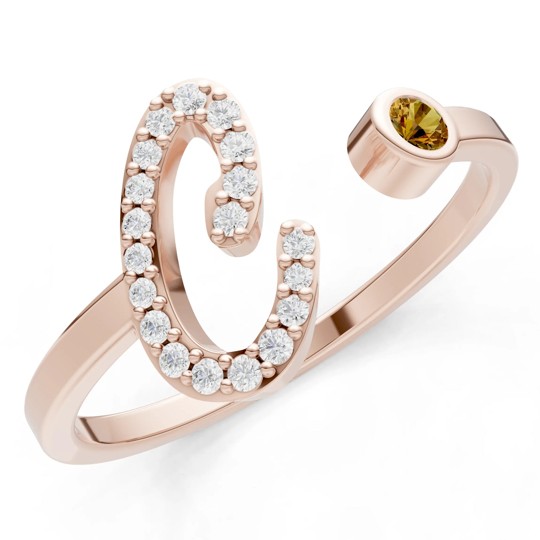Citrine Dainty Initial Letter Birthstone Open Ring – C