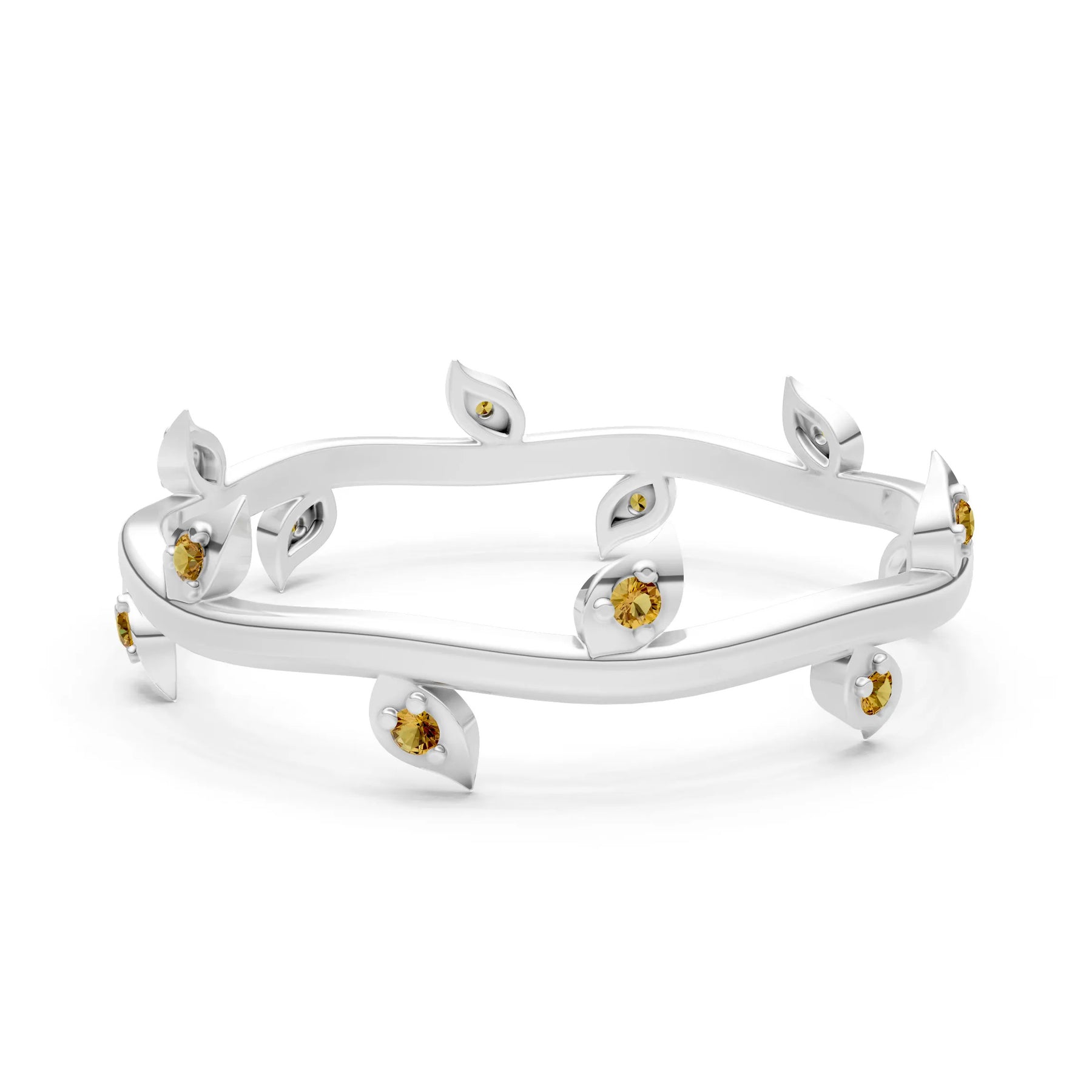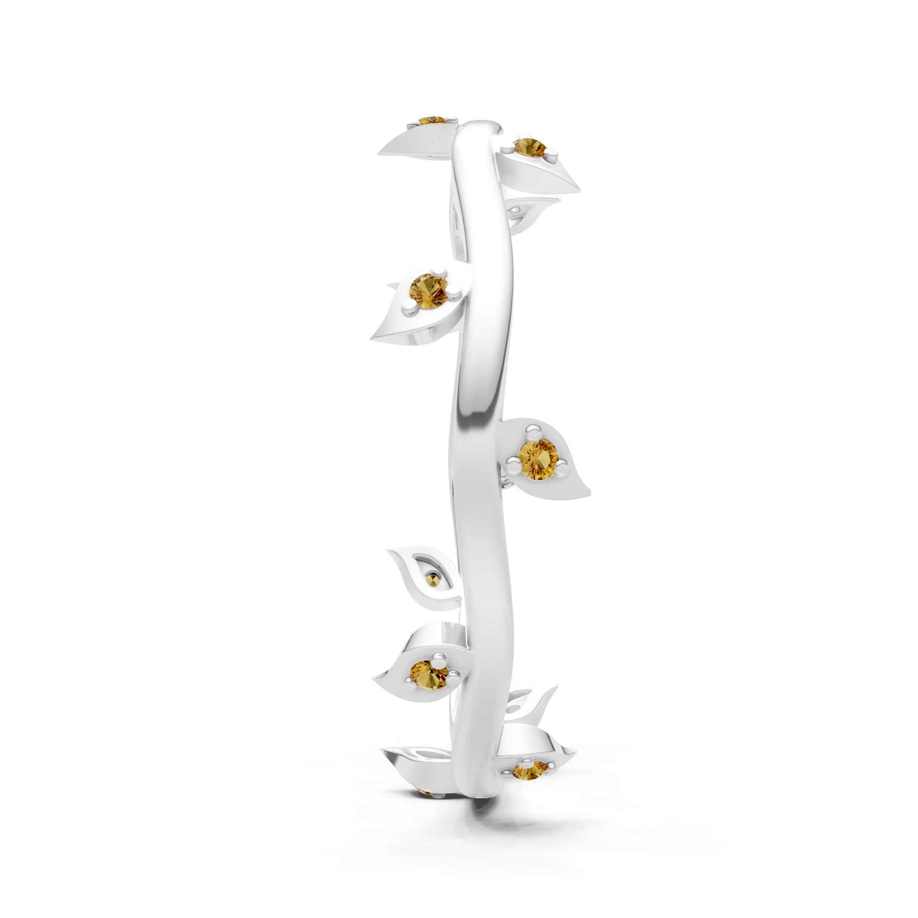 Citrine Dainty Leaf Motif Prong Eternity Band