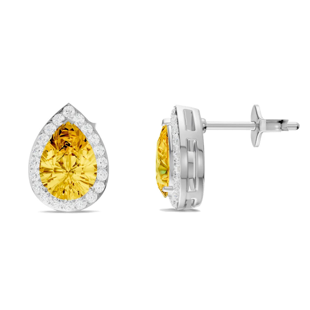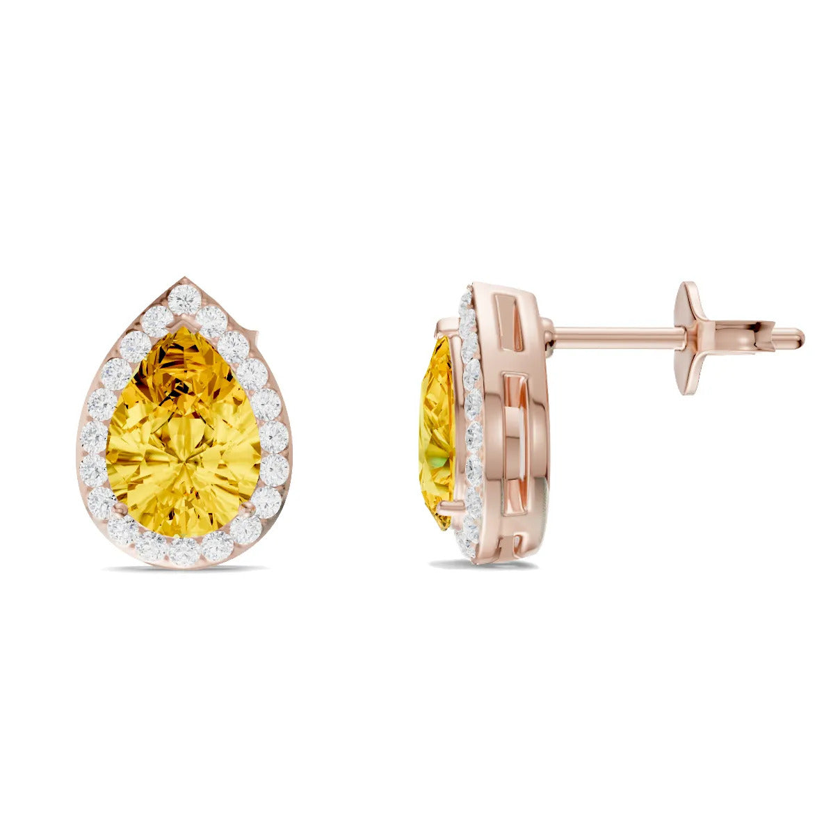 Citrine Pear Halo Studs Earrings  - 7x5mm