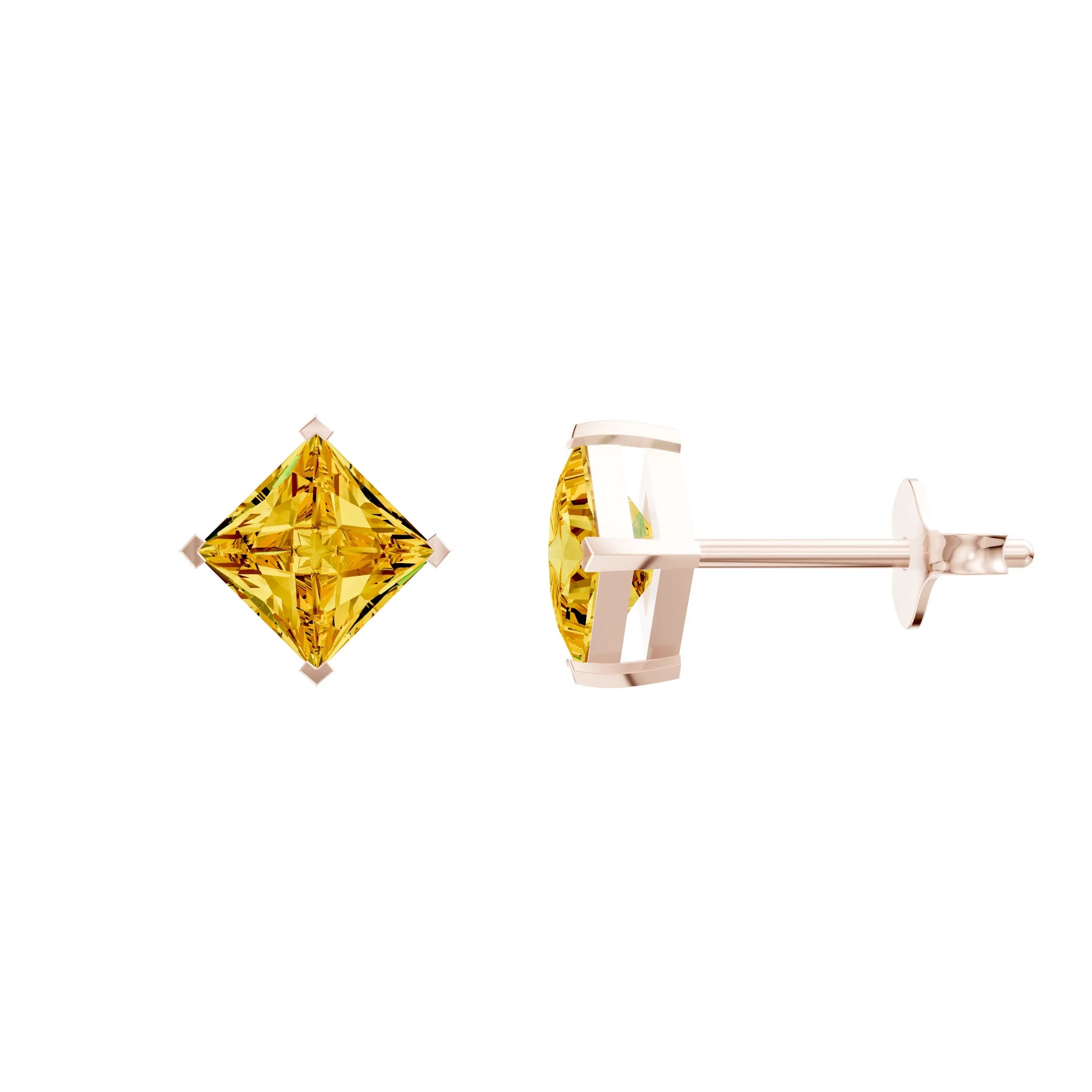 Citrine Princess Studs - NSEW Prongs Earrings - 5mm