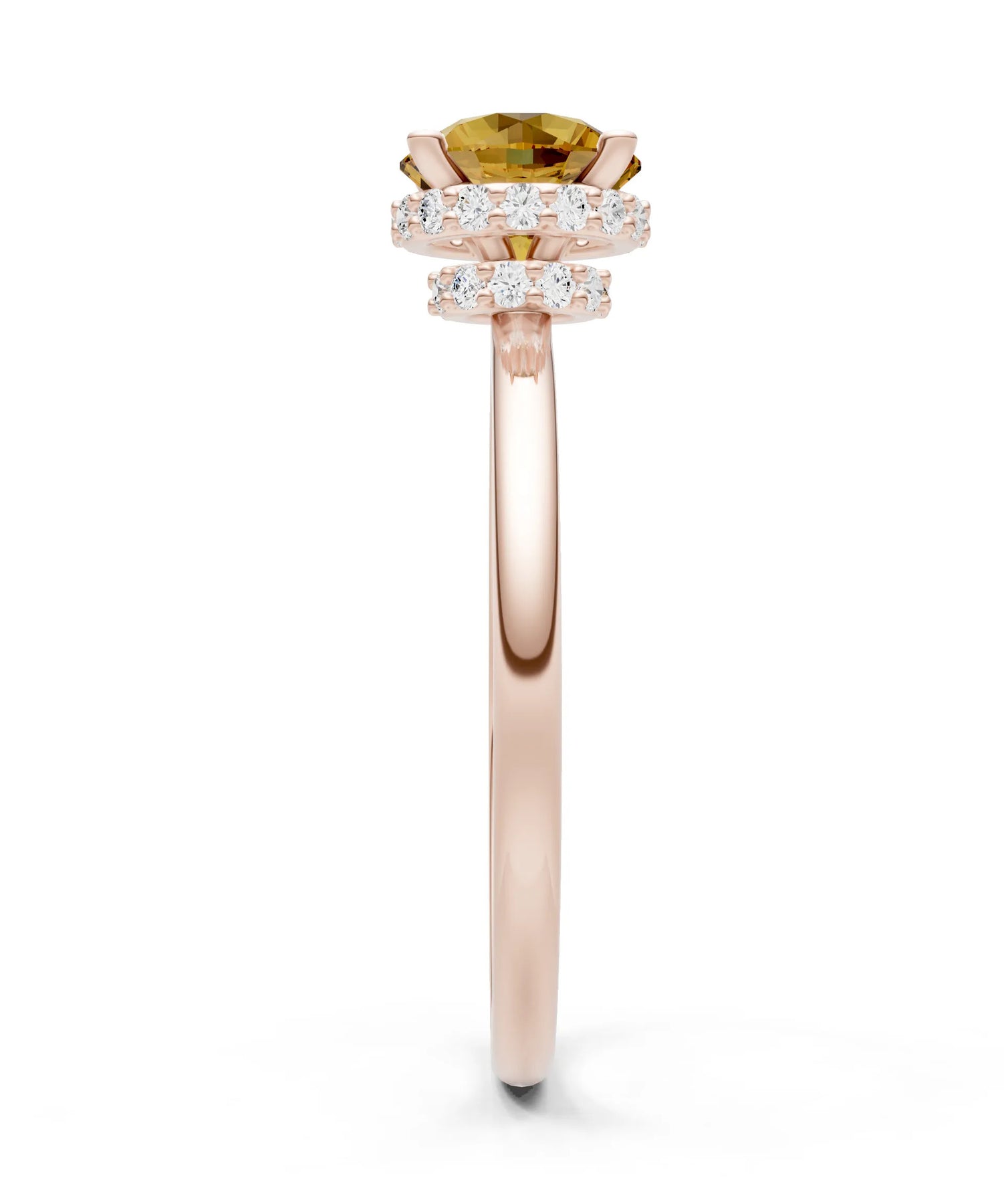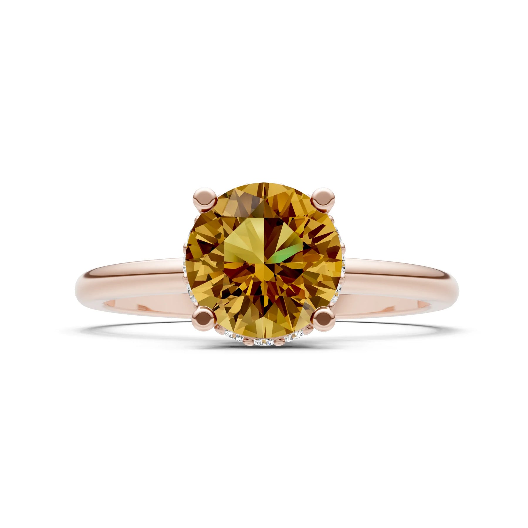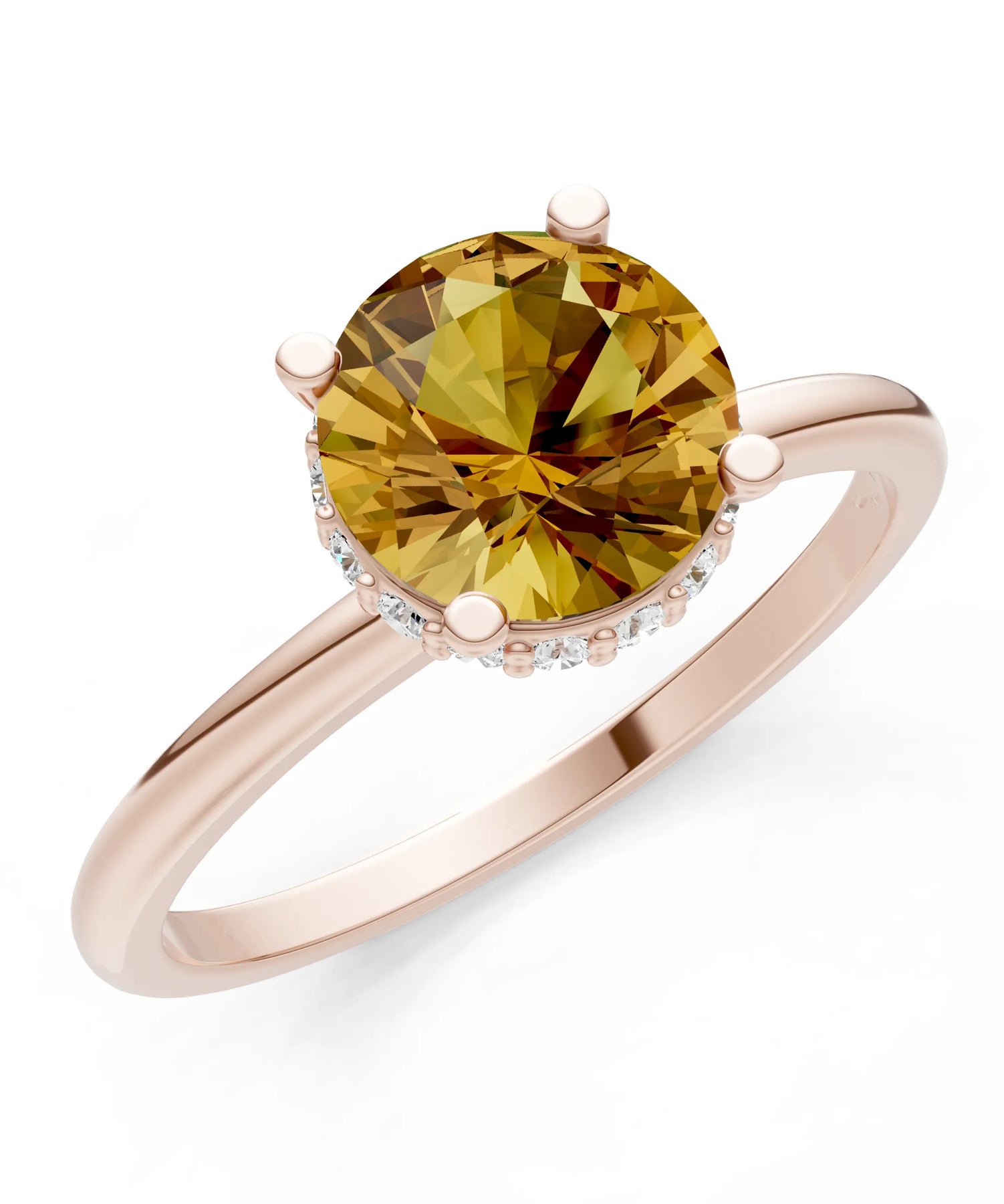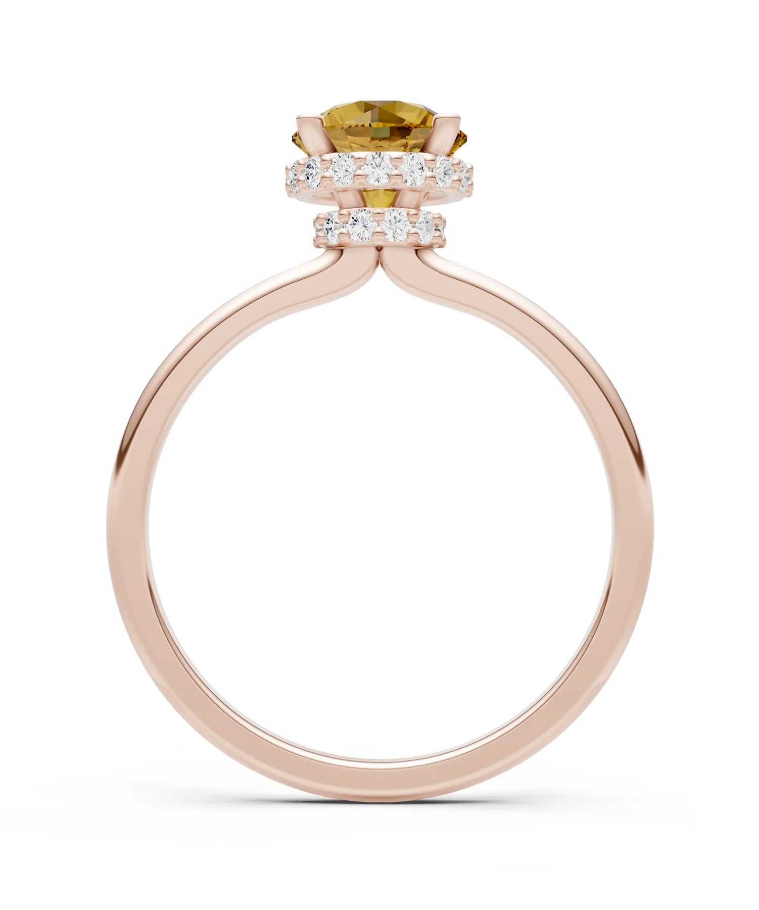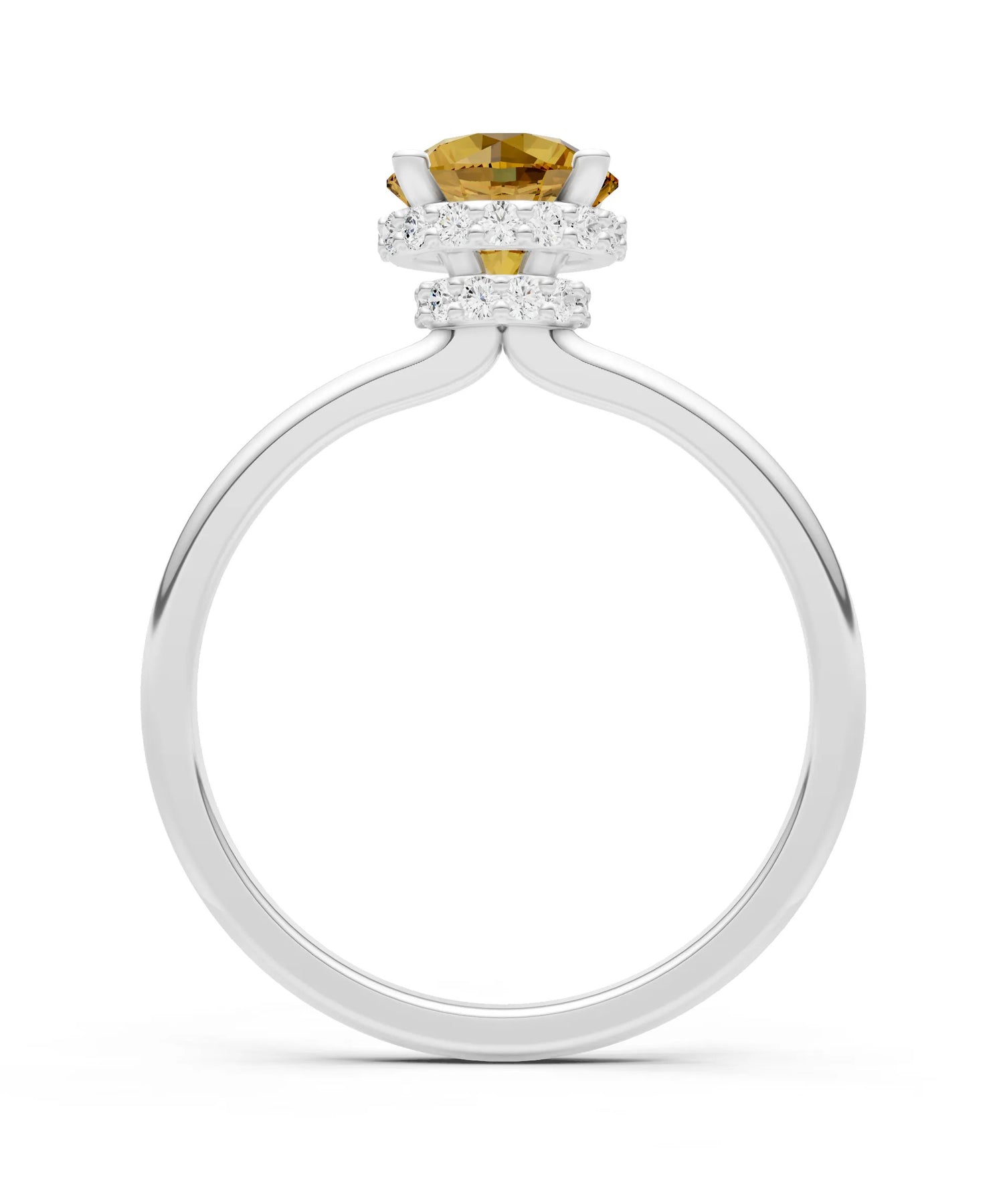 Citrine Round Shape Hidden Double Halo Engagement Ring