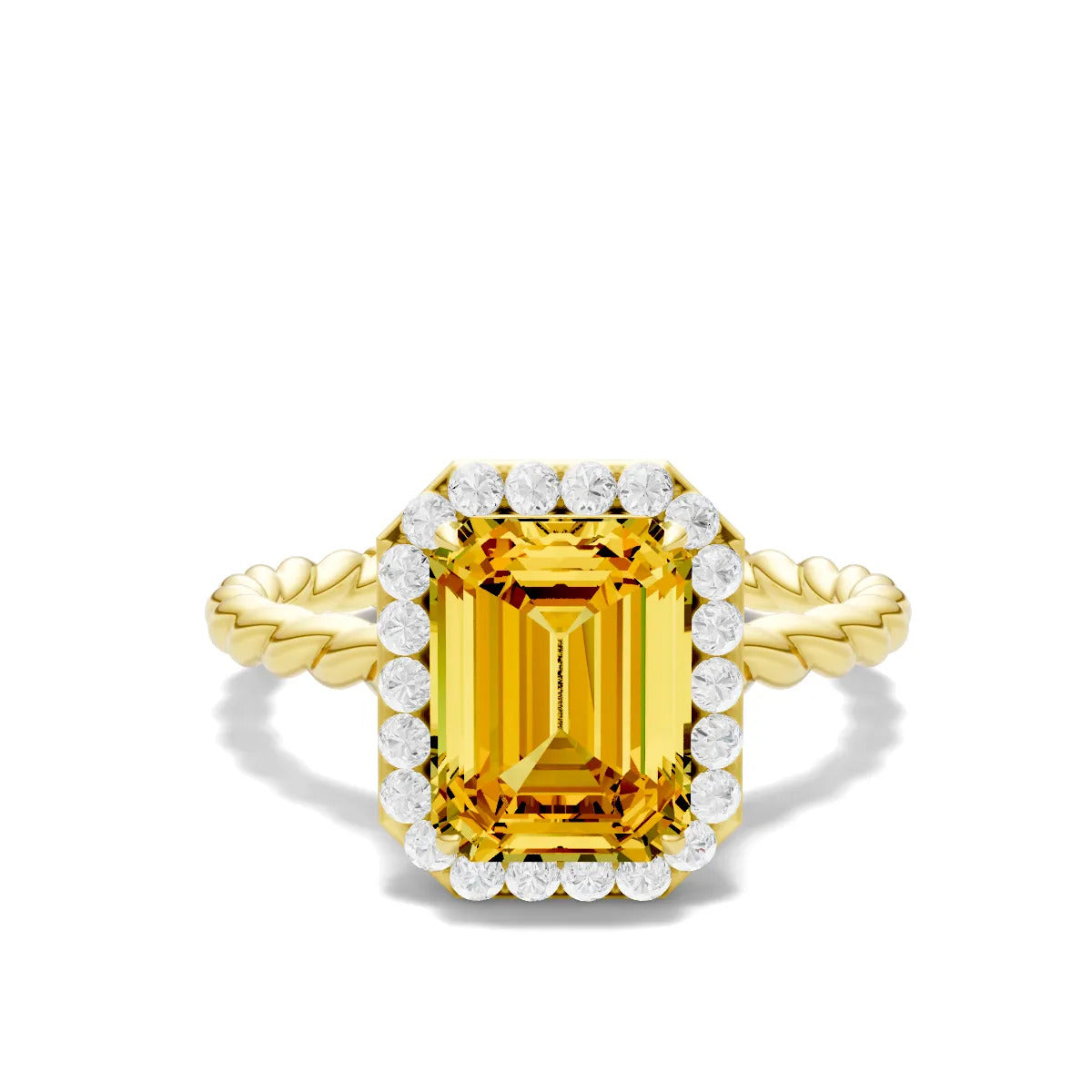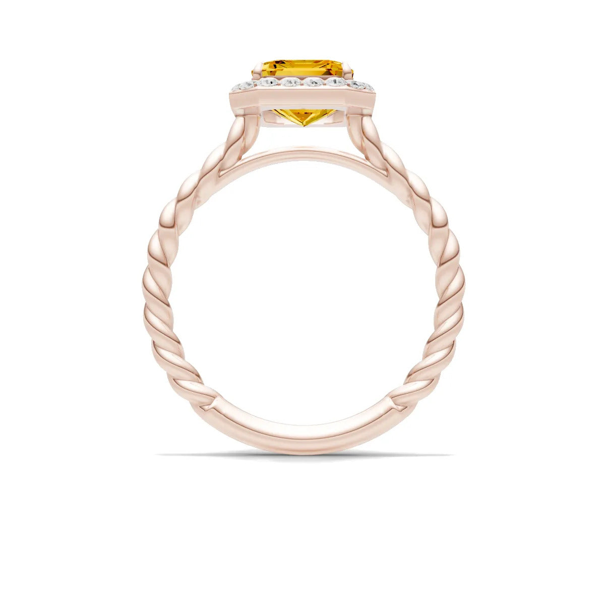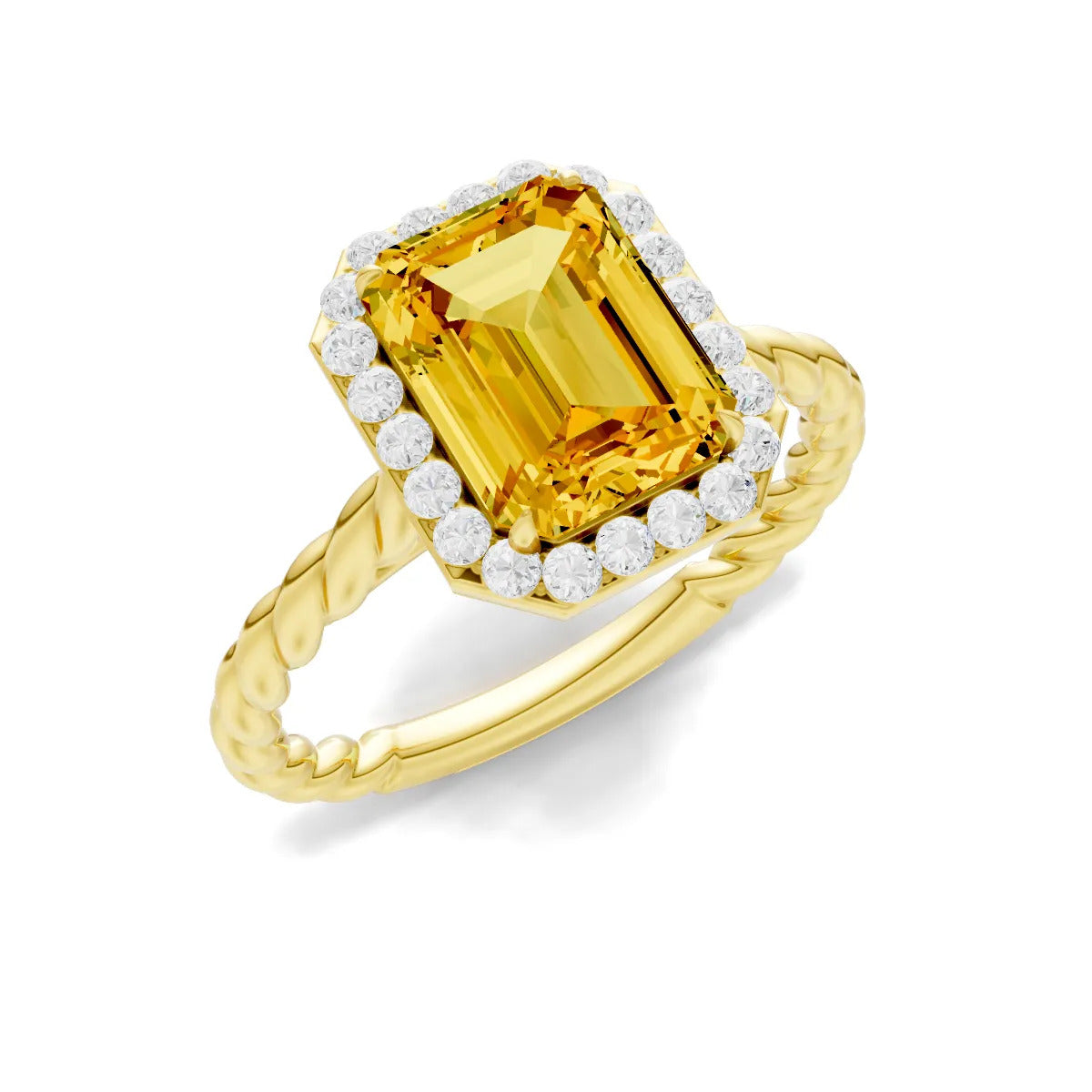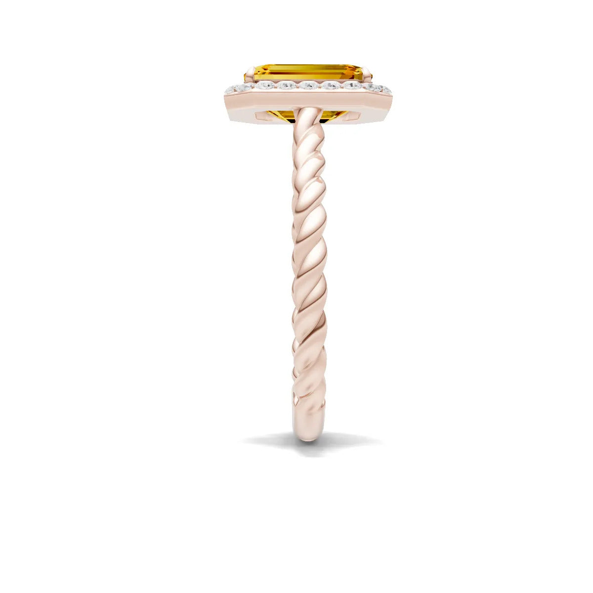 Citrine Twisted Vine Emerald Cut Solitaire Halo Ring