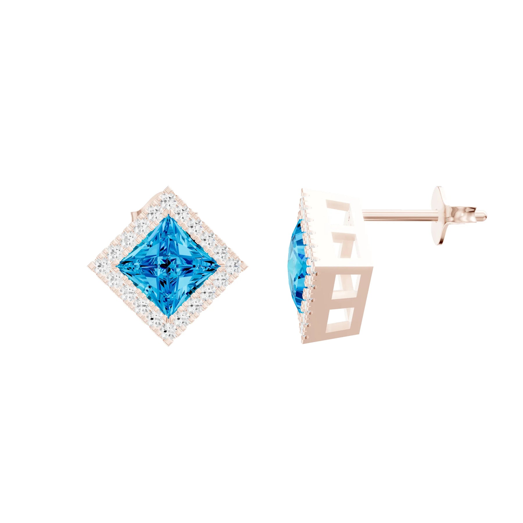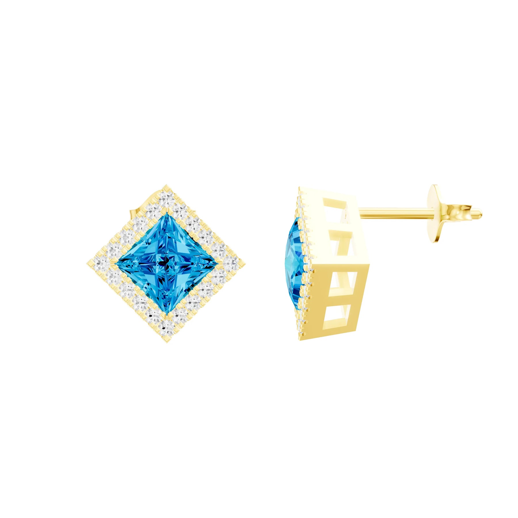 Swiss Blue Topaz Princess Earrings - 4mm