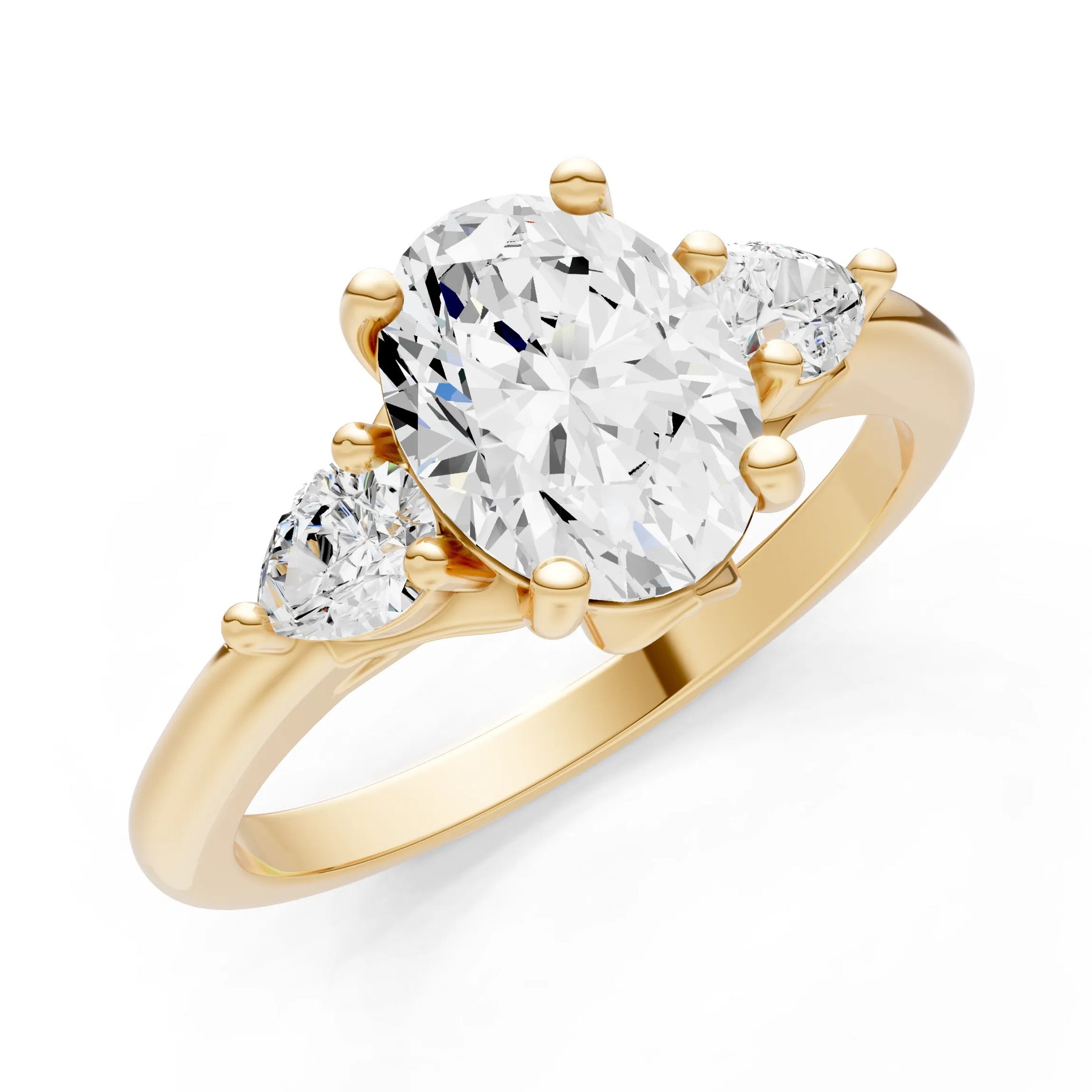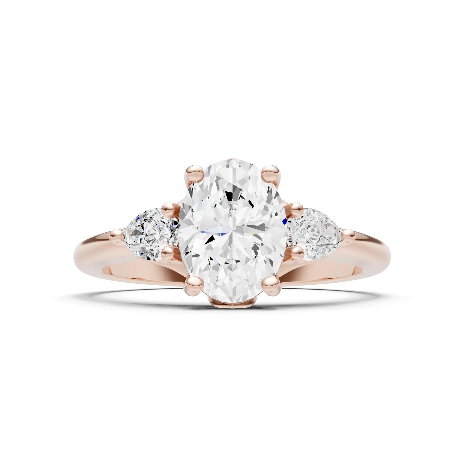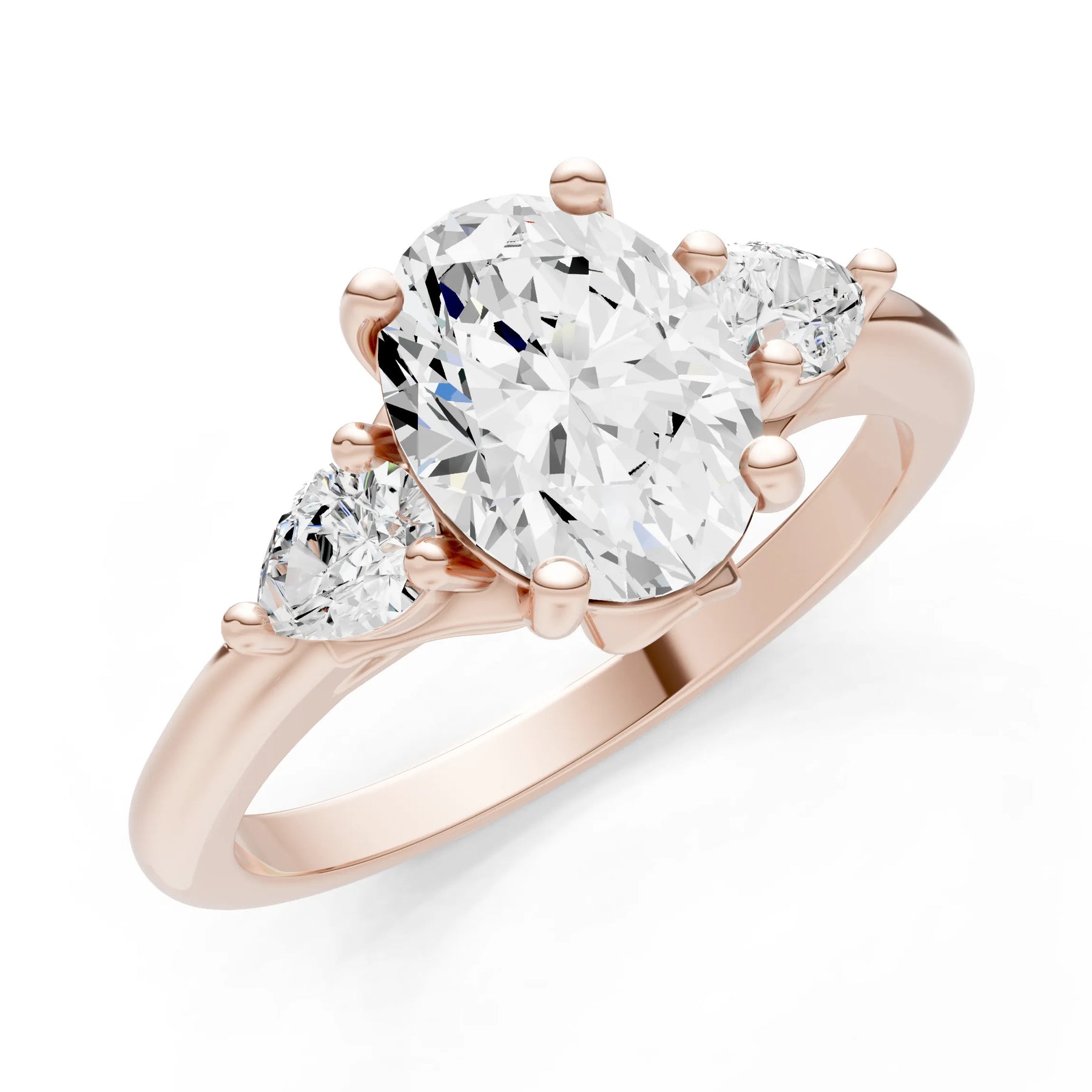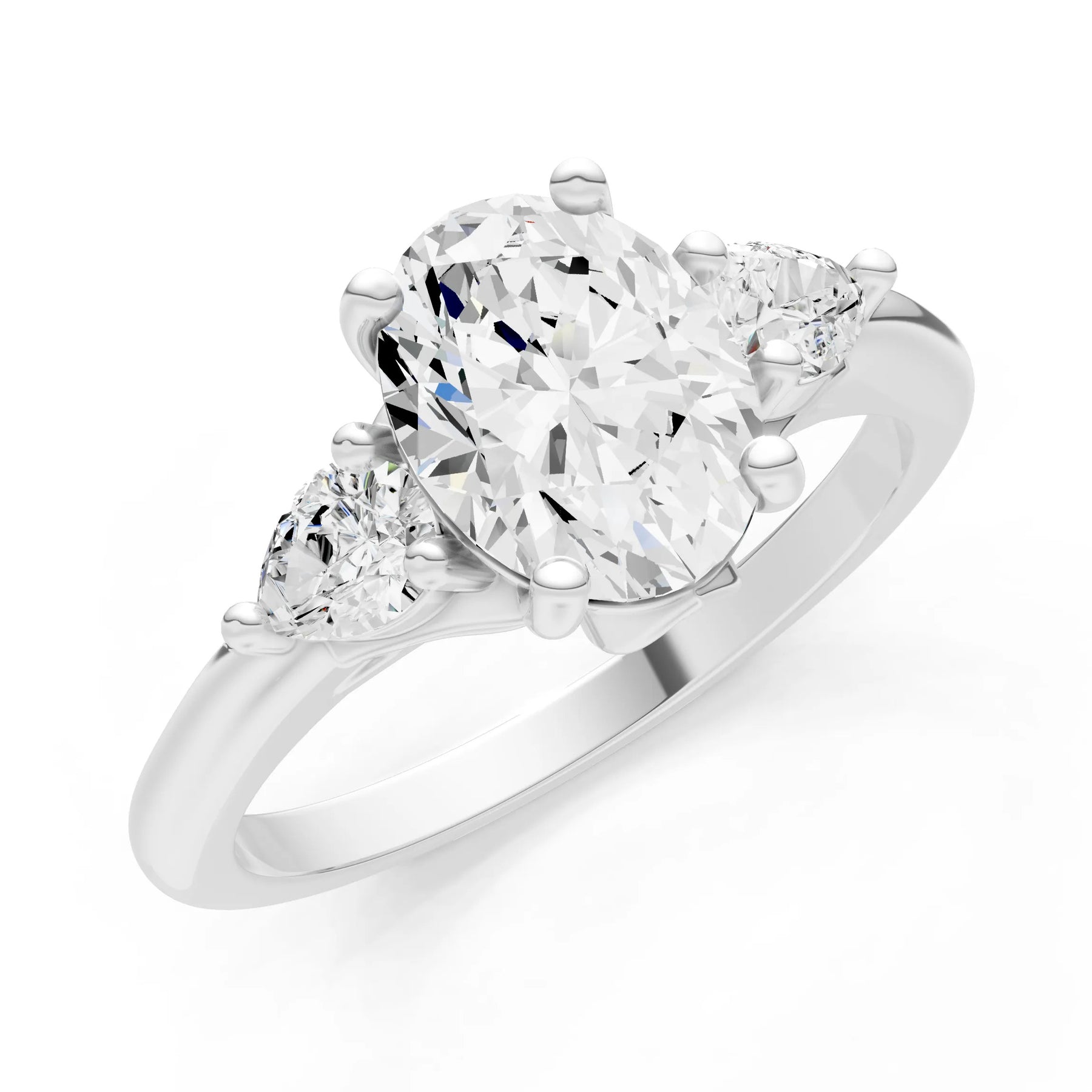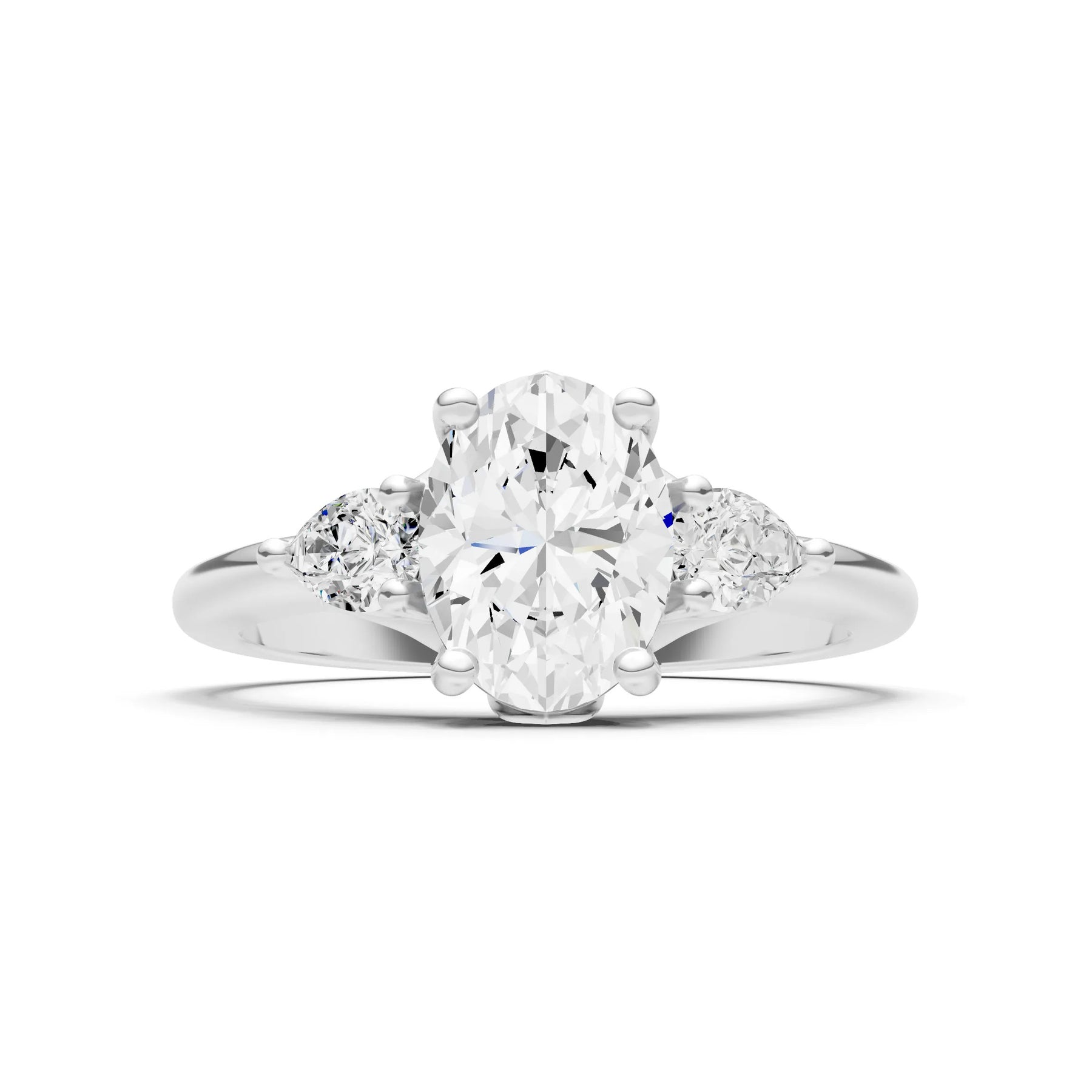 CVD Oval 8x6mm Trellis Three Stone Oval and Pear Lab Diamond Engagement Ring