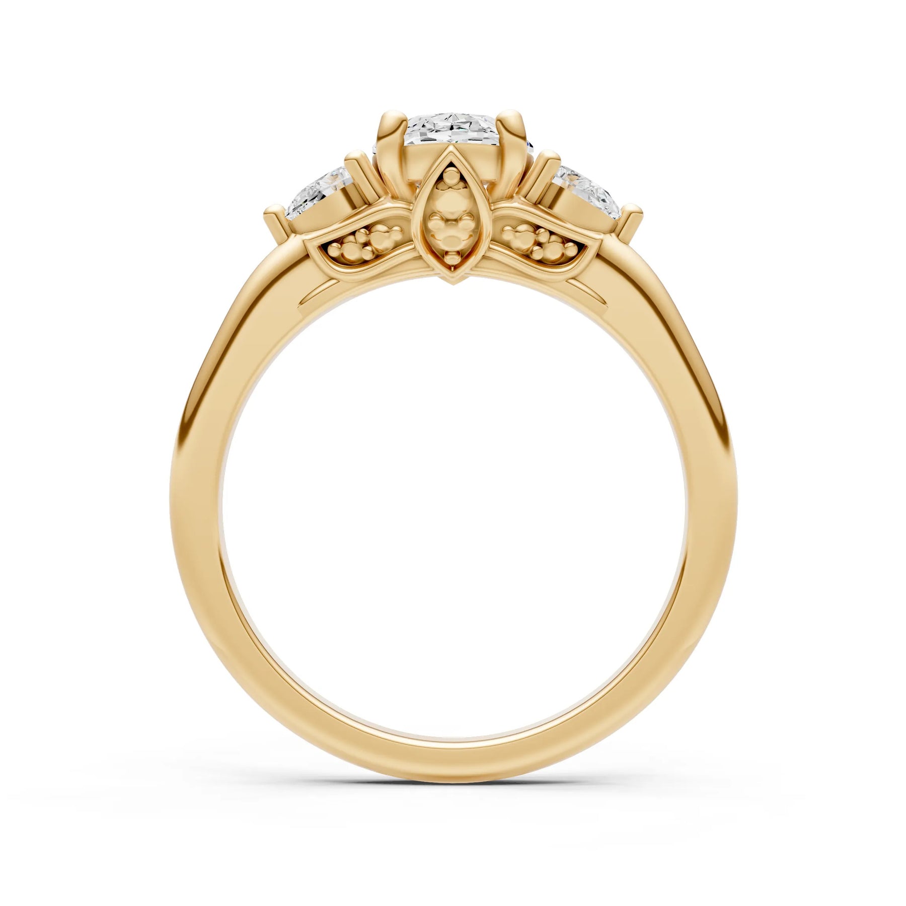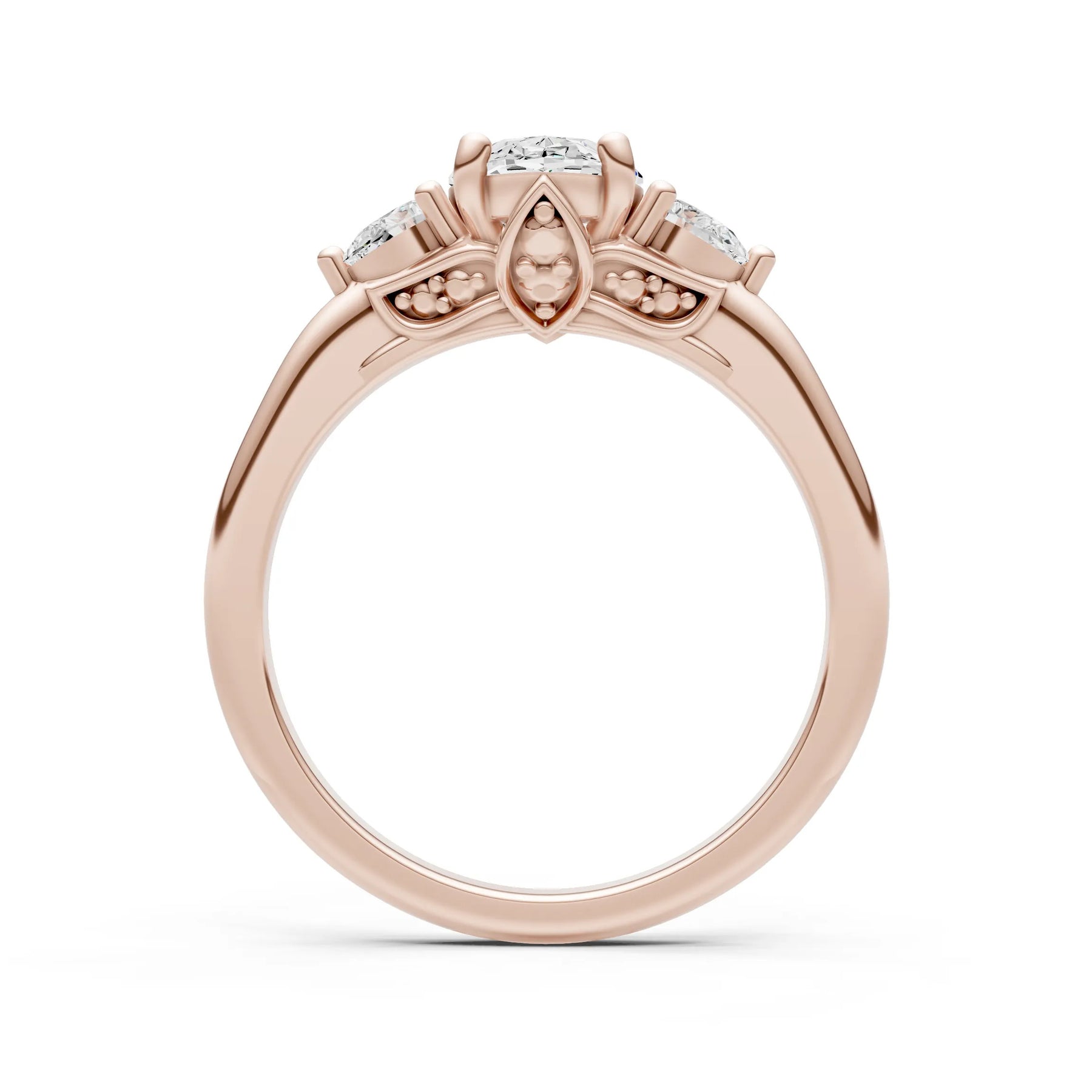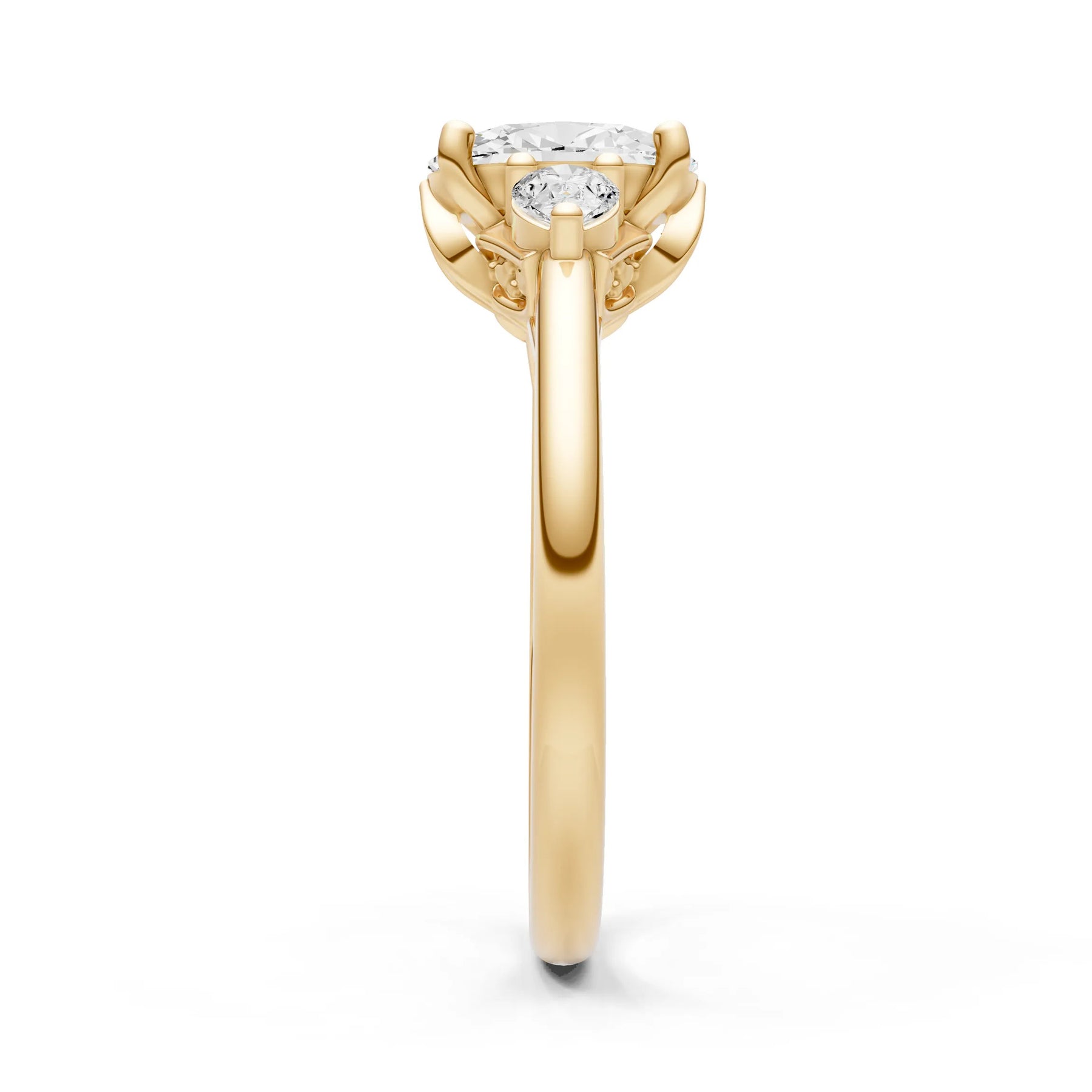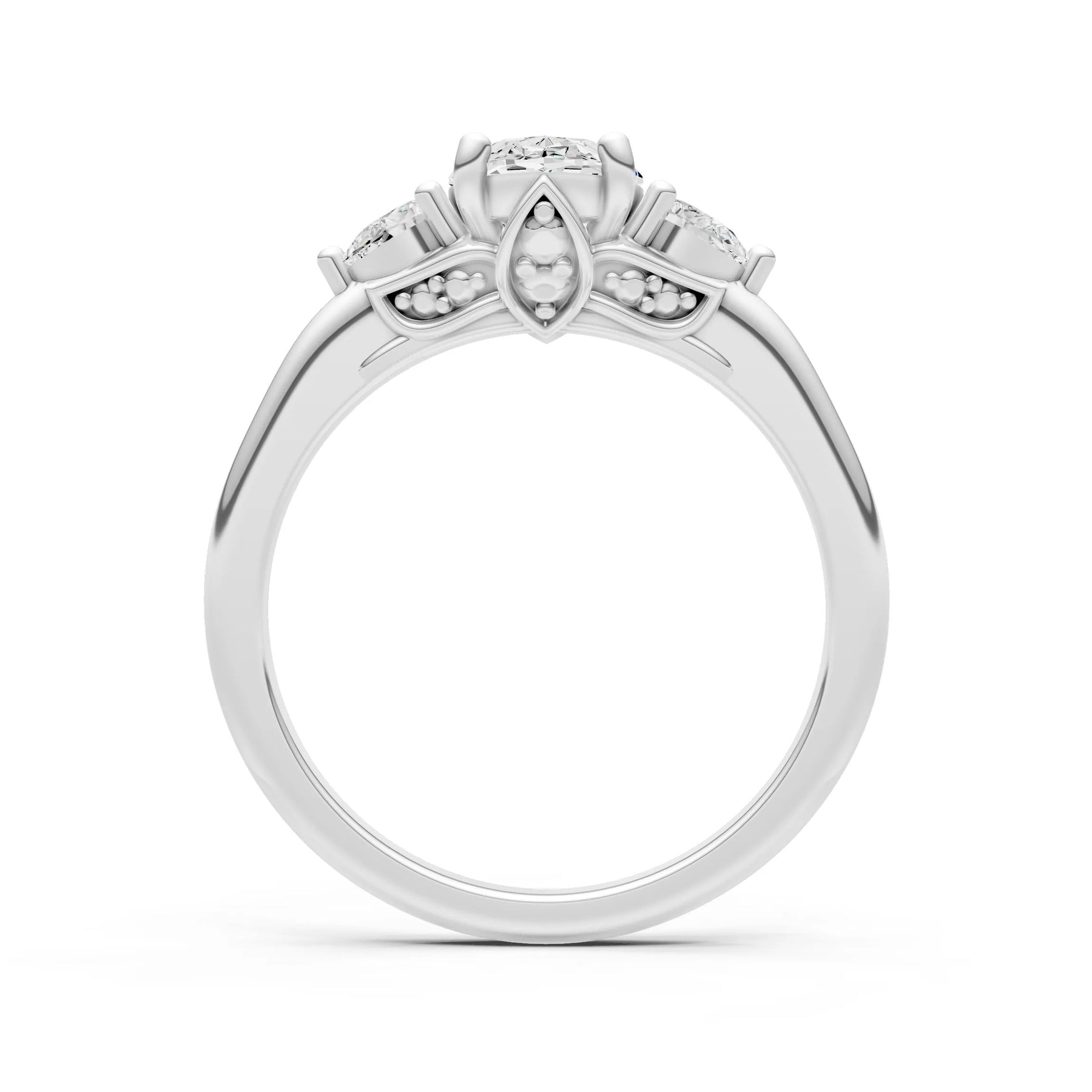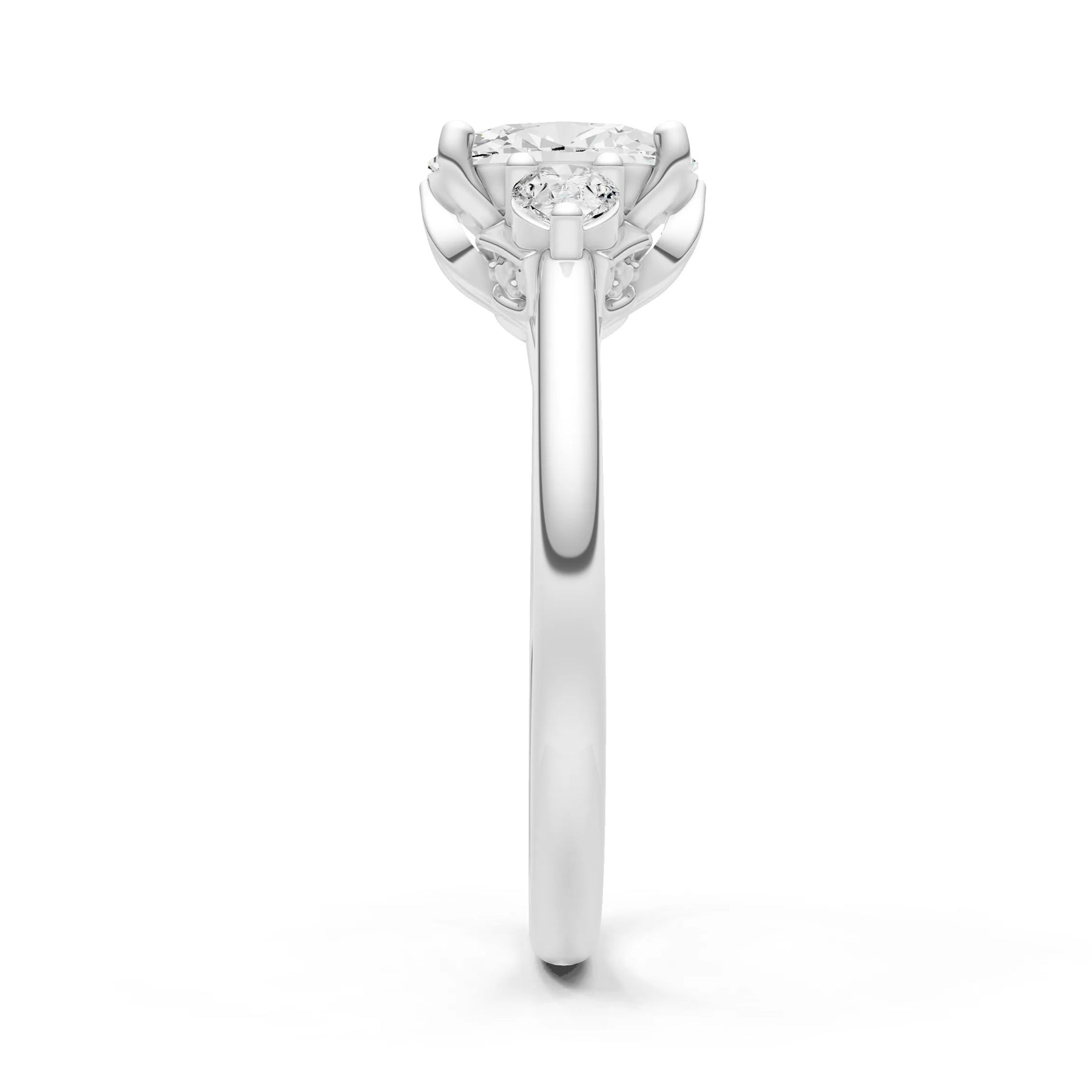 CVD Oval 8x6mm Trellis Three Stone Oval and Pear Lab Diamond Engagement Ring