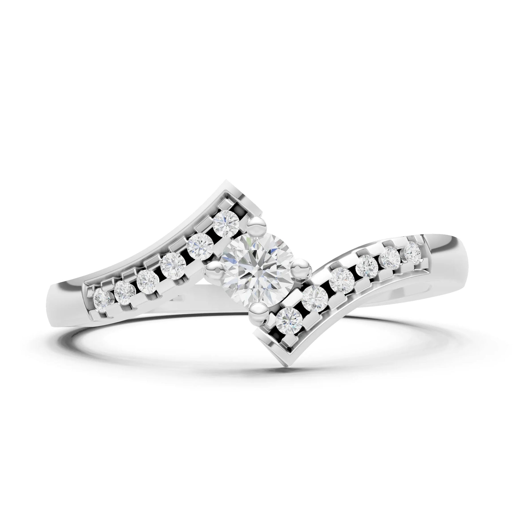 Diamond Bypass Accent Tiny Solitaire Ring
