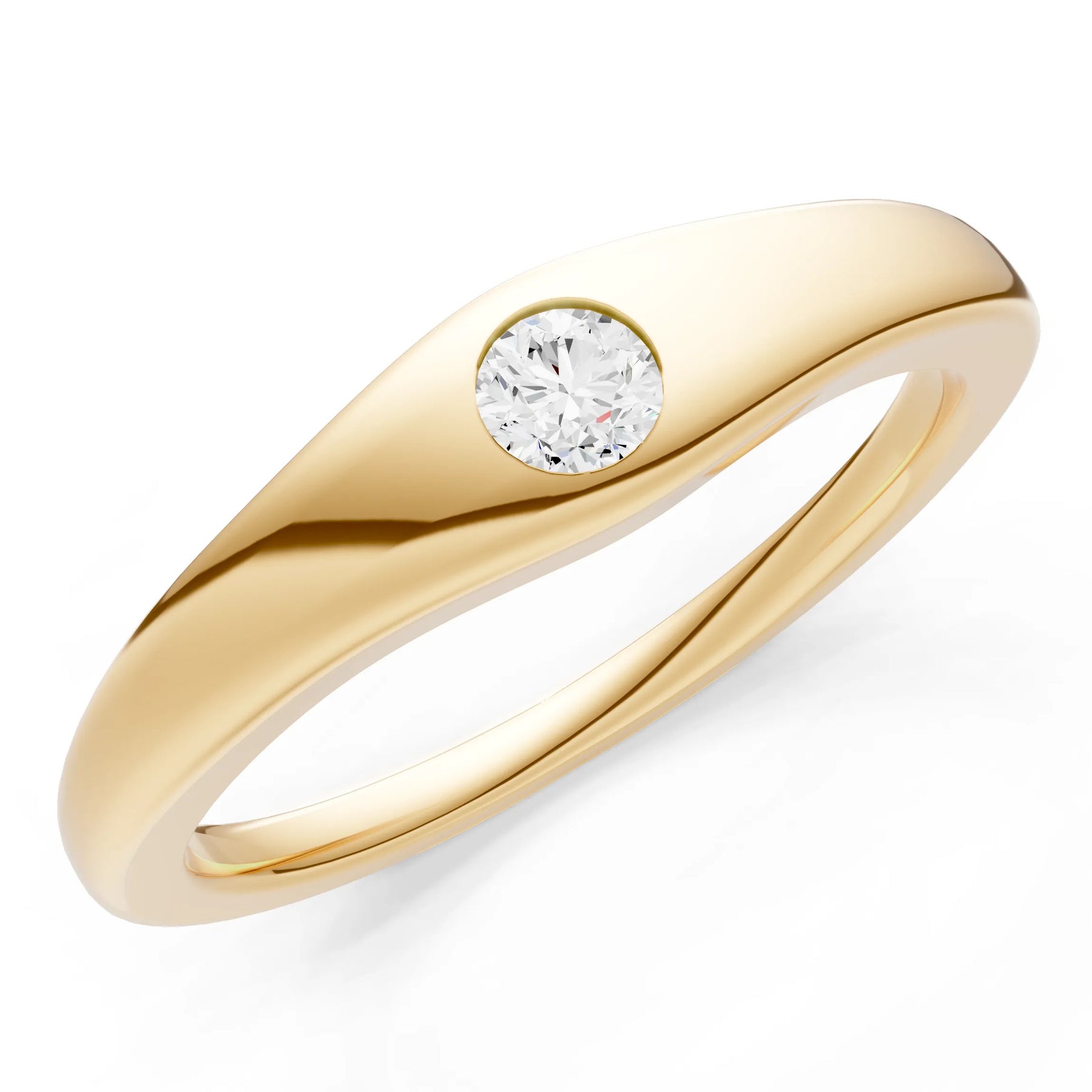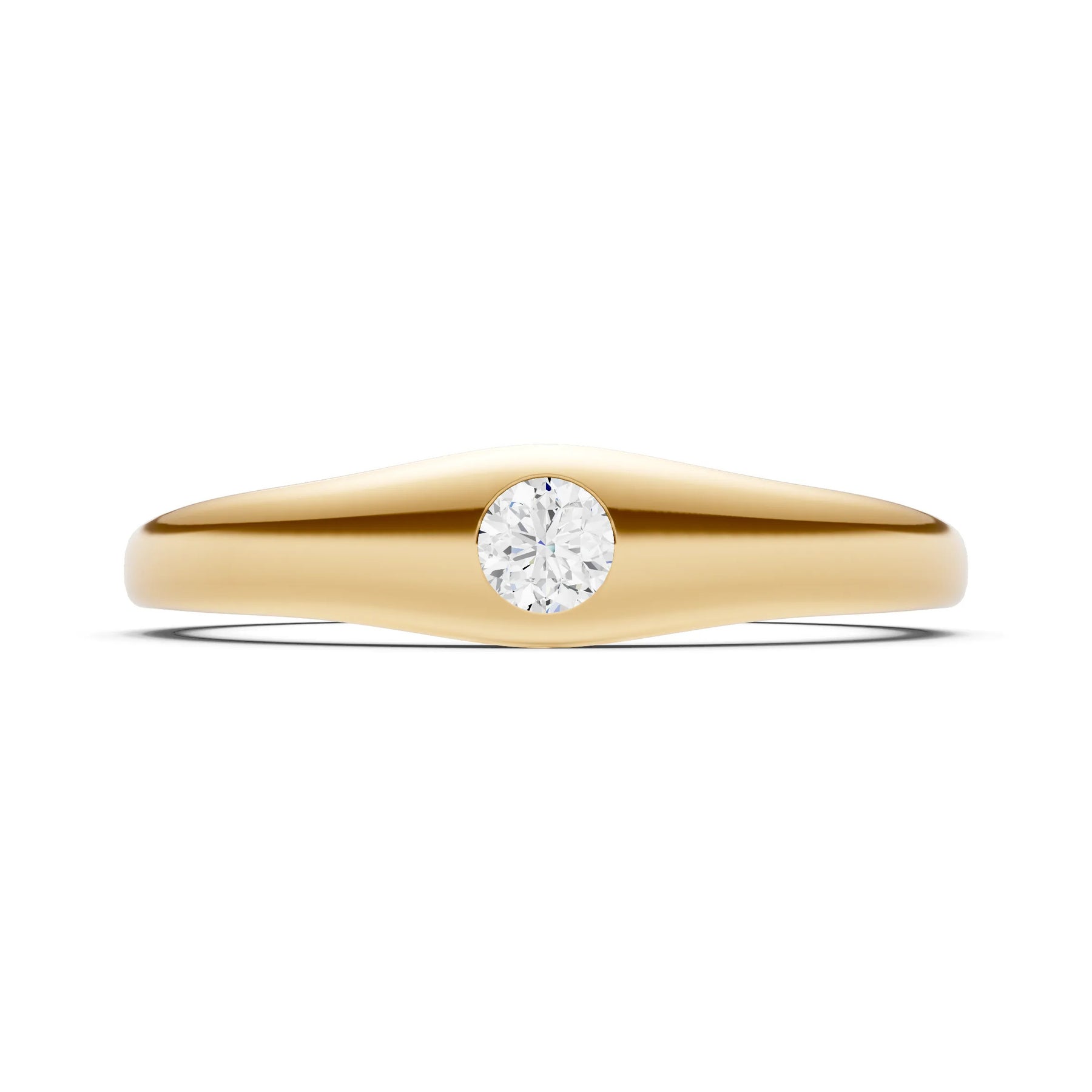 Diamond Flush-Set Round Gemstone Mini Signet Ring