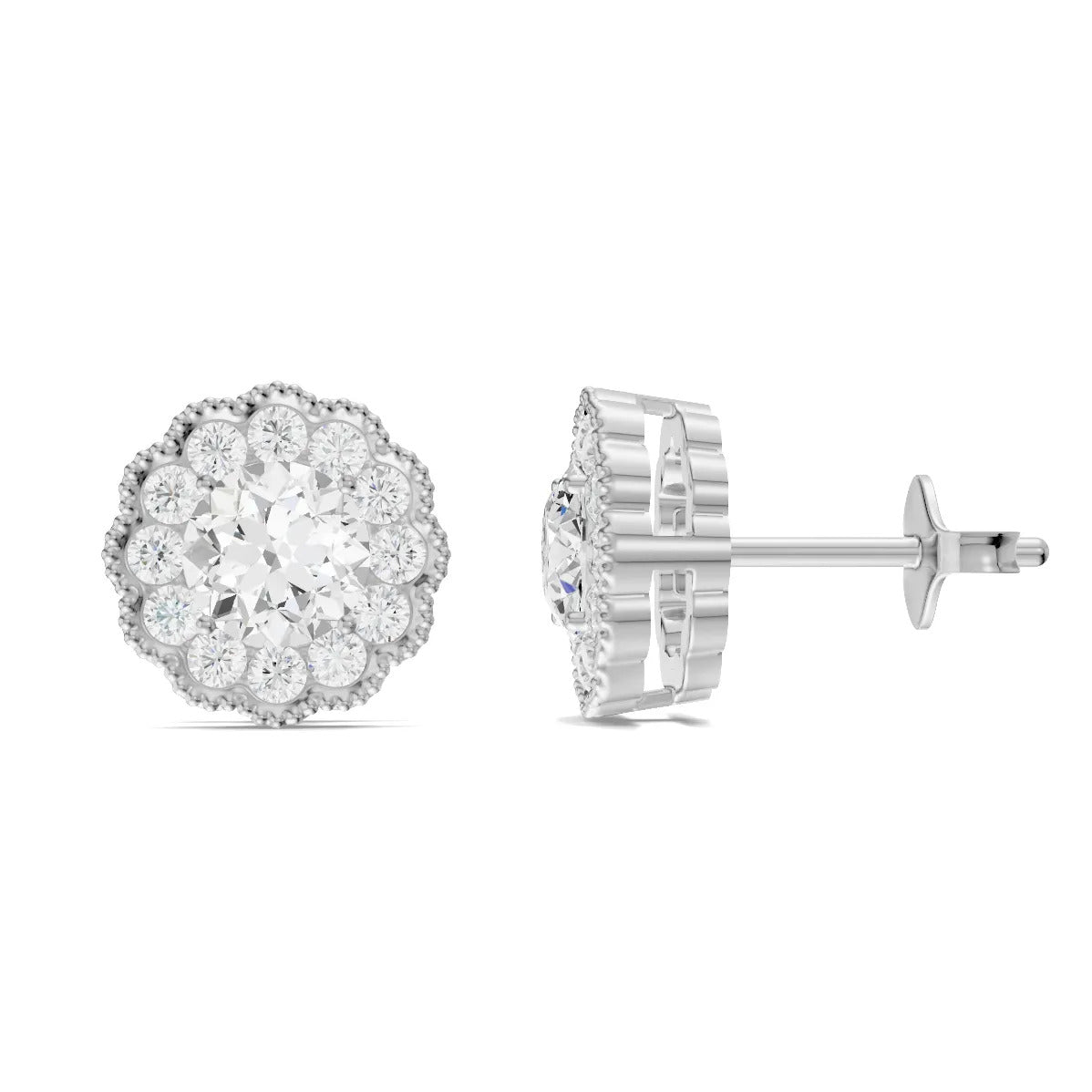 Diamond Round Floral Halo Earrings - 4mm