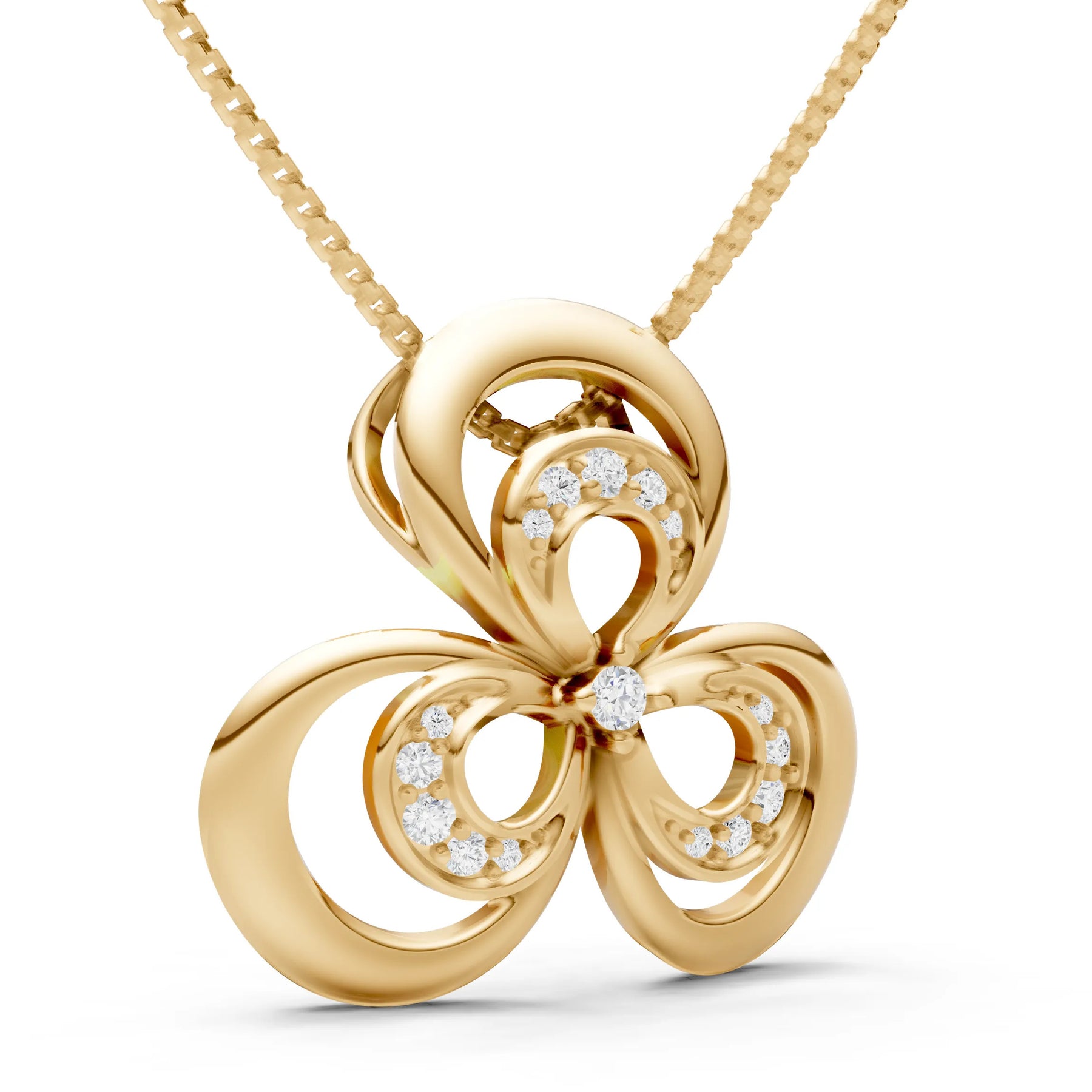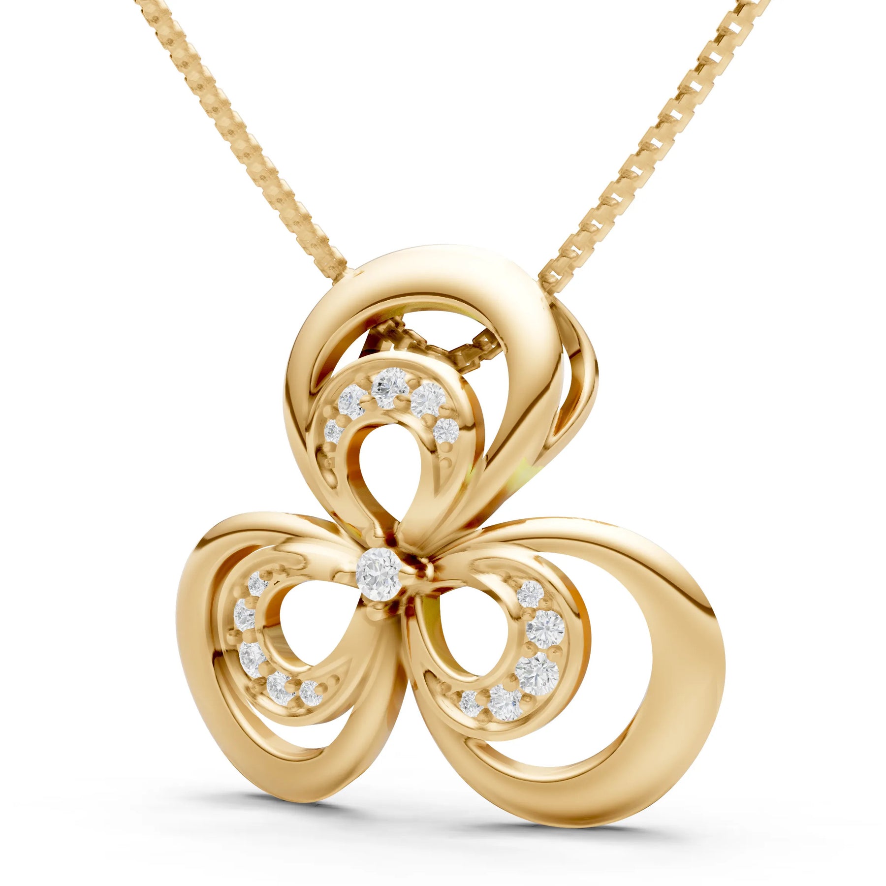 Discover the Trilobe Swirl Polish Glint Pendant, expertly crafted in your choice of 10k, 14k, or 18k gold, available in White, Yellow, or Rose Gold, featuring a captivating array of beautiful gemstones, each showcasing unique cut and clarity. Peora's commitment to quality craftsmanship and responsible sourcing shines through in this thoughtfully designed piece, making it a true expression of artistry and beauty that resonates with meaning. Each pendant arrives in a luxurious gift box, making it a perfect gift or a treasured keepsake.