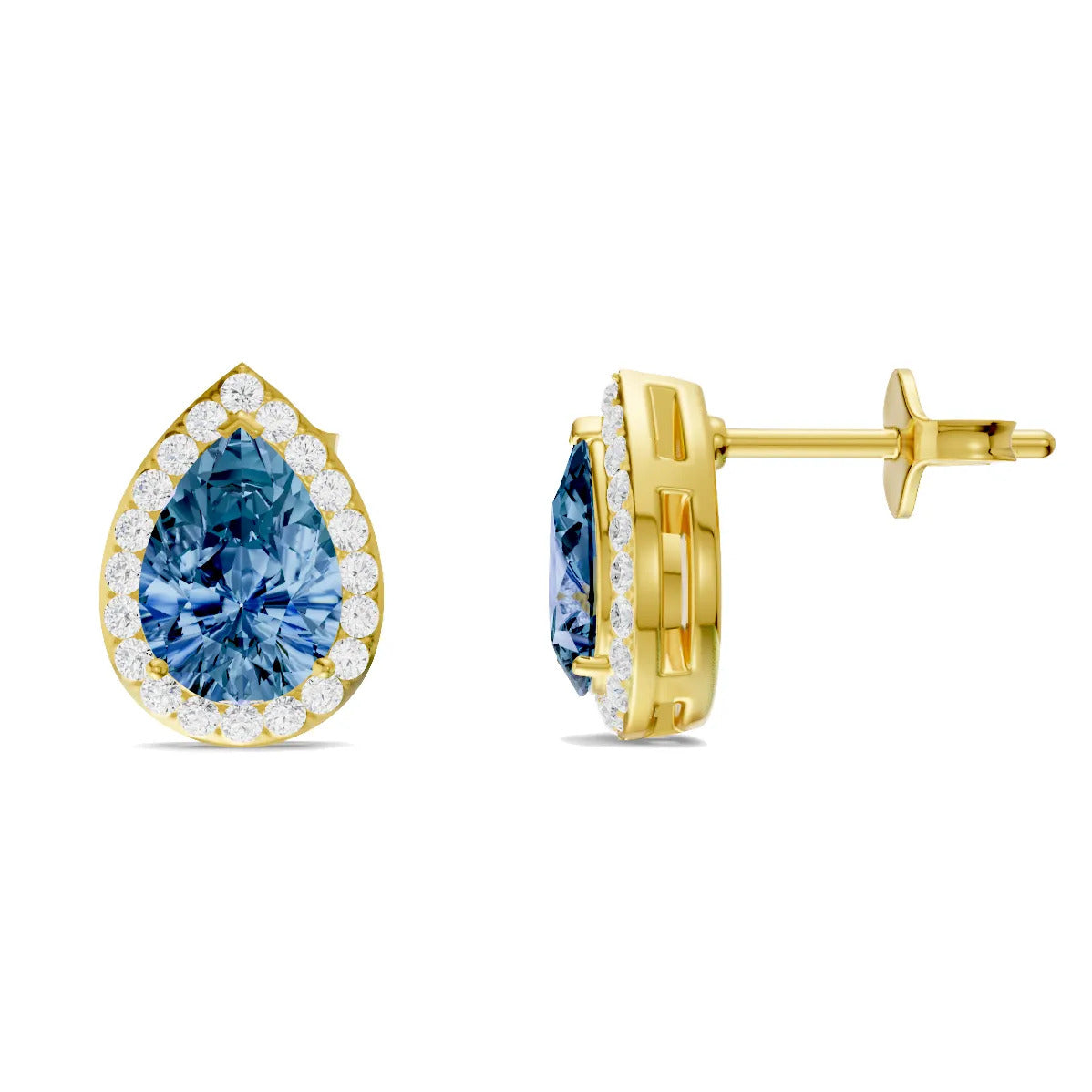 Alexandrite Pear Halo Studs Earrings  - 7x5mm