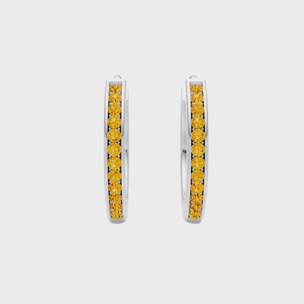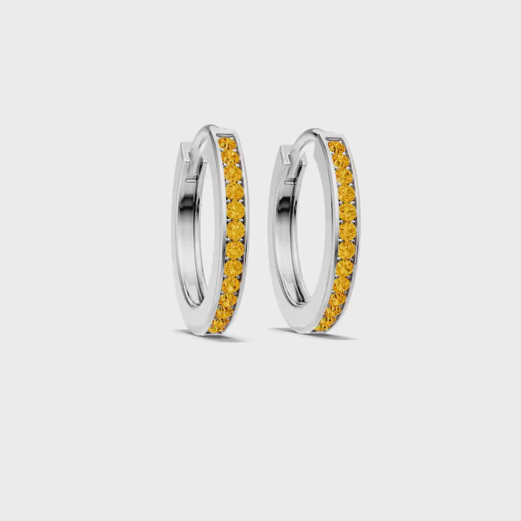 Citrine Pave Hinged Huggie Hoop Earrings - Mini
