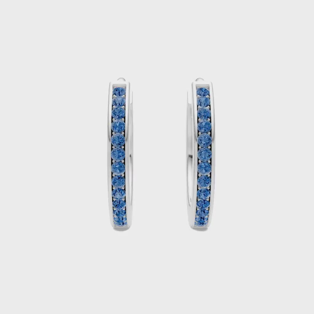 London Blue Topaz Pave Hinged Huggie Hoop Earrings - Mini