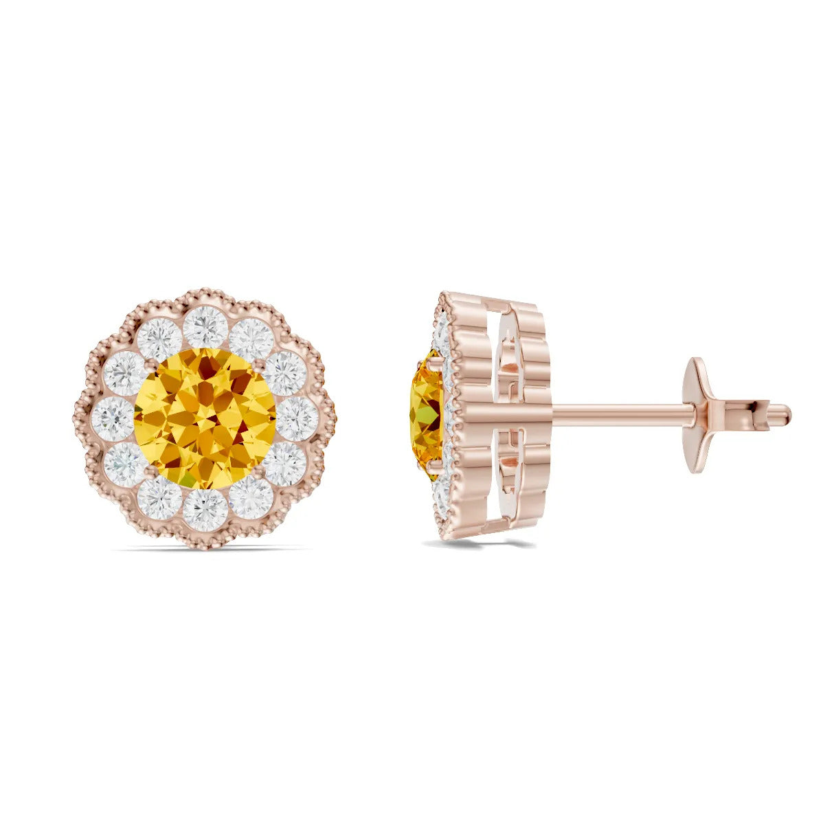 Discover the enchanting Round Floral Halo Earrings, featuring a stunning 5mm gemstone of your choice, set in your preference of 10k, 14k, or 18k gold, and beautifully crafted in White, Yellow, or Rose Gold. Peora's dedication to quality craftsmanship shines through in this meticulously designed piece. Crafted to perfection, these earrings showcase exceptional clarity and exquisite cut, ensuring each stone captures and reflects light brilliantly. Peora's commitment to responsibility in sourcing materials ensures that your jewelry not only dazzles but also honors a meaningful approach to beauty. Each pair arrives in a luxurious gift box, making it a perfect treasure for yourself or a loved one.