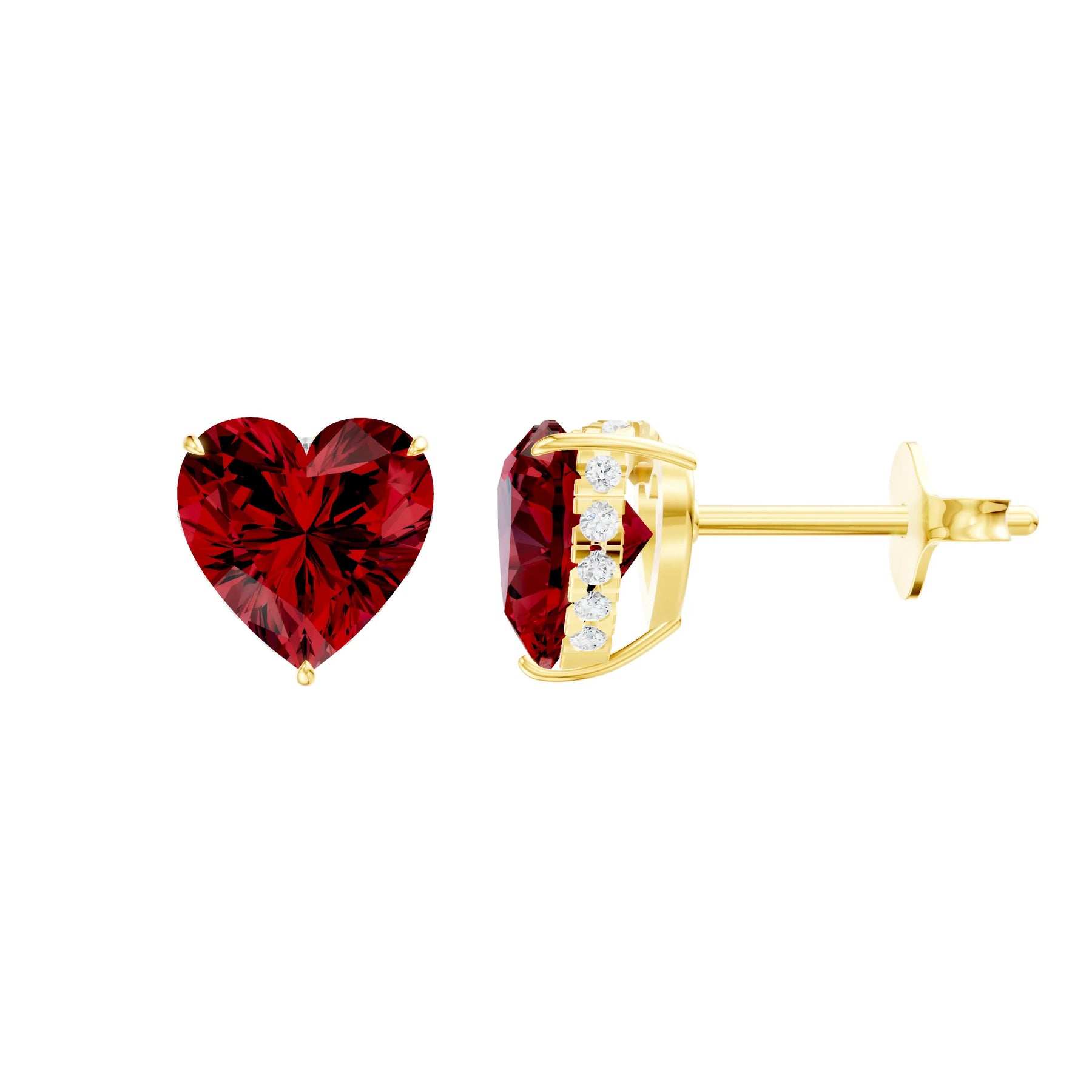 Ruby Hidden Halo Earrings - Heart - 7mm