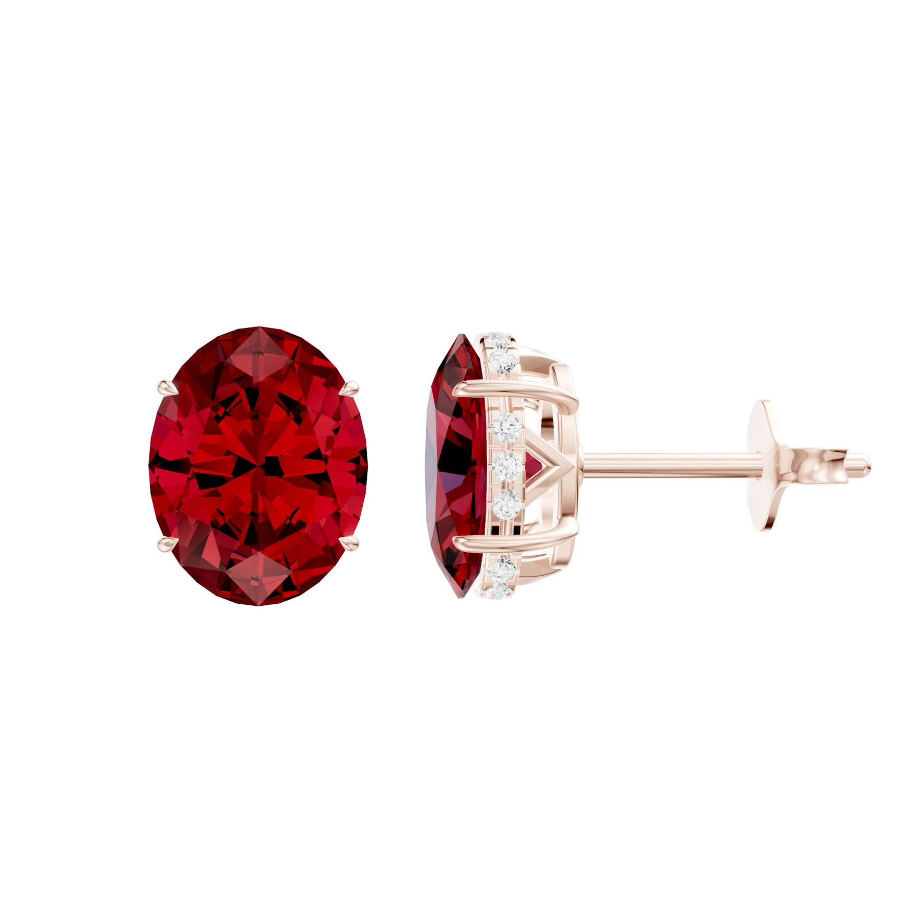 Ruby Hidden Halo Earrings - Oval - 9x7mm