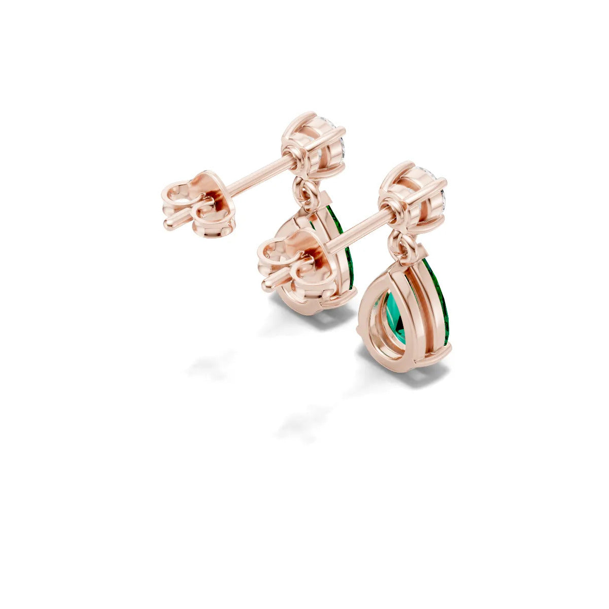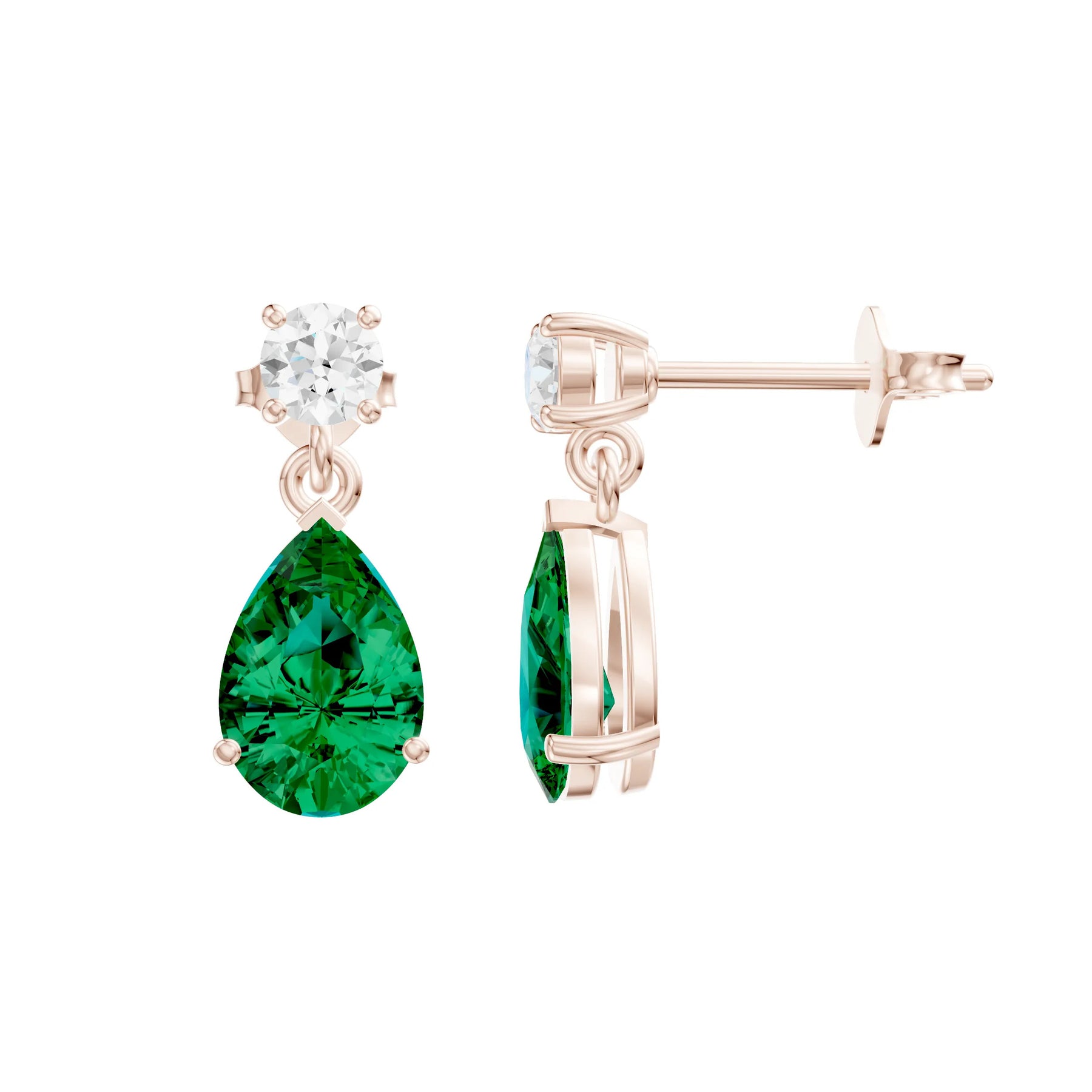 Emerald Pear with Round Accent Earrings - 7x5mm